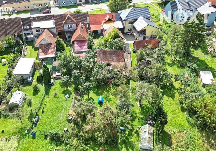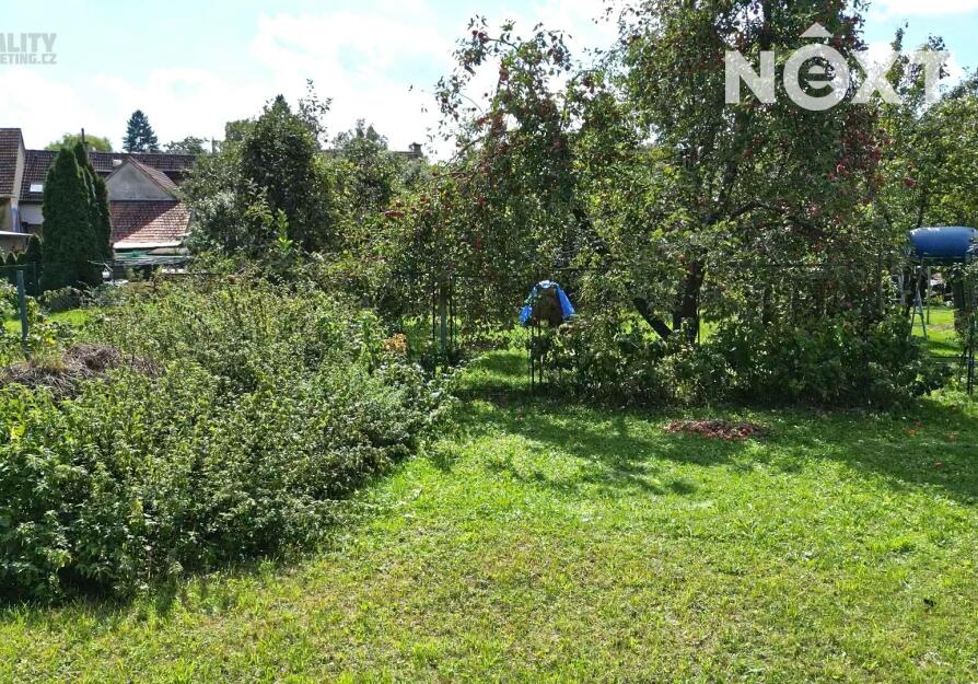 Krásná zahrada s ovocnými stromy. Pozemek zahrnuje malou okrasnou předzahrádku před domem a prostornou zahradu s ovocnými stromy a keři. Rovinatý terén usnadňuje údržbu a poskytuje neomezené možnosti pro zahradničení nebo relaxaci.