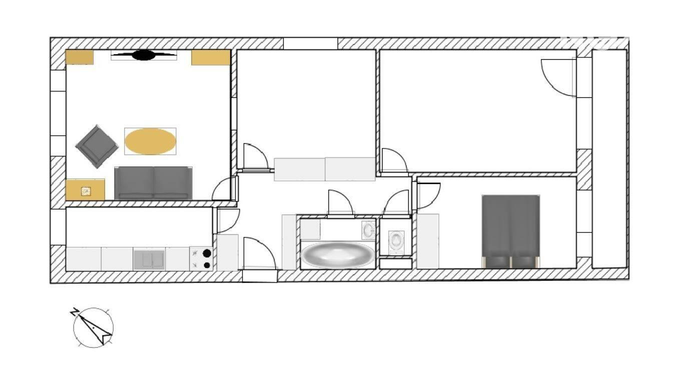 Byt nabízí praktické dispoziční uspořádání – čtyři světlé a prostorné pokoje, samostatnou kuchyň, koupelnu a WC, chodbu s vestavěnými skříněmi a zasklenou lodžii přístupnou z jednoho z pokojů. Součástí je i sklep v suterénu domu. Byt je v dobrém stavu a připraven k okamžitému nastěhování, případně nabízí možnost rekonstrukce a úprav podle vlastních představ.
