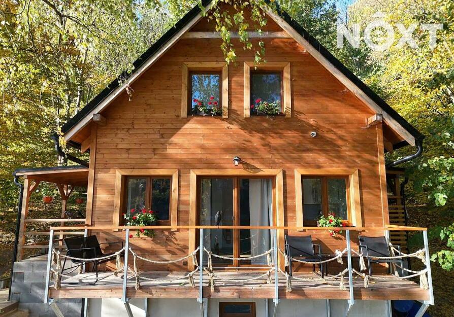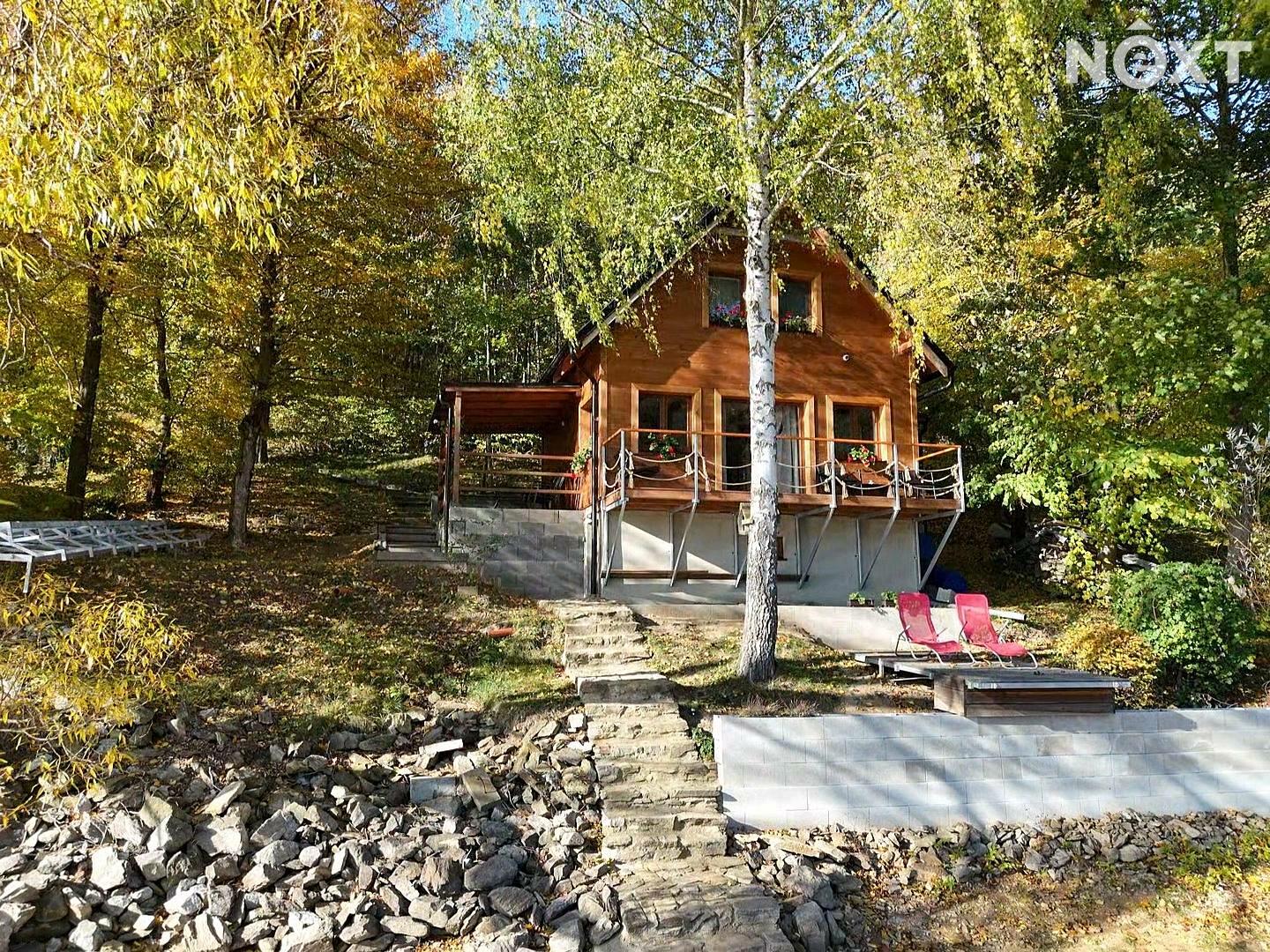 Chata má dvě patra a je navržena pro pohodlné celoroční užívání: