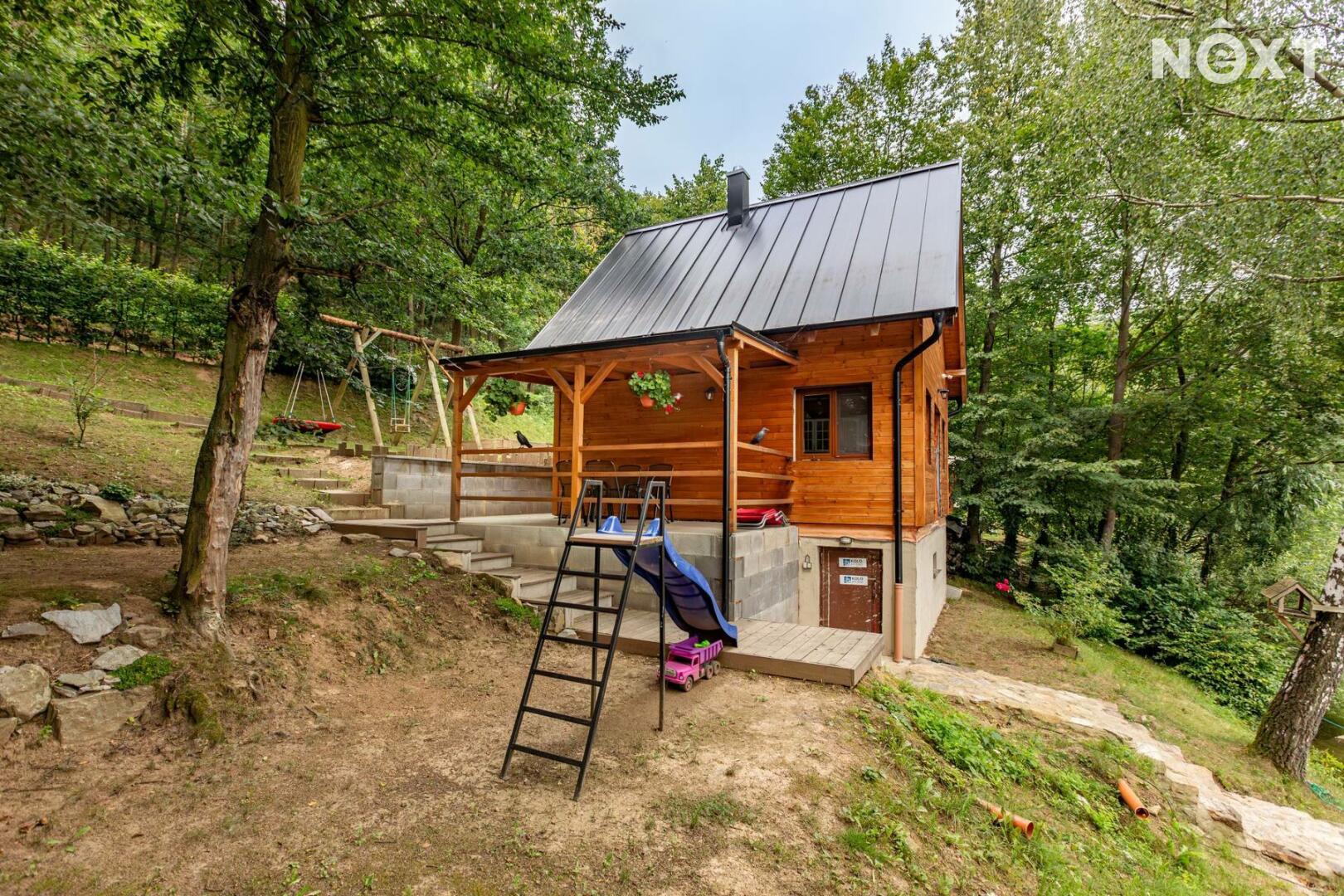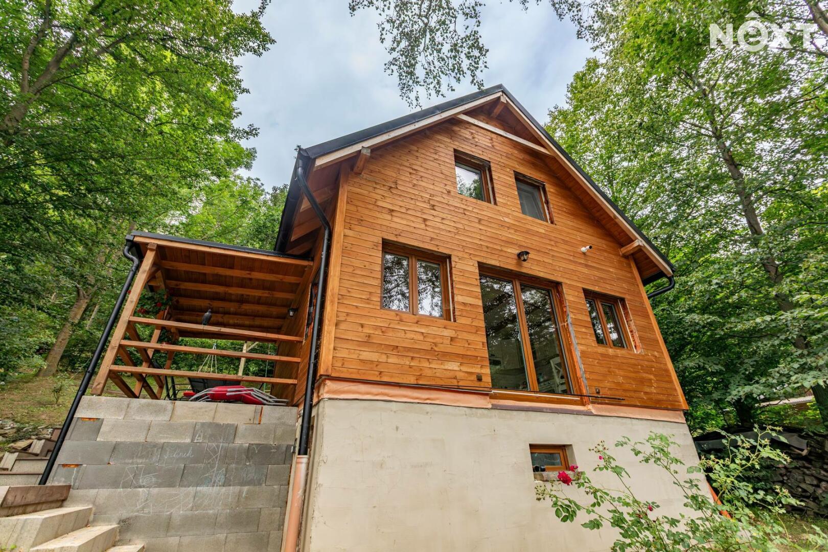 Chata má dvě patra a je navržena pro pohodlné celoroční užívání: