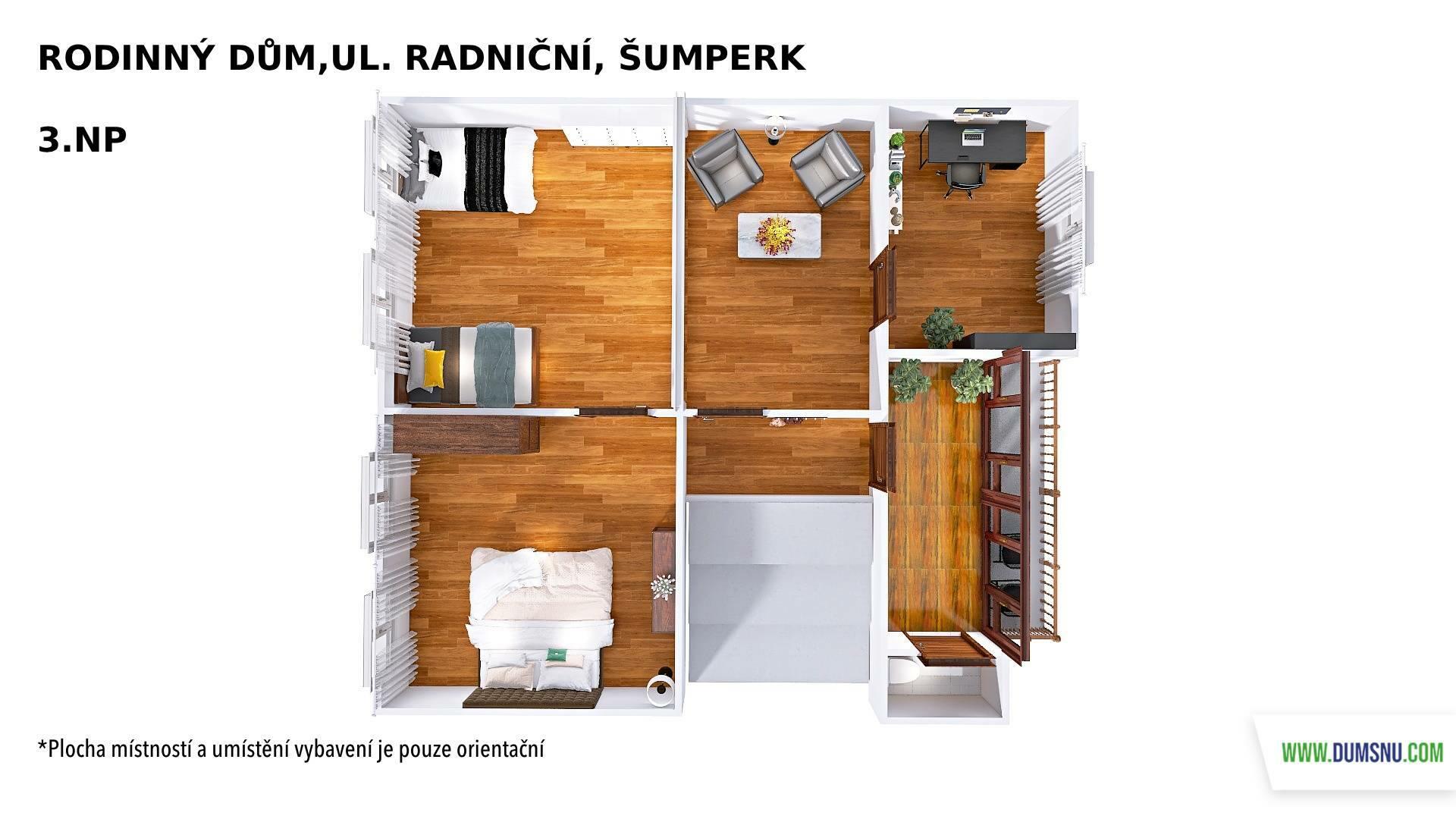 3. NP: 4 pokoje se vstupem na prostornou terasu