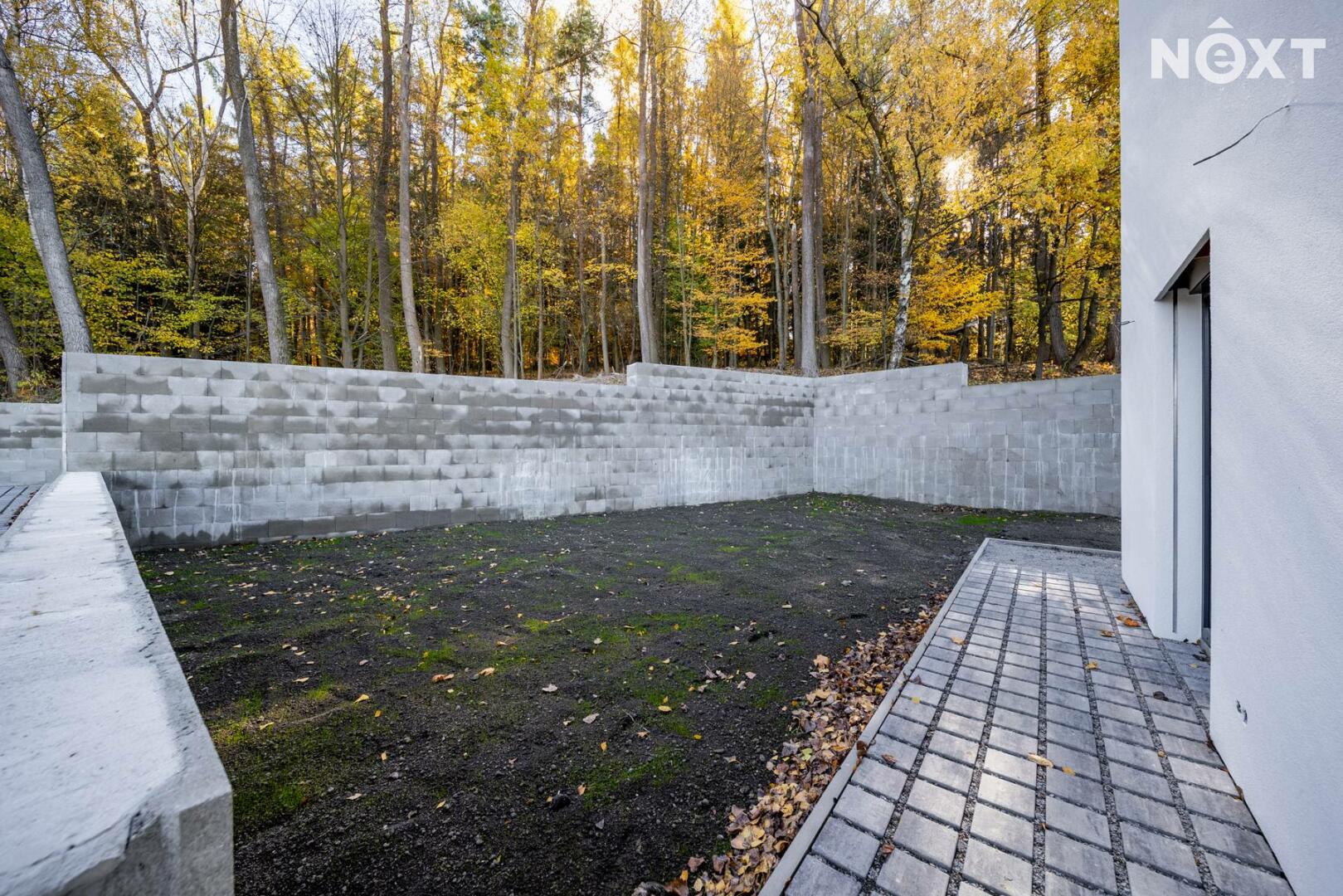 V patře se nachází chodba (6,23 m²), šatna (7,02 m²), koupelna (8,13 m²), ložnice (14,50 m²), pokoj (16,63 m²) a pokoj (14,85 m²). Všechny pokoje v horním patře mají francouzská okna se vstupem na terasu a krásným výhledem do lesa.