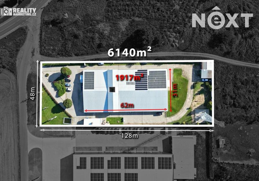 Celý pozemek je ohraničen zdí, před budovou je vlastní parkoviště s příjezdovou cestou. Stožár uvnitř slouží pro poskytování mobilních služeb (GSM) a je příjemným zdrojem příjmů, společnosti, stejně jako fotovoltaická elektrárna (FVE). Malá, nebo střední firma zde najde příjemné zázemí s flexibilním využitím a výbornou dostupností. PENB nebyl dodán, proto uvádíme třídu G. Pro komunikaci uvádějte evidenční číslo zakázky N114315.