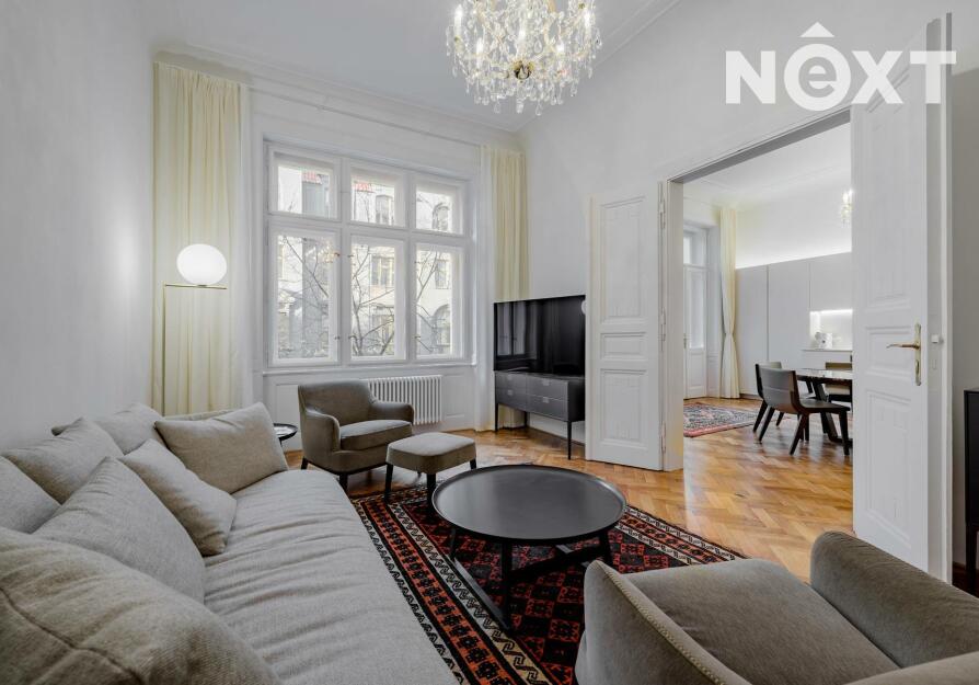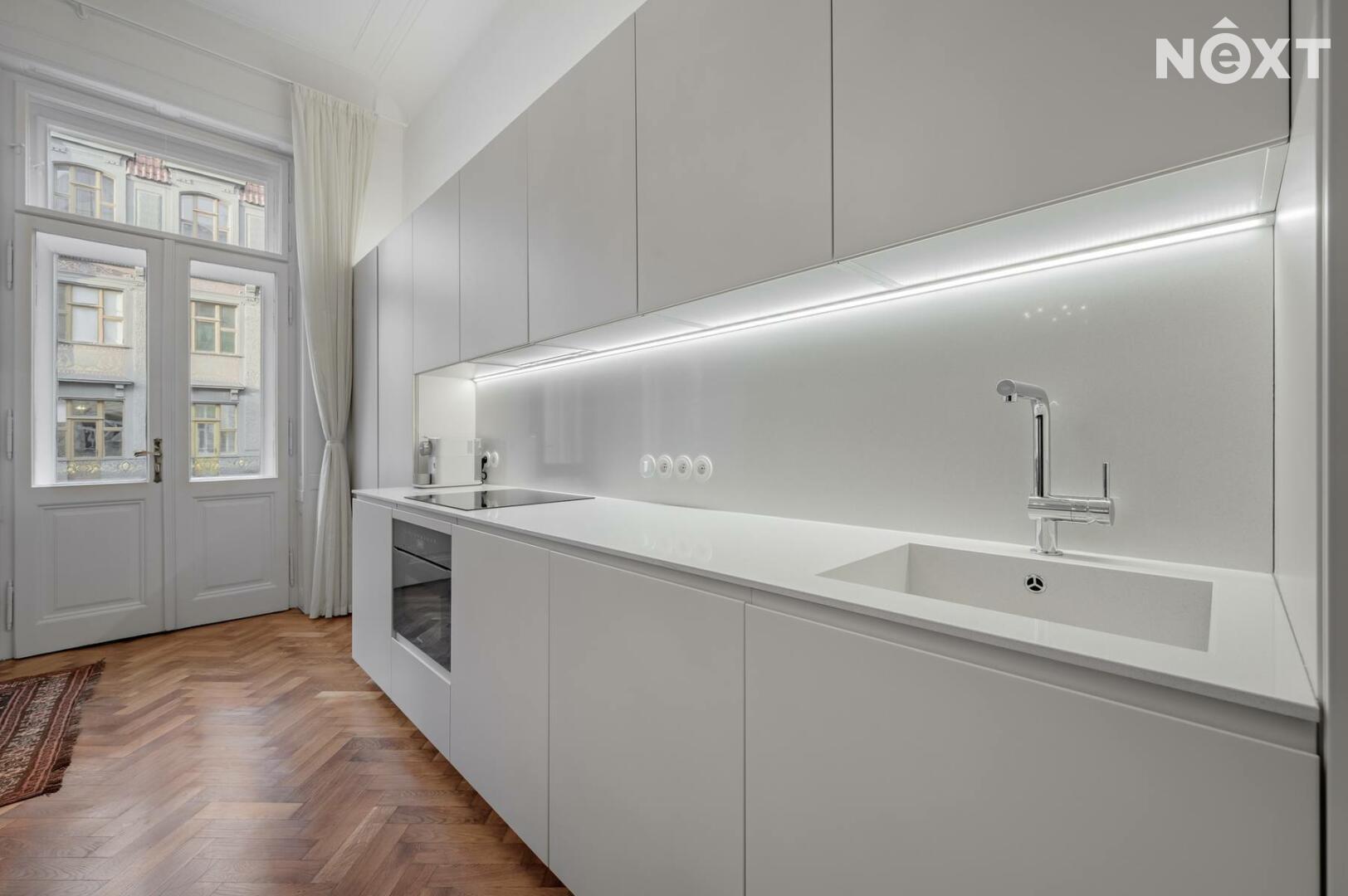 Exclusive two bedrooms apartment with two balconies for rent at the most prestigious address in Pařížská street. Floor area of the apartment is 120 m2 and is located on the 2nd floor of an Art Nouveau building with an elevator. The apartment has now undergone a complete sensitive reconstruction.
