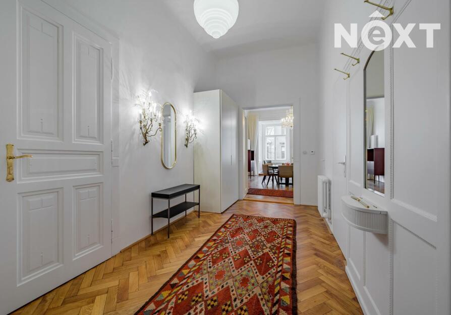Nabízíme Vám na pronájem exkluzivní byt 4+KK se dvěma balkóny na nejprestižnější adrese, v Pařížské ulici. Podlahová plocha bytu činí 120 m2 a nachází se ve 2.patře secesního domu s výtahem. Prošel kompletní citlivou rekonstrukcí. Skládá se ze vstupní haly, salonu s jídelnou a s kuchyňským koutem, odkud je vstup na balkón a výklenek orientovaný do Pařížské ulice s výhledy, 2 samostatných ložnic s orientací do tichého dvora, každá se svou koupelnou a jedna z ložnic má balkón, dále toalety pro hosty a komory s pračkou a sušičkou Miele. Byt nabízí celkem 3 toalety a 2 koupelny vybavené sanitou Devon (koupelna s bidetem, wc a sprchou, koupelna s vanou a wc, obě mají podlahové vytápění). Kompletně vybavená kuchyně Elmar (všechny spotřebiče Miele - myčka, lednice s mrazákem, trouba kombinovaná s mikrovlnkou, varná deska indukční). Parketové podlahy, štukové stropy, křišťálové lustry. Zařízeno nábytkem na míru, šatní skříně Jesse, a mobilním nábytkem Maxalto.. Výklenek s výhledem do Pařížské ulice a na Staroměstské náměstí. Vytápění plynovým etážovým kotlem, k dispozici internet a dvě TV. K nastěhování ihned. Prostorná sklepní kóje. Poplatky činí 1.500,- Kč (pro 2 osoby) + internet a TV 1.200,- Kč + elektřina a plyn dle spotřeby (budou převedeny na nájemníka). Možnost zajištění úklidu 3500,- Kč/měs.