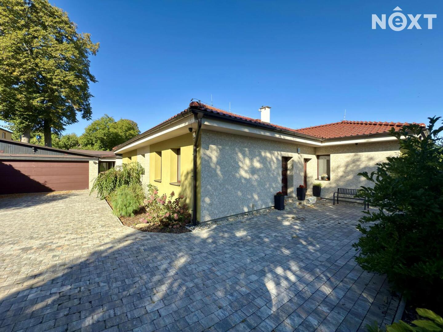 Ve výhradním zastoupení nabízíme výjimečný, moderní, nedávno postavený, rodinný dům 6+KK. Tento prostorný bungalov s wellness a bazénem nabízí pohodlné a energeticky úsporné bydlení na pozemku o velikosti 965 m².