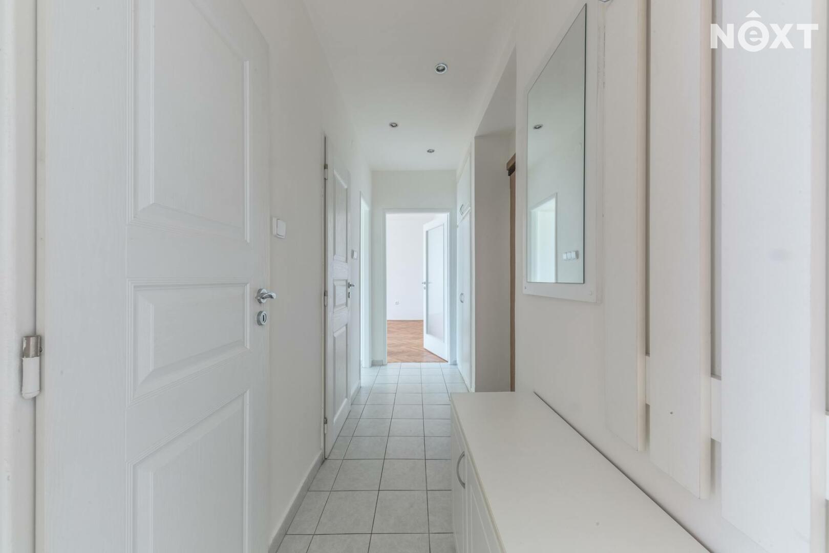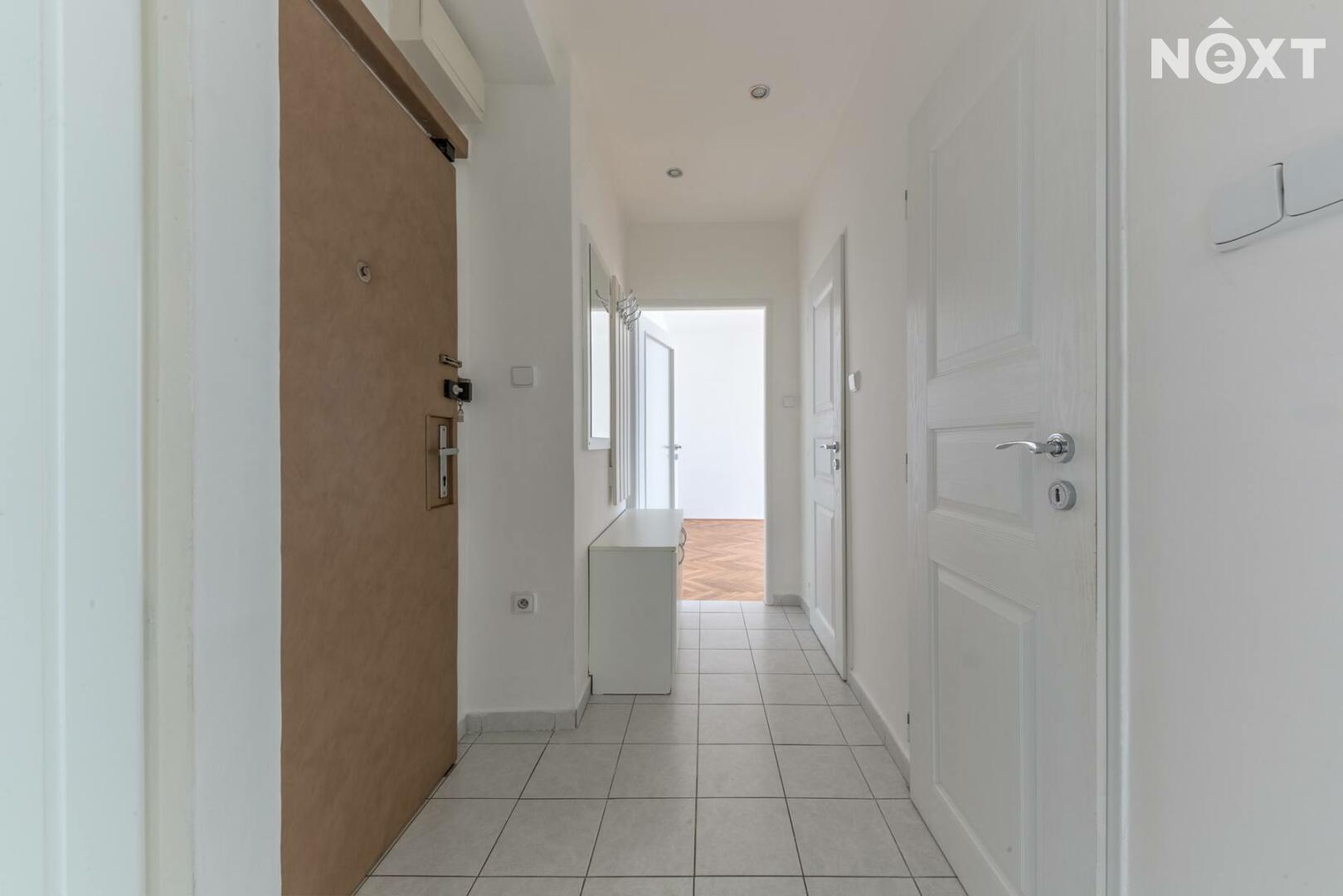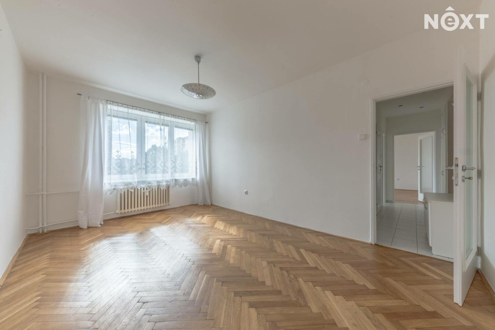 Pronájem světlého, účelně řešeného bytu 2+1 s balkónem a sklepem v Praze – Záběhlicích v ulici Na Chodovci. Byt o ploše 54 m2 je situován ve 3. patře pětipatrového panelového domu s výtahem. Byt byl v roce 2014 kompletně rekonstruován. Má dva samostatné neprůchozí pokoje (16,5 a 18,6 m2). Kuchyň s linkou (plynová deska se sporákem, vestavěná pračka, digestoř) má spíž a vstup na balkón. Koupelna s vanou, samostatná toaleta. V chodbě, vpravo vedle vstupu, je vestavěná skříň. Na podlahách v pokojích jsou dřevěné parkety, na chodbě, v koupelně, toaletě a v kuchyni je keramická dlažba. K bytu náleží sklep (2 m2) v suterénu domu. Byt je orientován na jih, má okna do klidného vnitrobloku se vzrostlou zelení. Dům energetické třídy B je po revitalizaci (zateplená fasáda, střecha, rozvody, plastová okna, vstupní dveře na čip, výtah). Pronajímá se nezařízený.