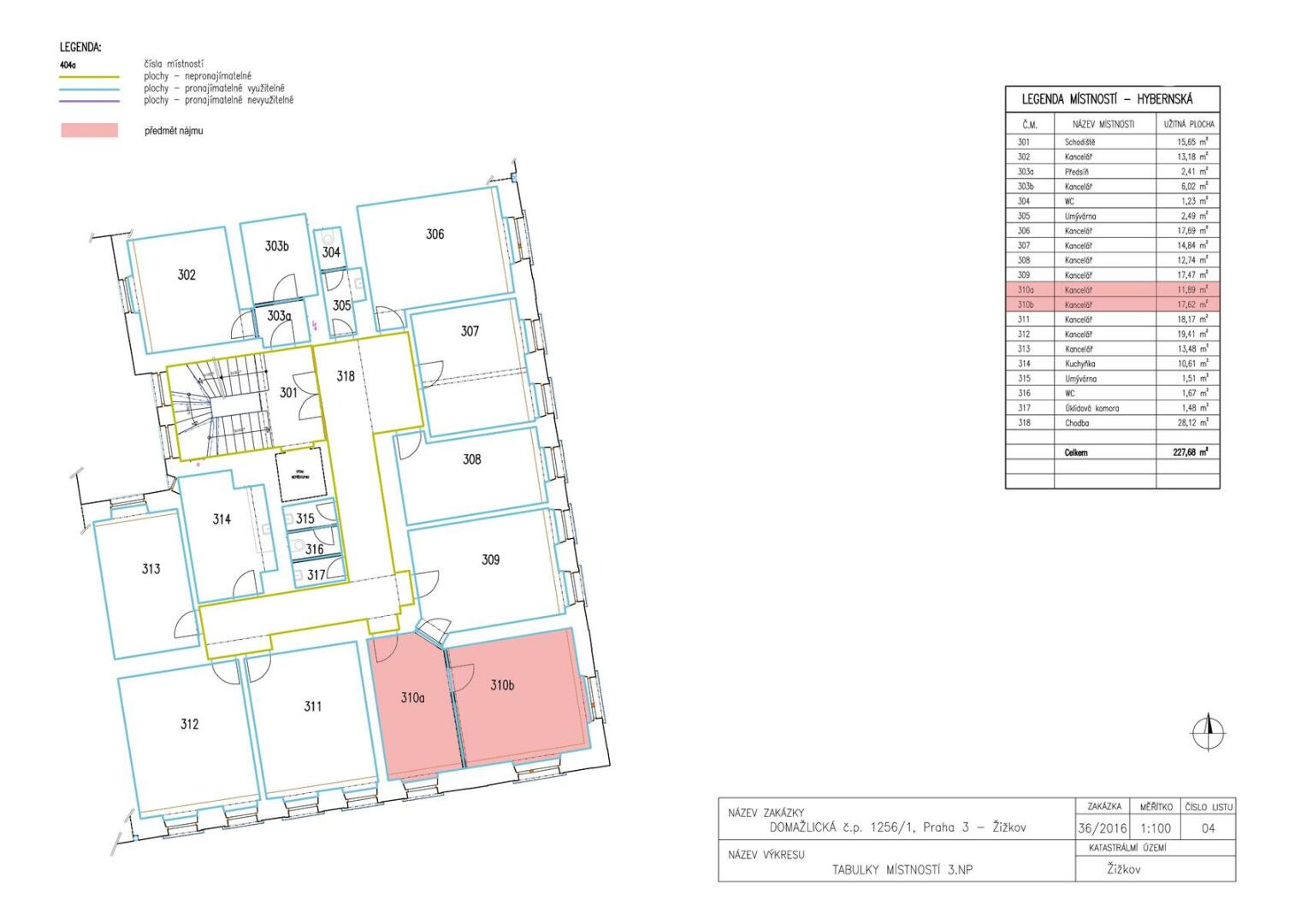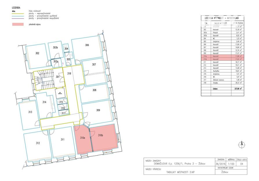 K pronájmu nabízíme kanceláře v administrativní budově na Praze 3 – Žižkov, ve 2. patře, označené na plánku jako místnost č. 310a + 310b. Budova je po kompletní rekonstrukci a modernizaci, vybavena vlastní telefonní ústřednou a rozvody datových i telefonních sítí v celém objektu. Lokalita nabízí výbornou dopravní dostupnost – v pěší vzdálenosti se nachází autobusová i tramvajová zastávka, stanice metra „B“ a „C“ Florenc je dosažitelná během 4 minut jízdy autobusem. V případě zájmu či pro více informací mě prosím kontaktujte. Pro komunikaci uvádějte evidenční číslo zakázky N114359.