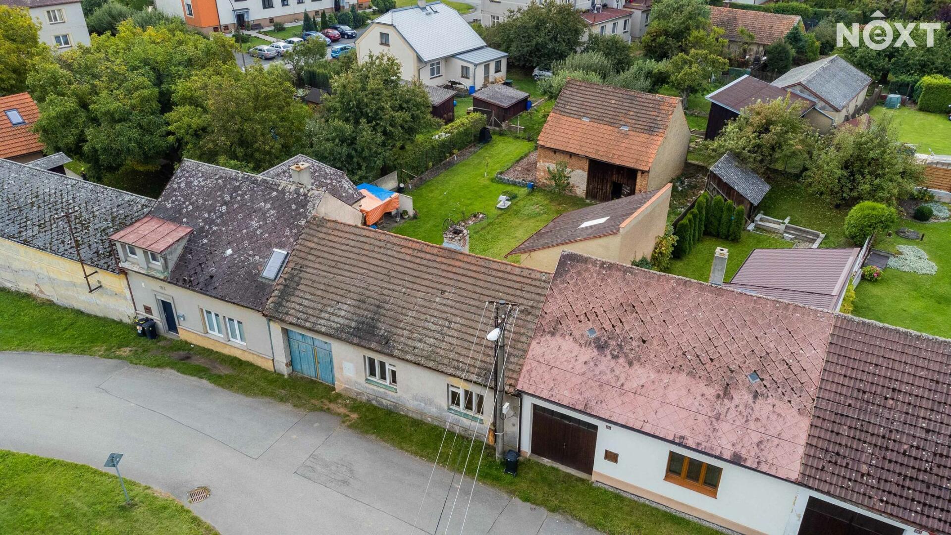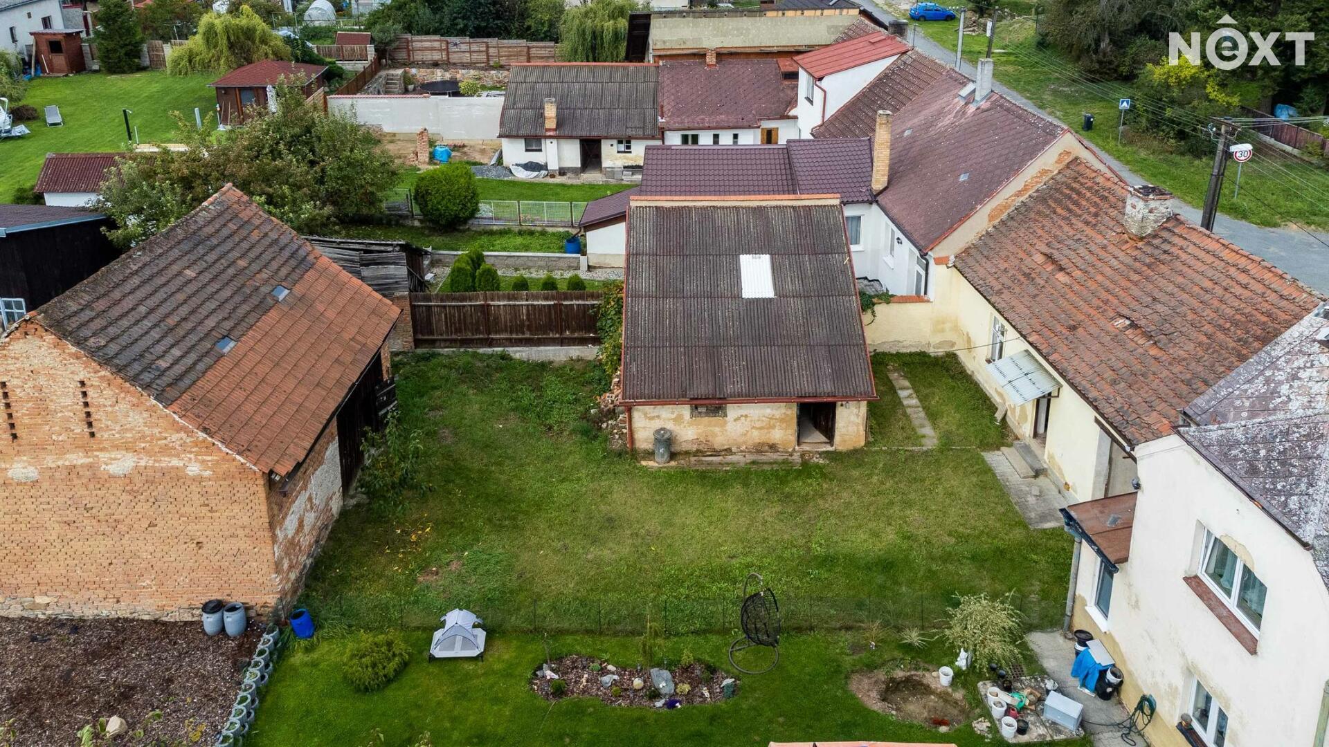 Nemovitost o dispozici 2+kk nabízí dvě obytné místnosti, koupelnu, WC a je částečně podsklepený (10 m2). Obytná plocha domu činí 45 m2. Rekonstrukce otevírá možnost rozšířit obytnou plochu – ať už přístavbou, nebo vybudováním podkroví z půdy. Součástí pozemku o výměře 399 m2 je prostorný průjezd do dvora o velikosti 20 m2, který umožňuje pohodlné parkování. Stojí zde také stodola (49 m2) a dílna (24 m2), vhodné k uskladnění, parkování nebo přestavbě (např. na garáž či ateliér).