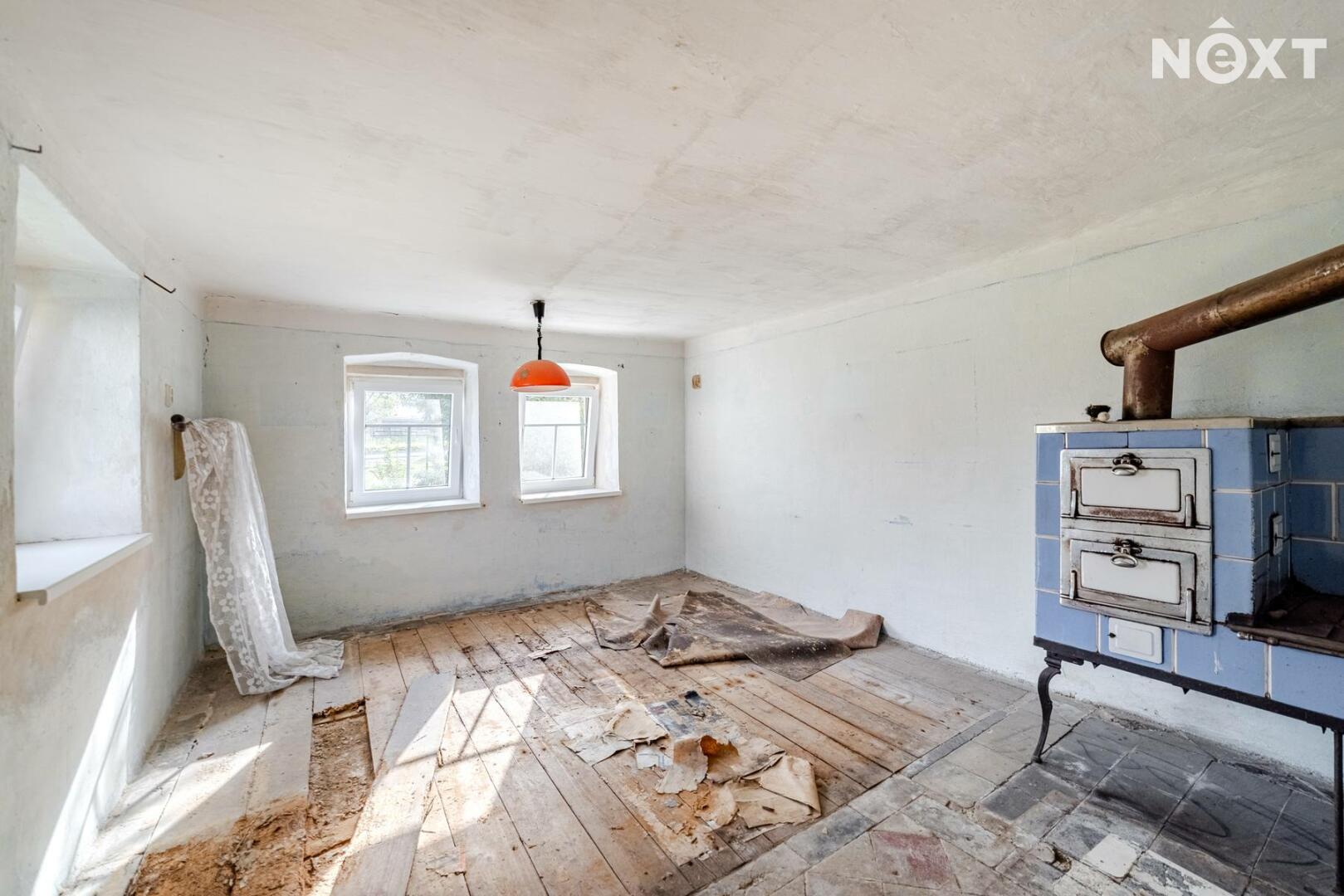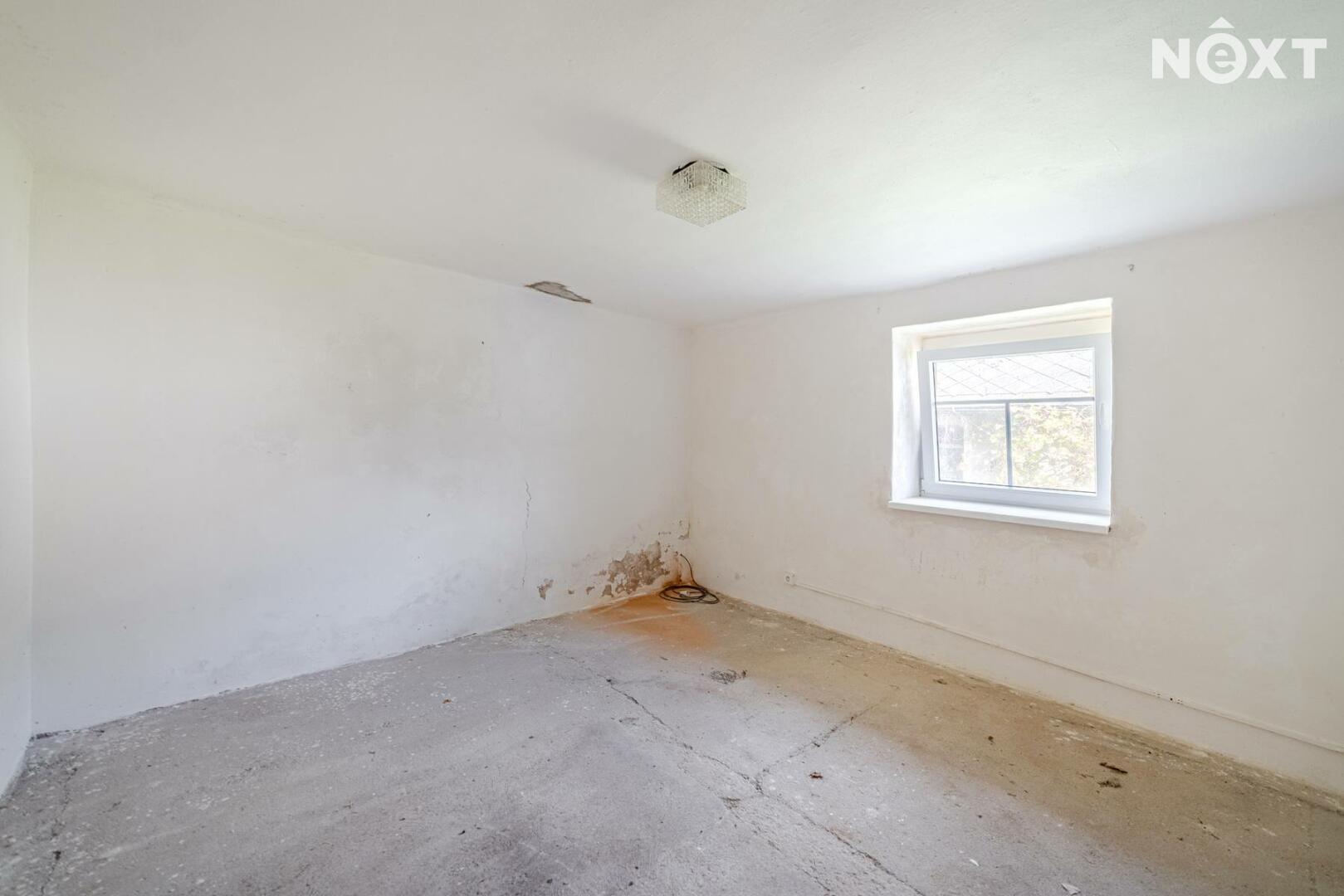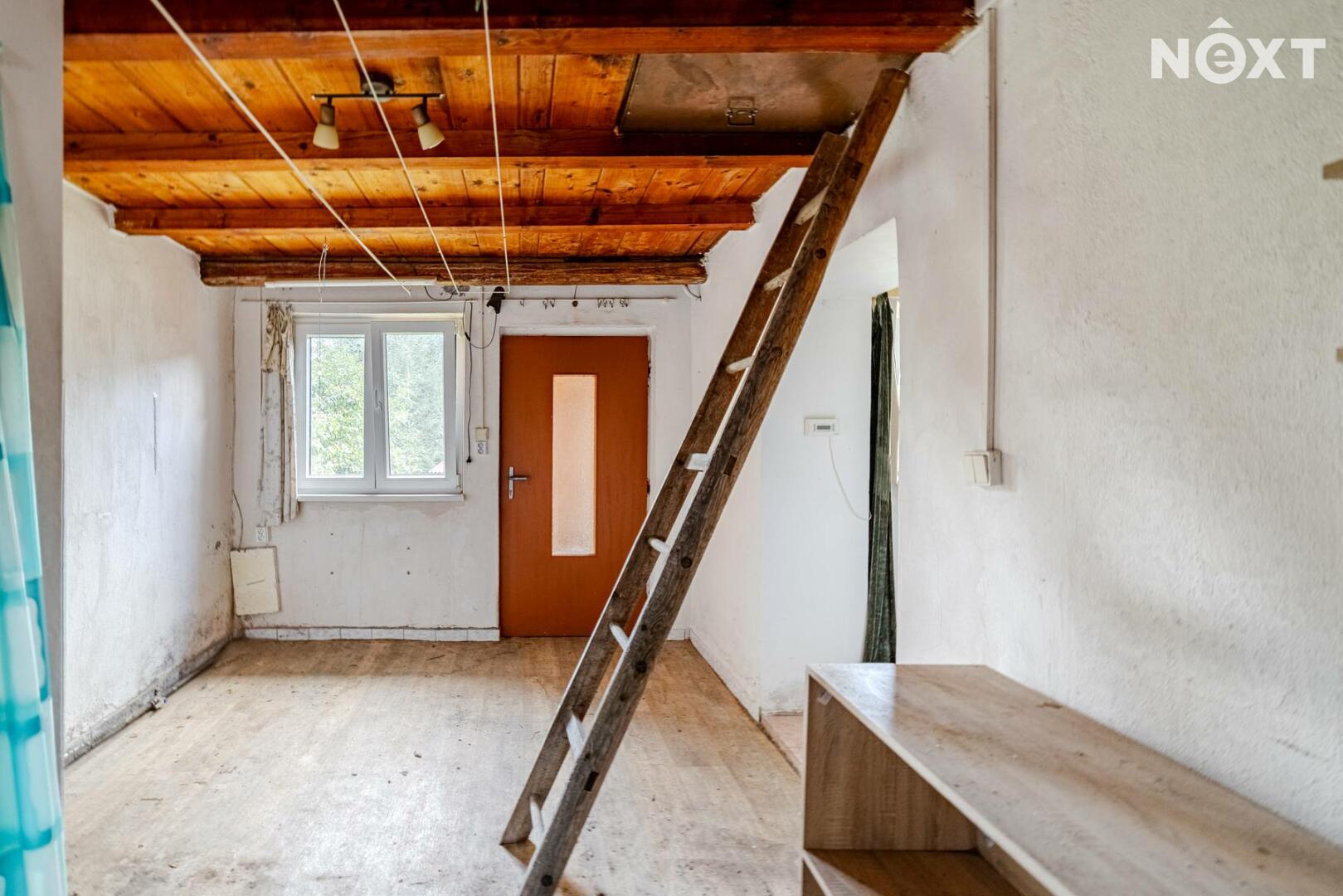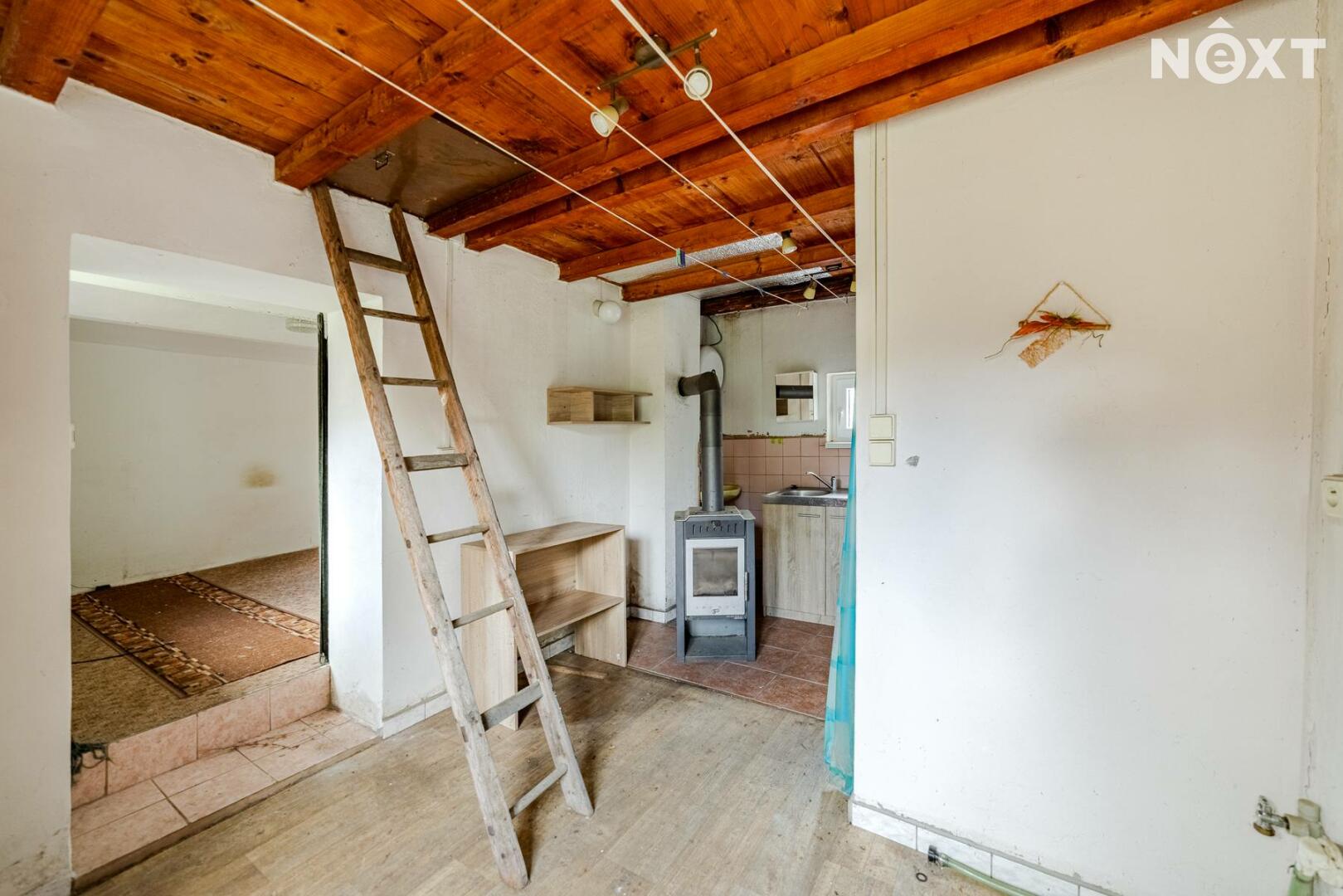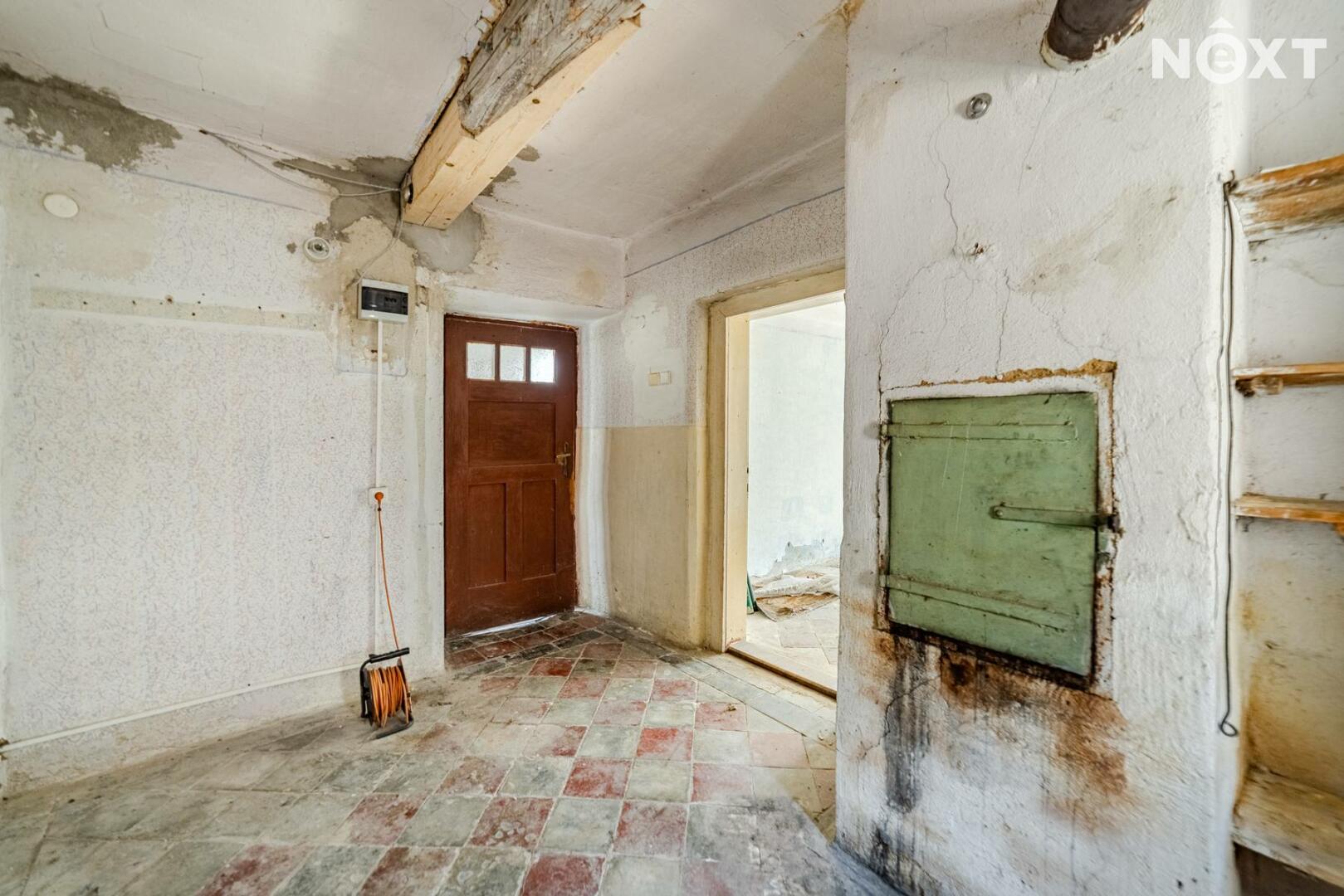 Interiér domu čeká na rekonstrukci, což je zohledněno v ceně – ideální příležitost pro ty, kteří si chtějí vytvořit domov podle vlastních představ. Dispozice umožňuje variabilní uspořádání místností dle potřeb nové rodiny.