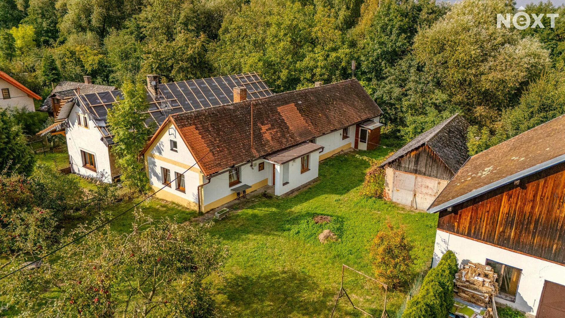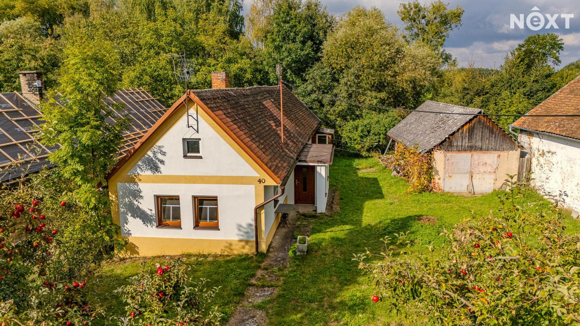 Na zahradě rostou vzrostlé jabloně a celý pozemek nabízí dobré možnosti parkování přímo u domu. Místo je klidné, vhodné pro rodiny s dětmi, kutily nebo jako chalupa pro víkendový odpočinek.