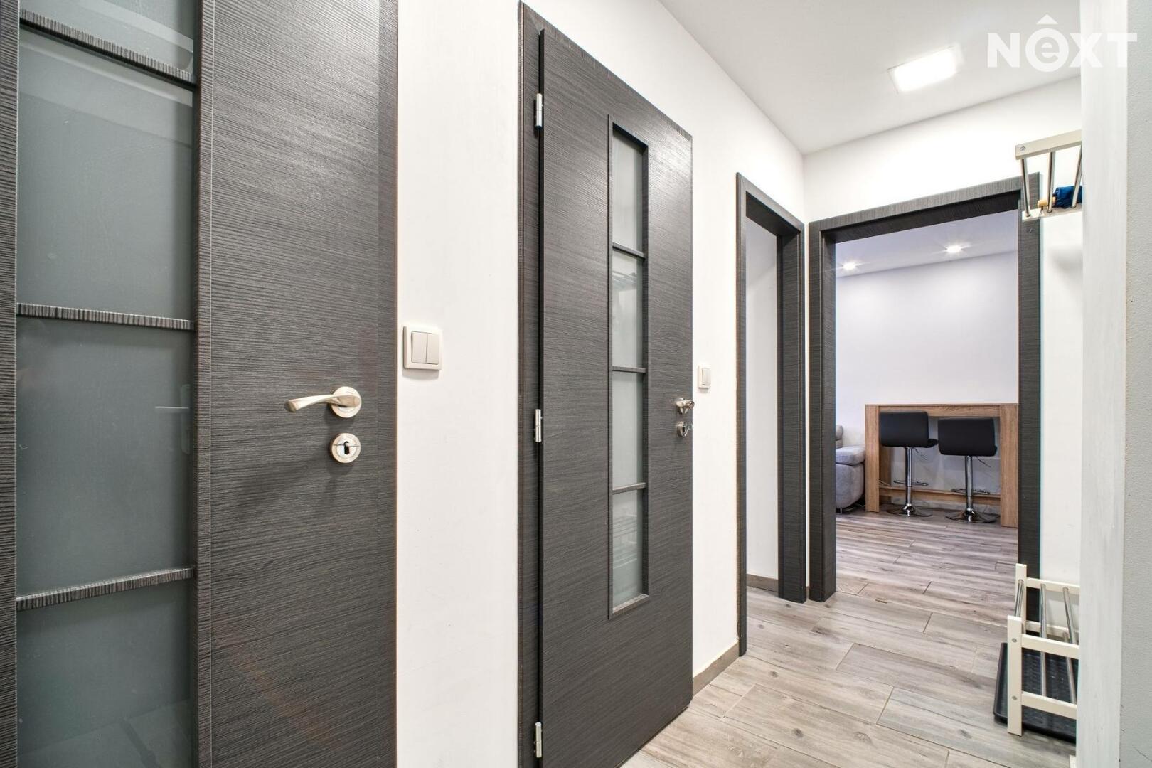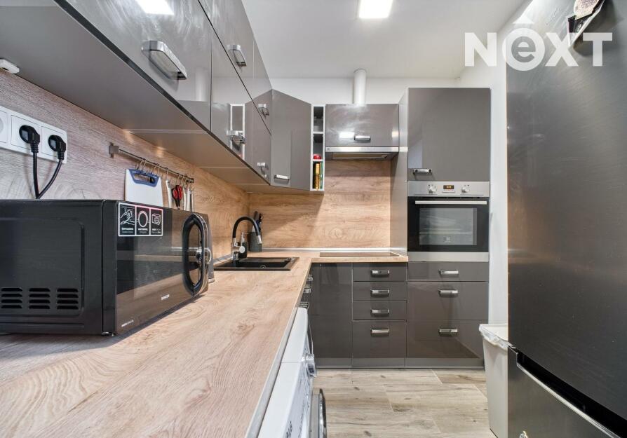 Byt je kompletně vybavený, kromě sedací soupravy, kterou si stávající majitel odváží. Kuchyň je plně zařízená, k dispozici je lednice, trouba, mikrovlnná trouba, pračka, myčka a další vybavení pro pohodlné bydlení.