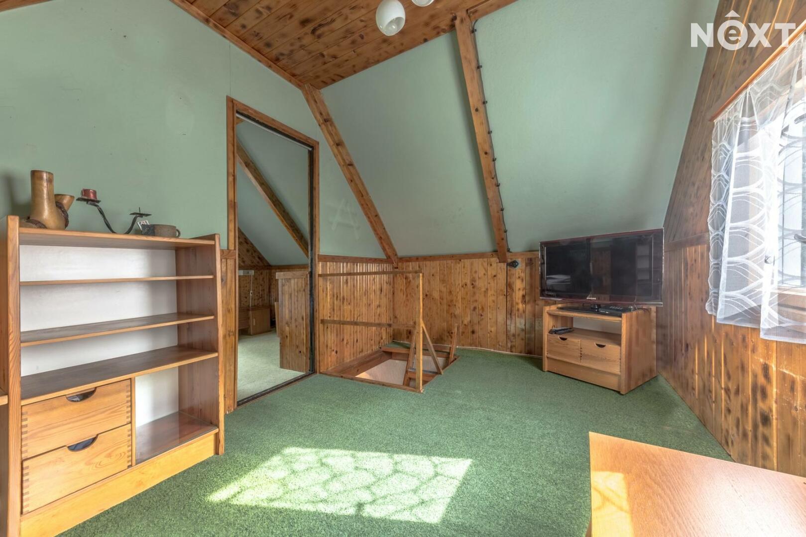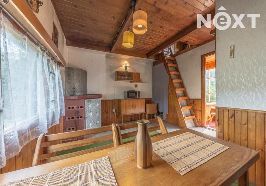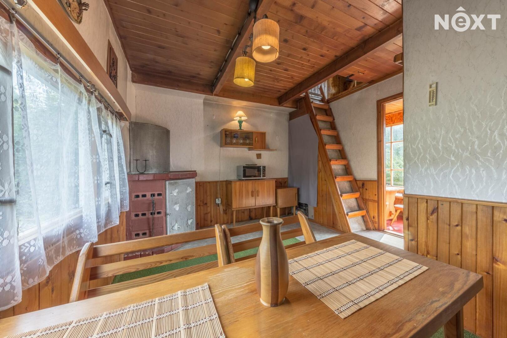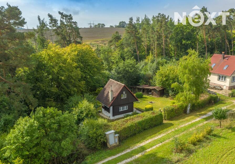 Přízemí – dvě menší předsíňky a obytný pokoj s kuchyňskou linkou, sedací soupravou a krbovými kamny, které vykouzlí tu pravou chalupářskou atmosféru. Podkroví – dva pokoje využitelné jako ložnice. Do chaty je zavedena elektřina, vodu lze čerpat ze studny pomocí čerpadla (užitková voda), je zavedena až na pozemek. Příjezd je po nezpevněné cestě vysypané kamínky, což ještě více podtrhuje kouzlo místa a zajišťuje minimální provoz v okolí. Pokud hledáte víkendové útočiště, místo pro rodinný odpočinek nebo klidný kout obklopený přírodou, přijďte se podívat osobně. Atmosféra lesa a zahrady se nedá popsat, tu je třeba zažít. Pro komunikaci uvádějte evidenční číslo zakázky N114410.