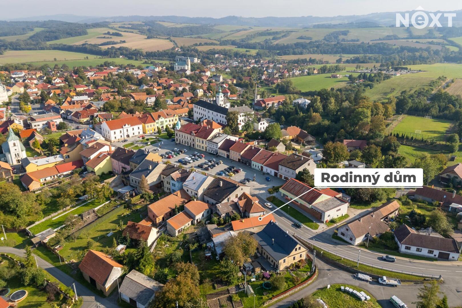 Dům se nachází téměř přímo na náměstí, což zajišťuje výjimečnou občanskou vybavenost na dosah.