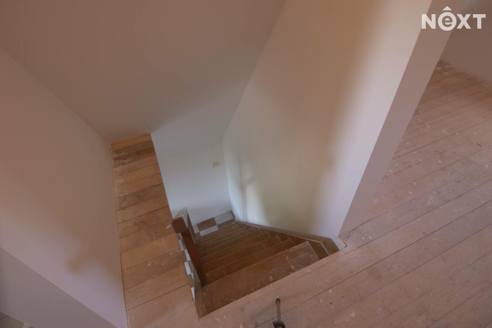 • 1. nadzemní podlaží – prostorná společenská místnost s krbem, kuchyňský kout s přípravou na kuchyňku, toaleta s přípravou na sprchový kout.
