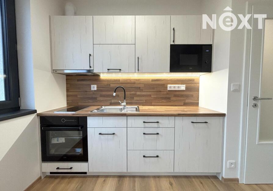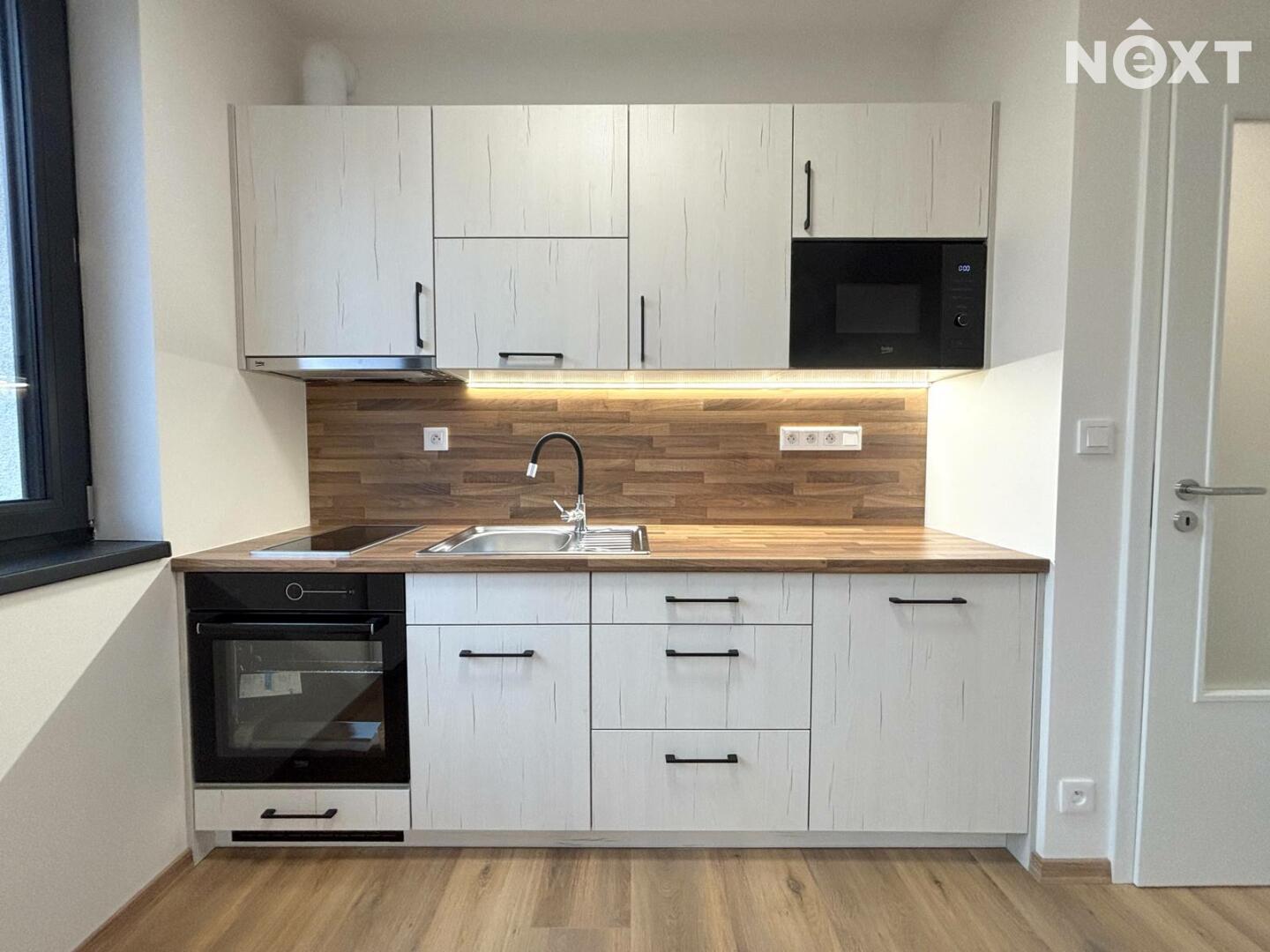 Byt se nachází ve 3. patře domu a nabízí světlý obytný prostor s moderně vybaveným kuchyňským koutem a koupelnu s vanou. Velkým benefitem je prostorná terasa, která poskytuje příjemný prostor pro posezení a relaxaci. Součástí pronájmu je rovněž garážové stání v suterénu domu a sklep, což zajišťuje maximální komfort a praktické zázemí pro každodenní život.