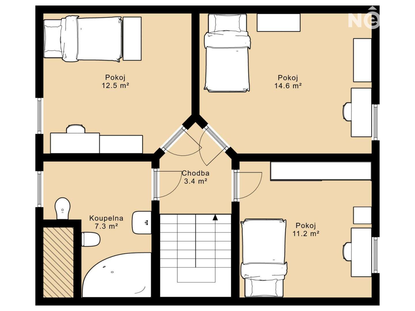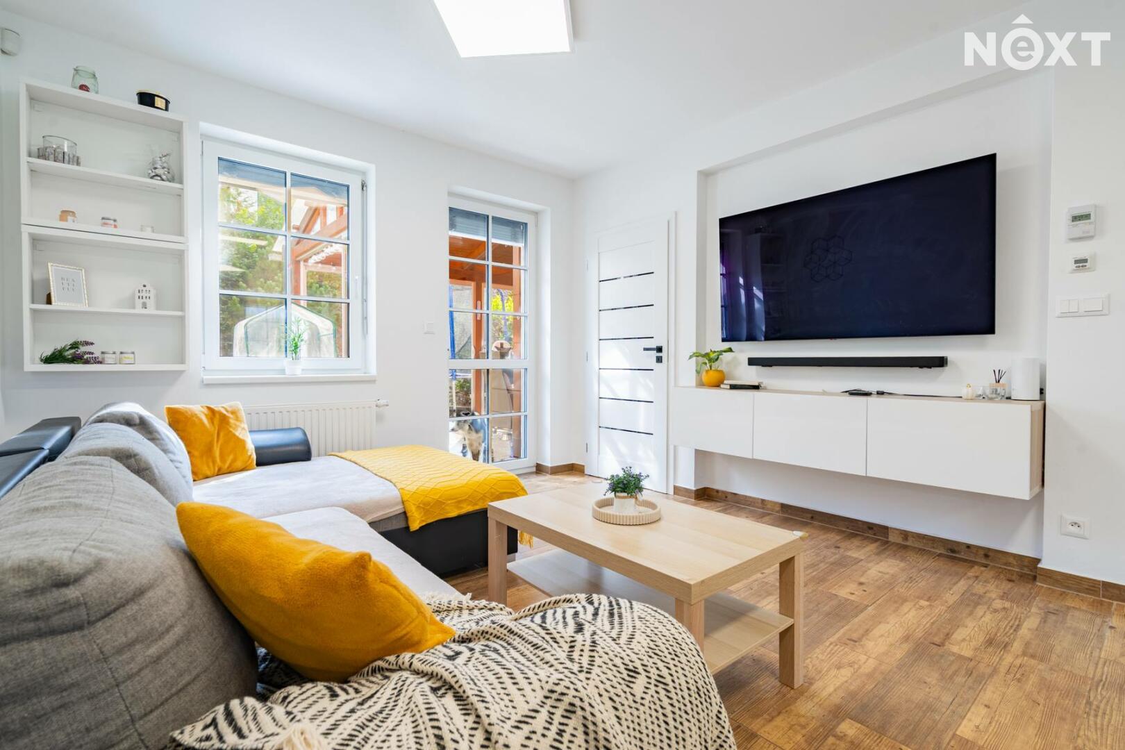 Promyšlená dispozice pro komfortní bydlení: V přízemí se nachází hlavní obytný prostor tvořený světlým obývacím pokojem propojeným s moderní kuchyní, vybavenou všemi potřebnými spotřebiči. Navazuje na něj zimní zahrada, ideální pro relaxaci, domácí kancelář nebo posezení s přáteli. Za obývacím pokojem je nově vybudovaná ložnice. V přízemní naleznete technickou místnost pro plynový kotel, pračku a sušičku, dále pak nově rekonstruované WC a uzavíratelnou šatnu. V prvním patře najdete tři ložnice a ve dvou se nachází klimatizační jednotka na chlazení nebo ohřev, dále v patře je koupelna s vanou WC a bidetem. Podkroví bylo přestavěno na útulný pokoj pro hosty, kancelář či hernu pro děti, vybavený klimatizací a ohřevem.