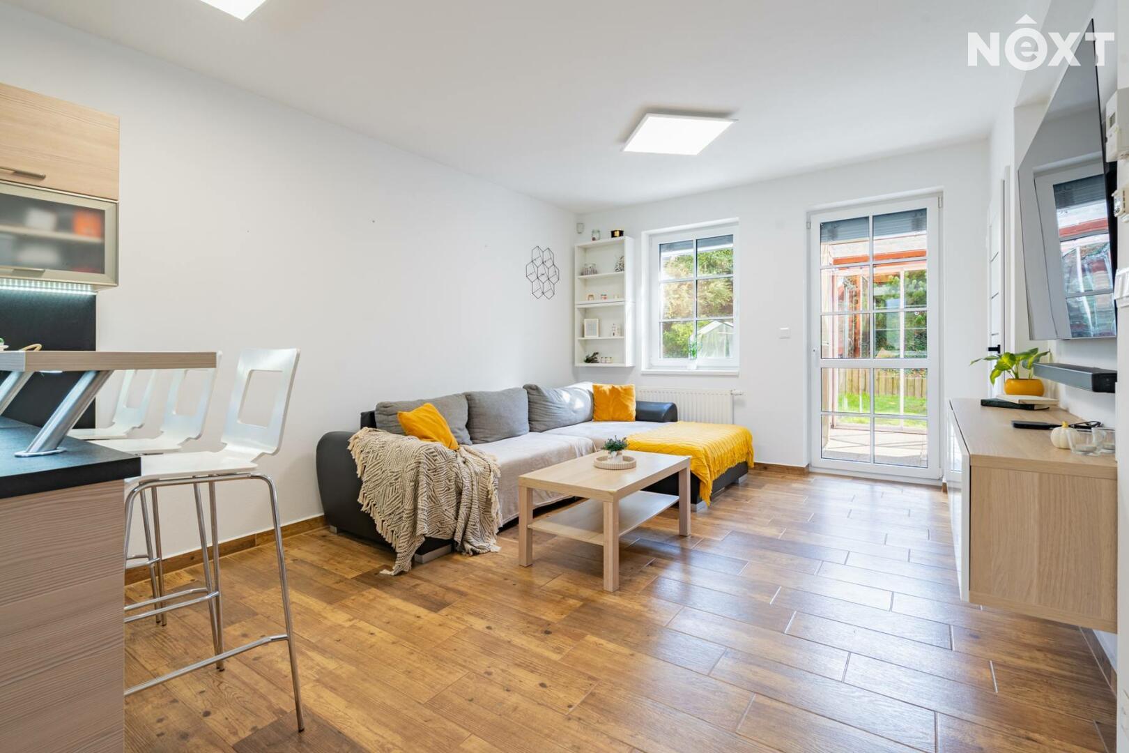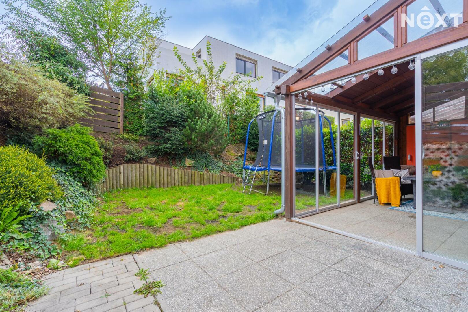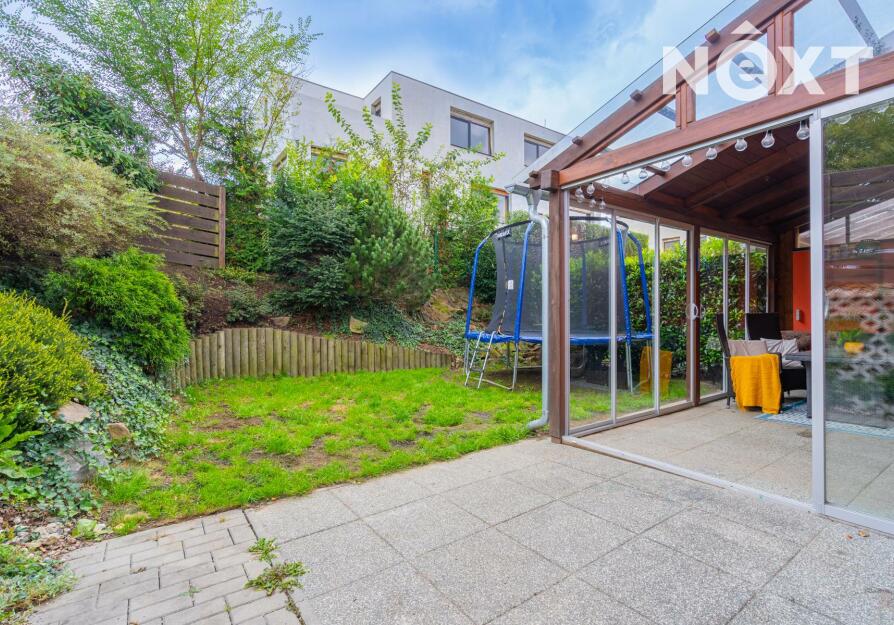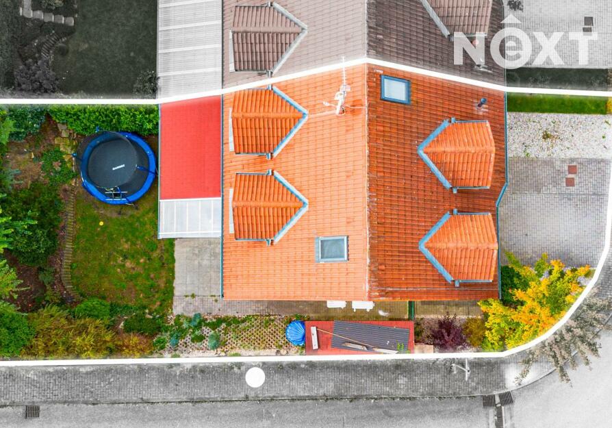 Zahrada je menší, ale nabízí prostor pro krytou pergolu pro venkovní posezení, trampolínu. Před domem jsou dvě parkovací stání. Technické detaily a rekonstrukce: Dům je vytápěn plynovým kotlem s ohřevem vody a v přízemí je podlahové topení, v 5/2025 proběhla rekonstrukce spodního WC, interiérové dveře, samostatná spodní ložnice s příčkou a novou elektroinstalací. Během minulých let se přidaly do spodních oken předokenní žaluzie, vybudována šatna, klimatizační jednotky, rekonstrukce půdního prostoru.