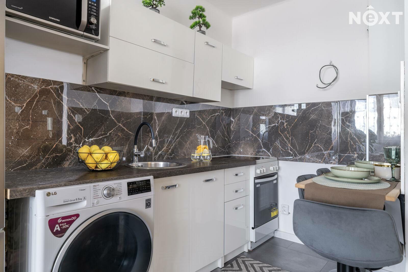• Moderní kuchyňská linka s kompletním vybavením ( včetně pračky a lednice)