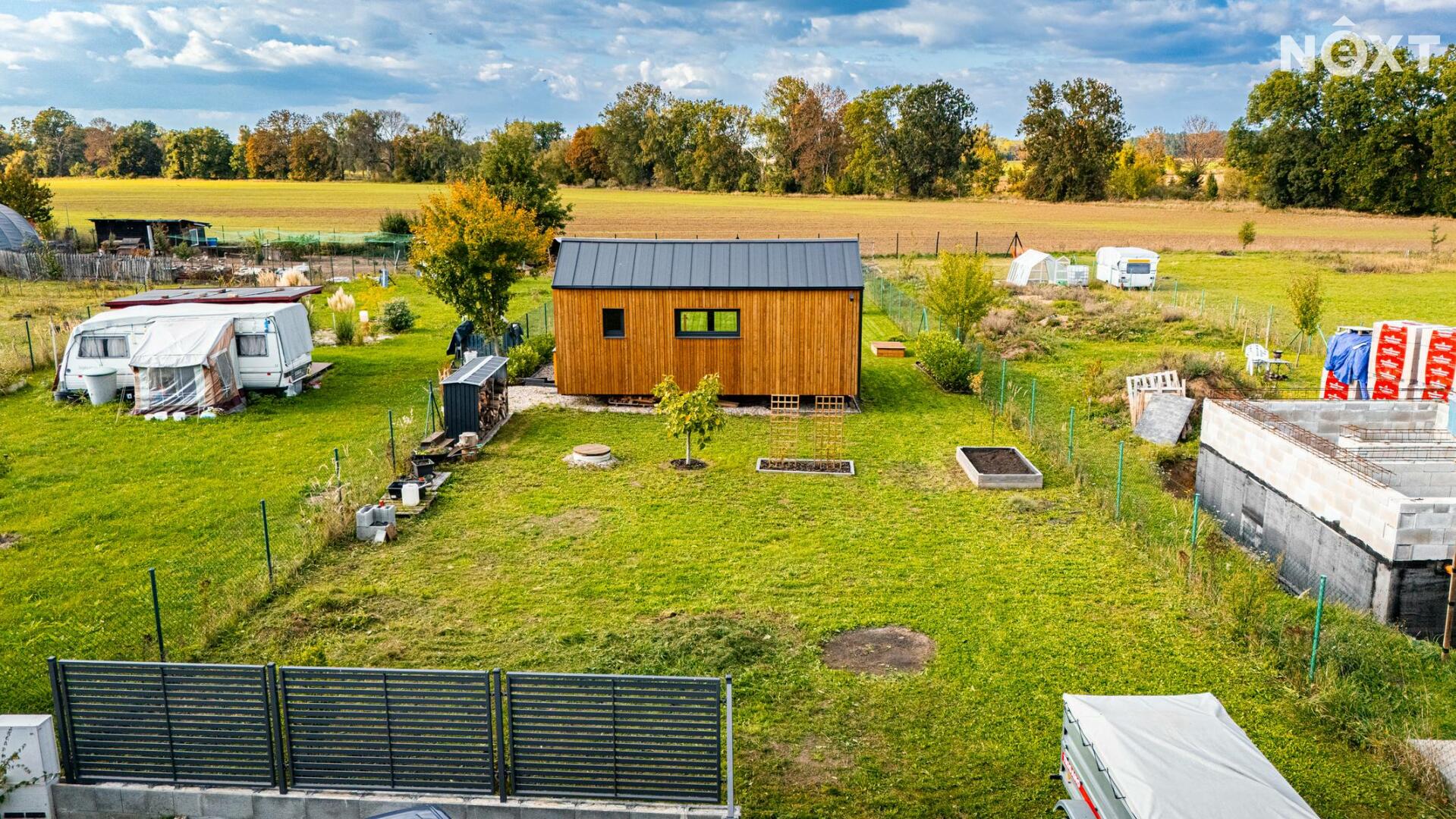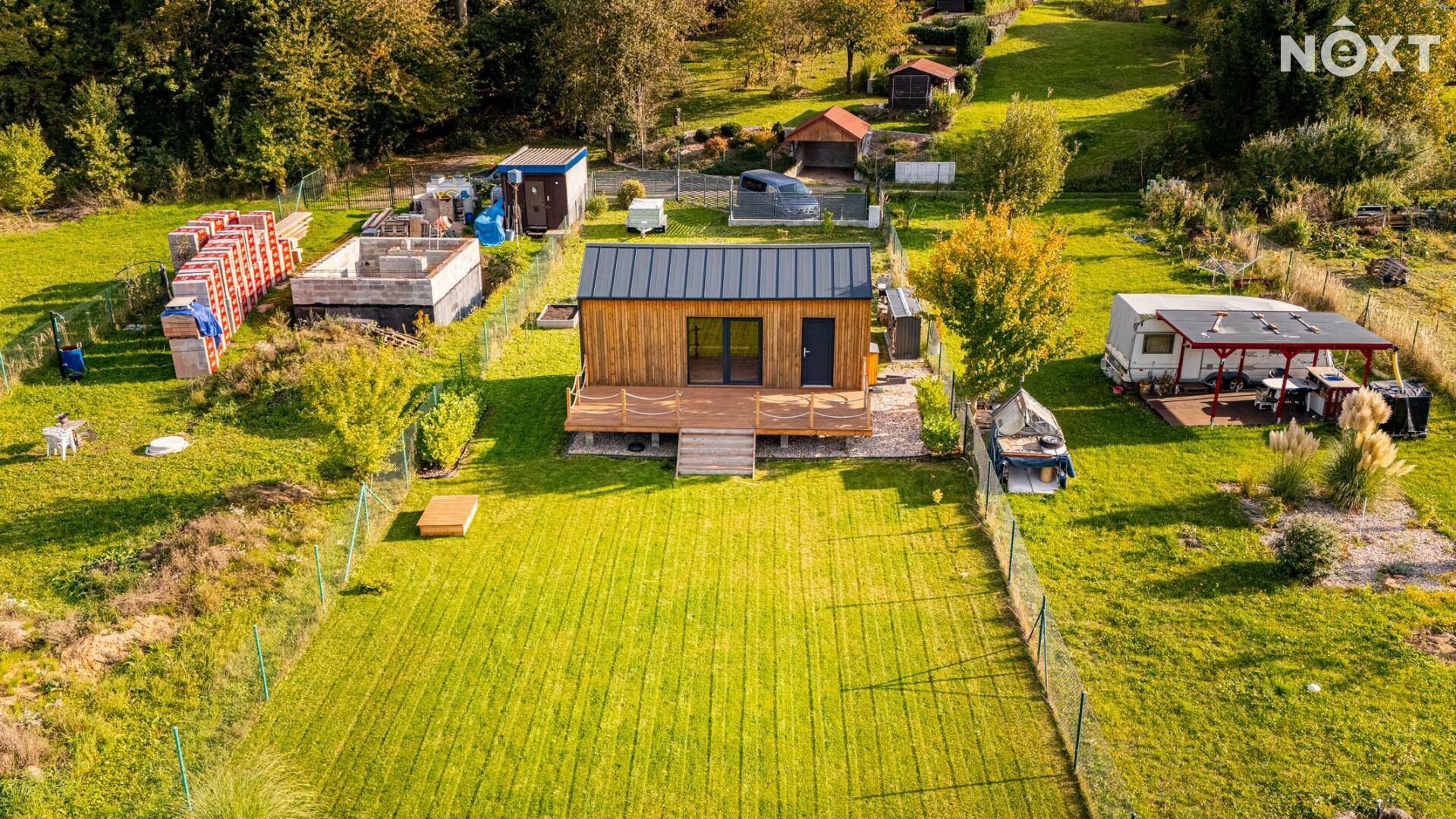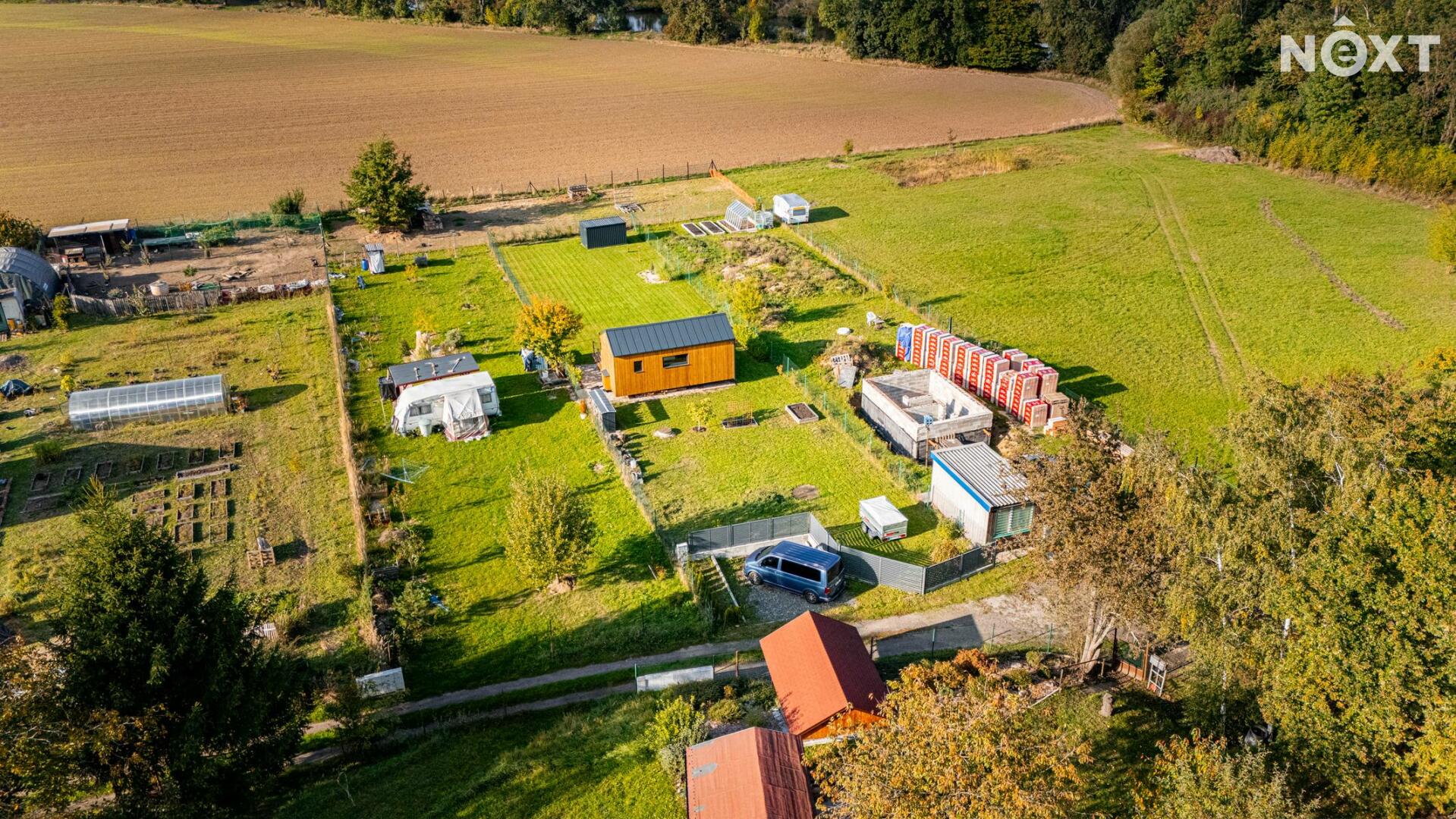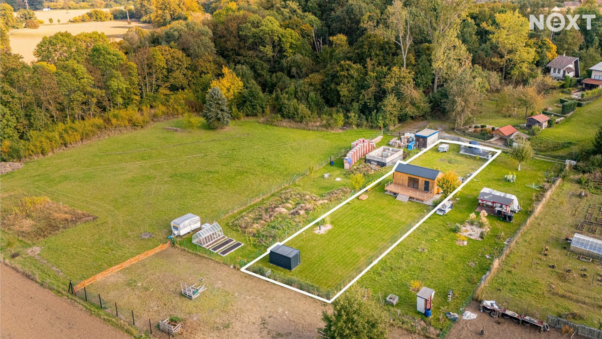 Pozemek je rovinatý, oplocený a přístupný z obecní komunikace. Na pozemek je přivedena elektřina, následně rozvedena do Tinyhousu, úložného kontejneru a k čerpadlu ve studni. V roce 2022 vyvrtán vlastní vrt o celkové hloubce 27m. Voda ze studny je přivedena do rekreačního objektu a do zahrady.
