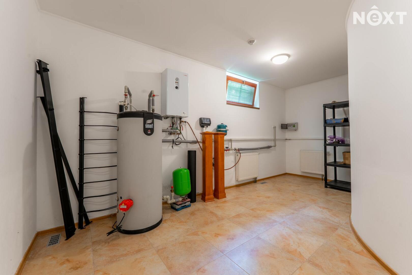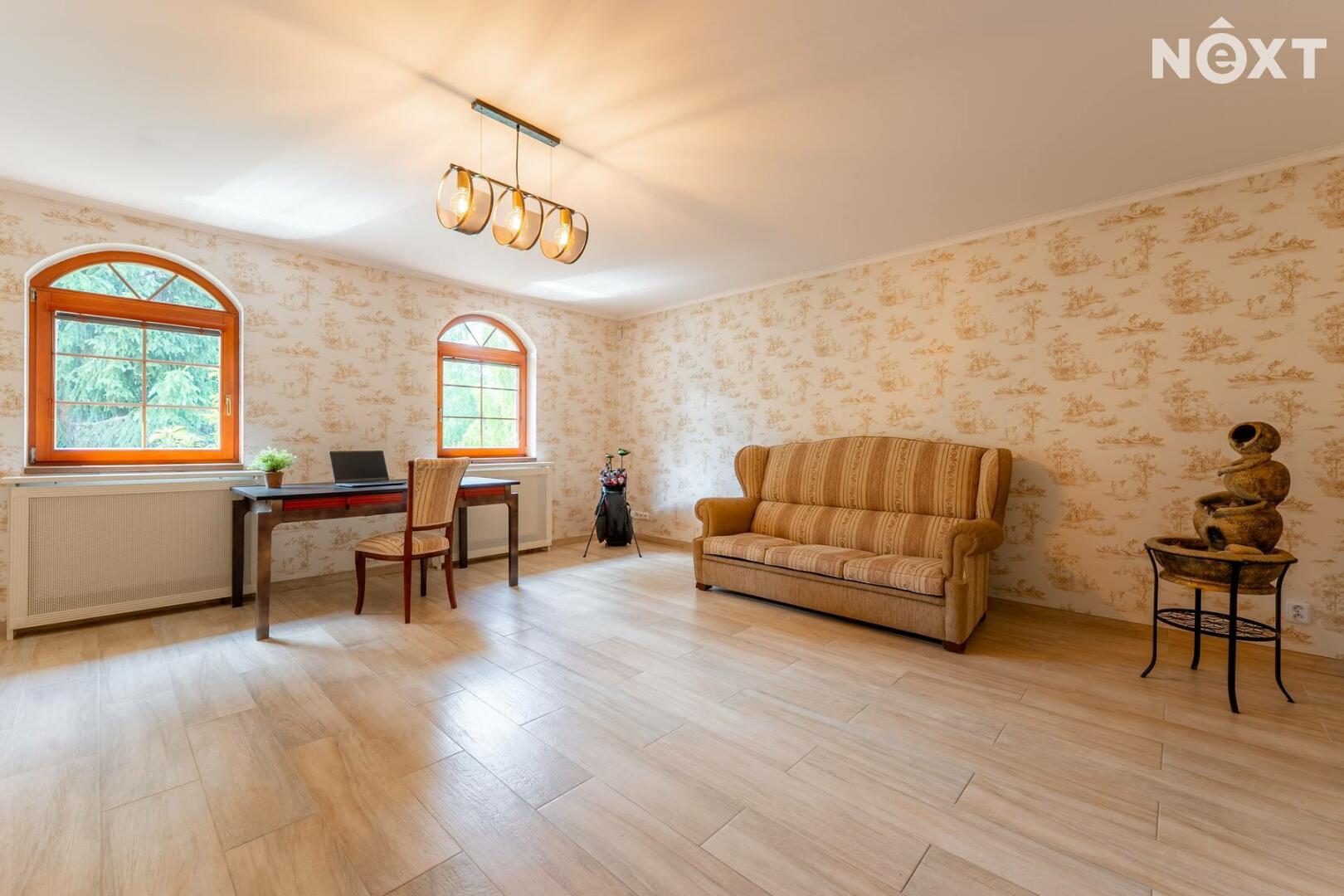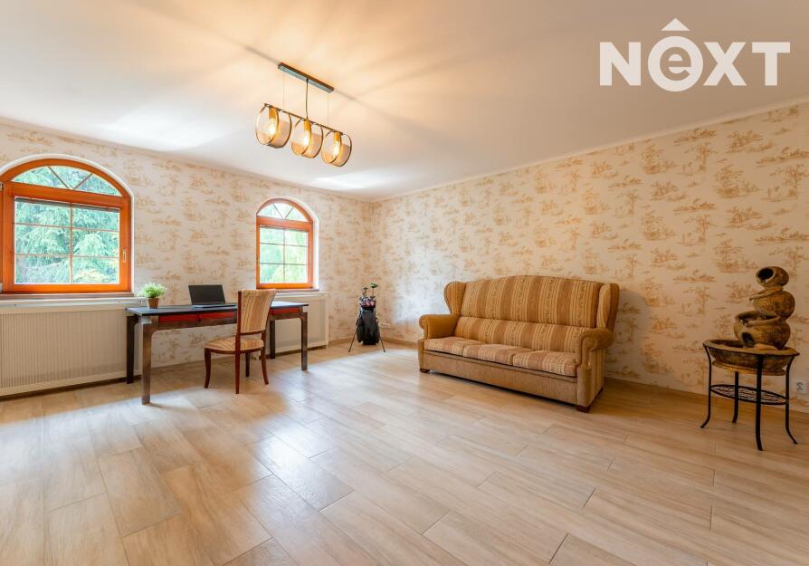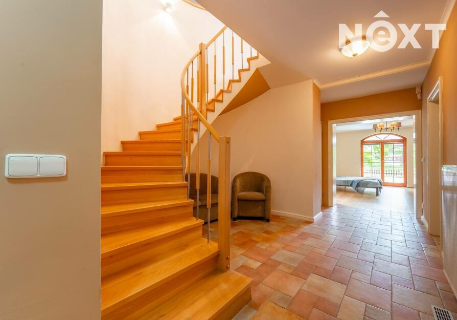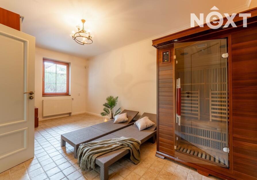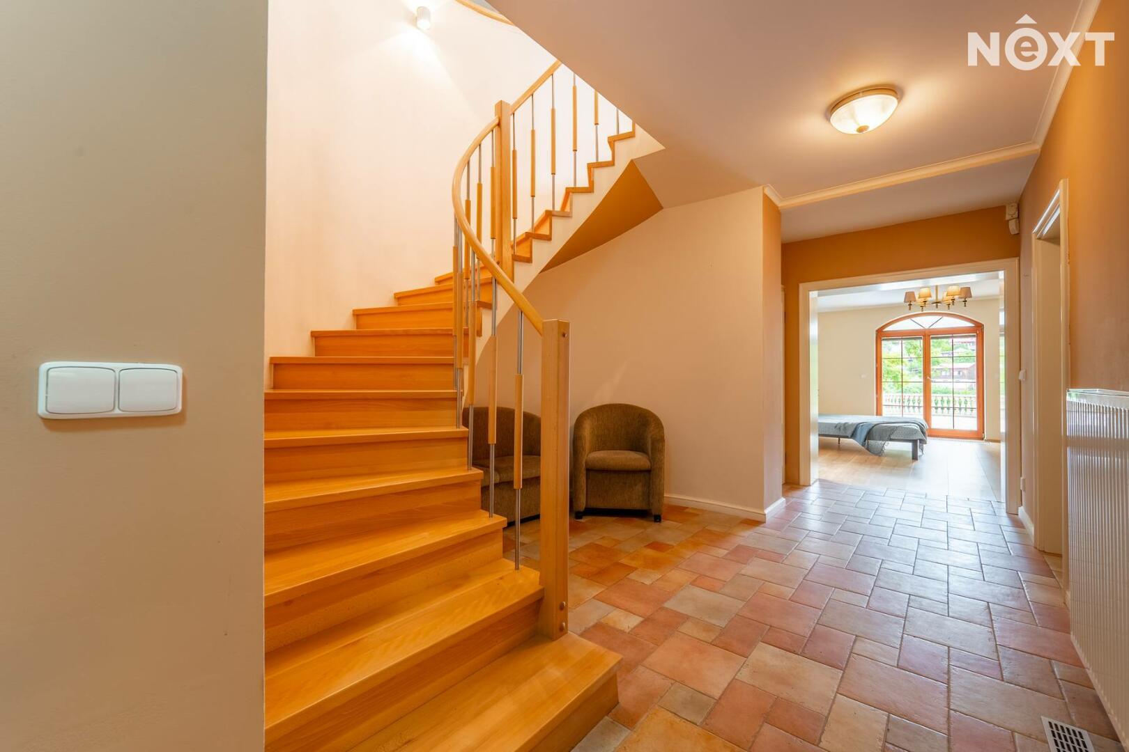 V dolním podlaží najdete hlavní ložnici, další dva pokoje a nadstandardní koupelnu s velkou masážní vanou. Technické zázemí zajišťuje soběstačnost: vlastní vrtaná studna, čistička, elektrokotel s podlahovým vytápěním, bojler, vodárna a kamerový systém.