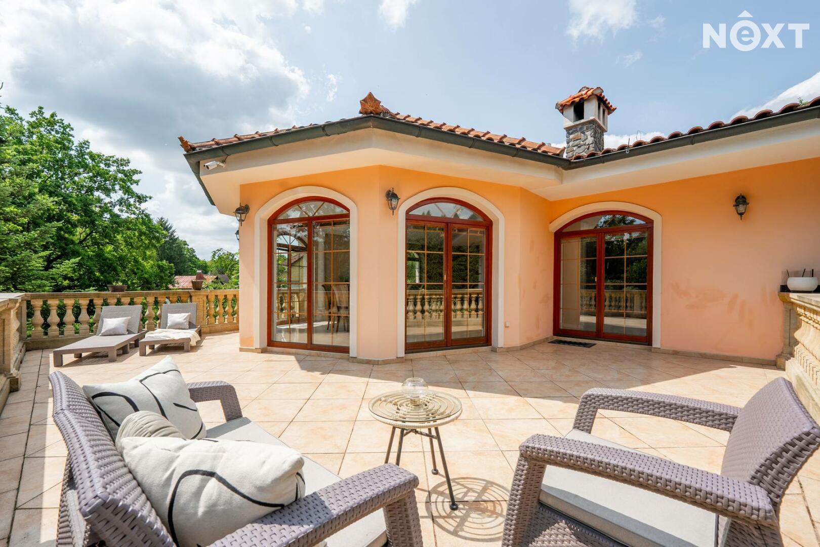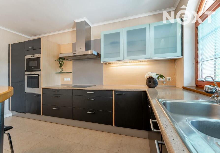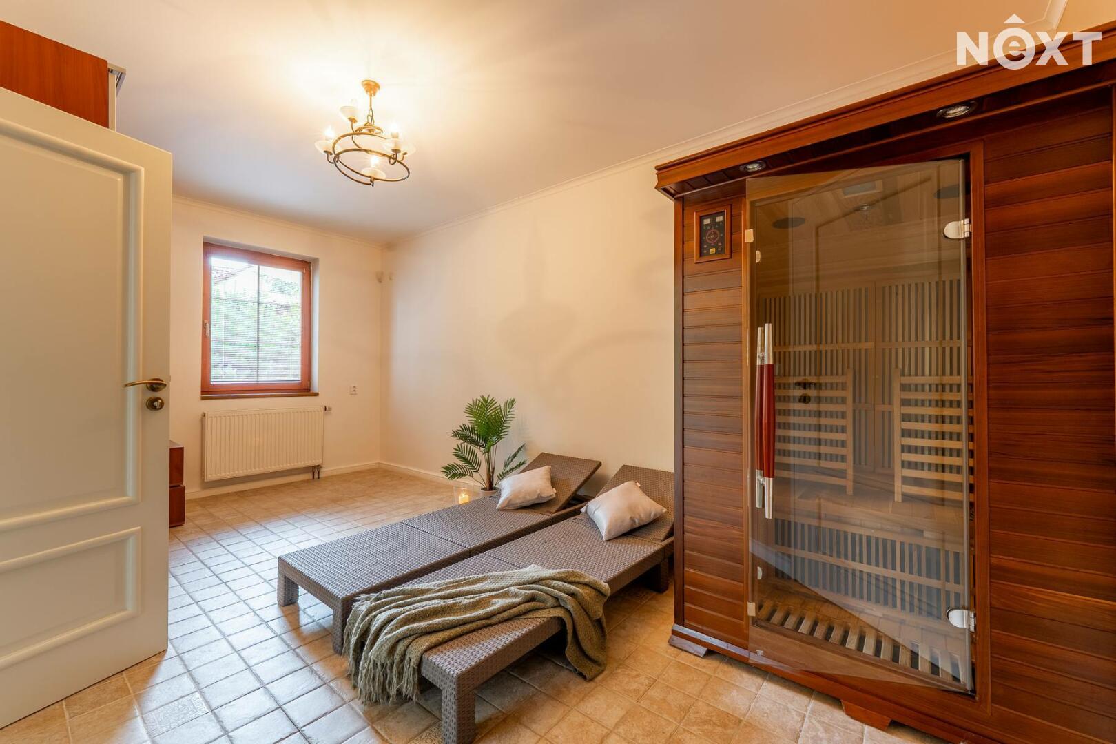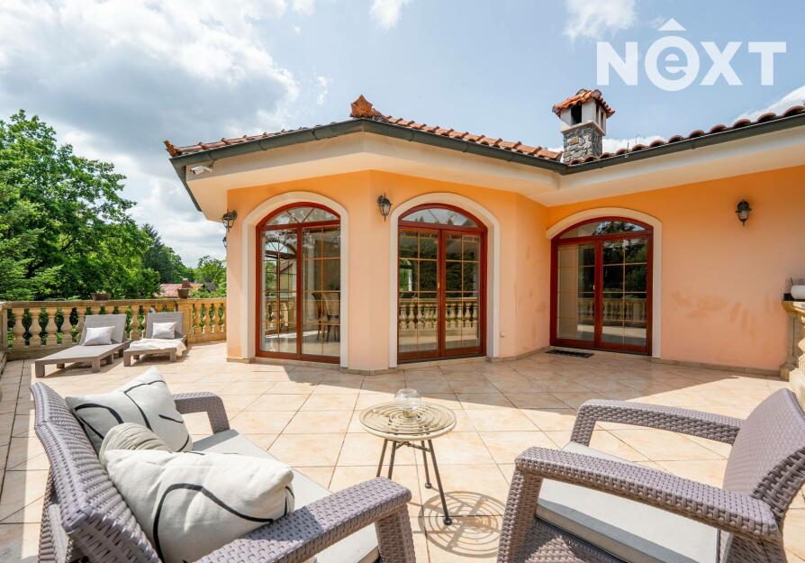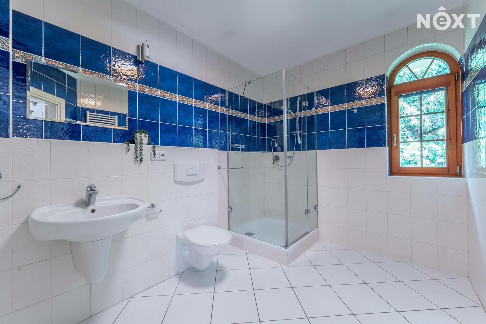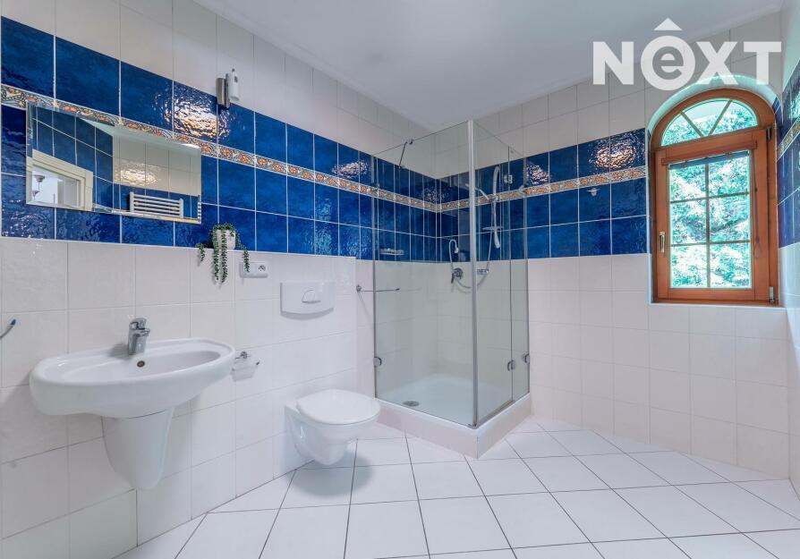 V dolním podlaží najdete hlavní ložnici, další dva pokoje a nadstandardní koupelnu s velkou masážní vanou. Technické zázemí zajišťuje soběstačnost: vlastní vrtaná studna, čistička, elektrokotel s podlahovým vytápěním, bojler, vodárna a kamerový systém.