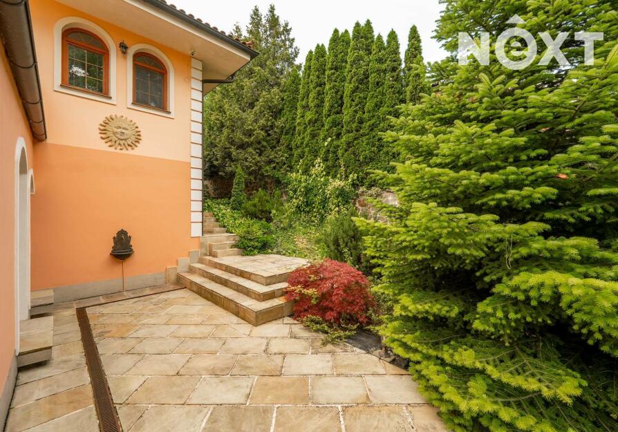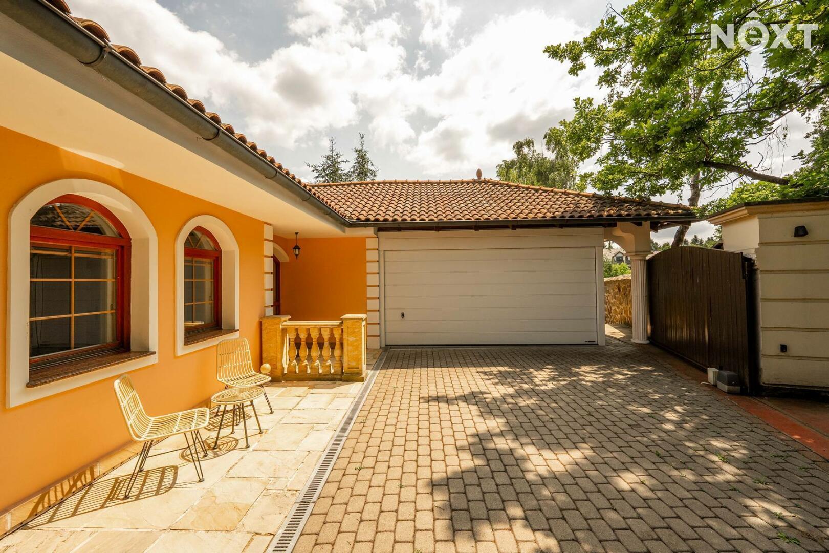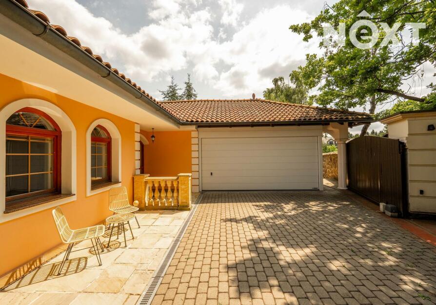 Součástí je dvougaráž, elektrická vjezdová brána a zahrada o rozloze 665 m². Celková plocha pozemku činí 921 m².