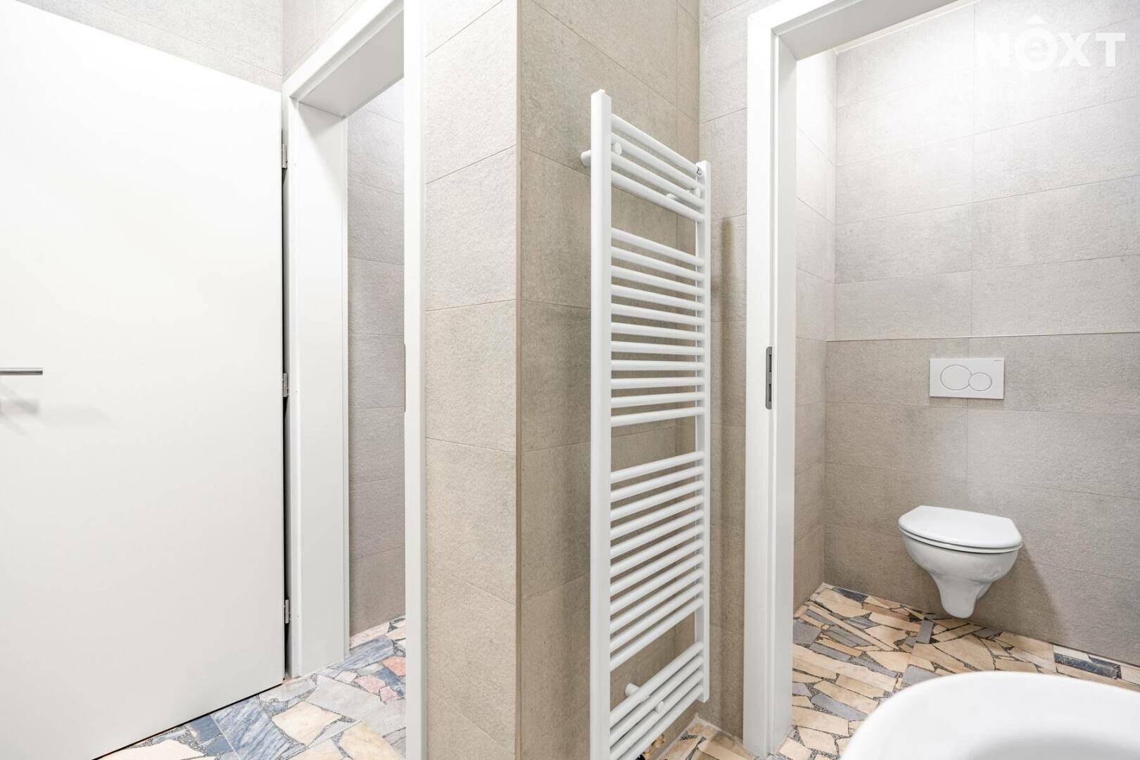 Součástí je moderní podlahové vytápění s možností regulace, příprava pro drobné provozní vybavení a přístup z prostorné chodby rezidence.