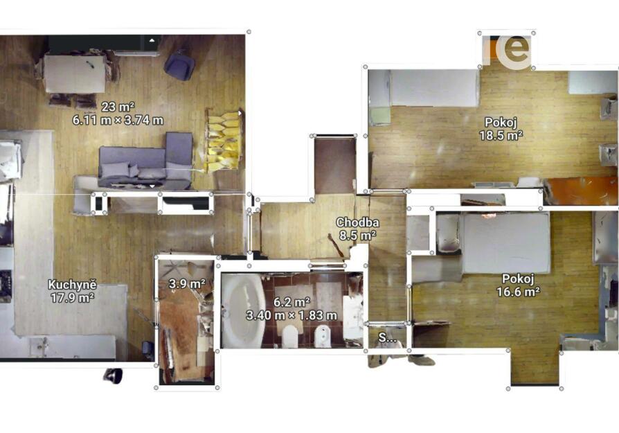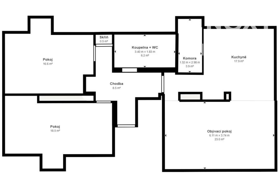 • K bytu náleží sklepní kóje (13 m²)