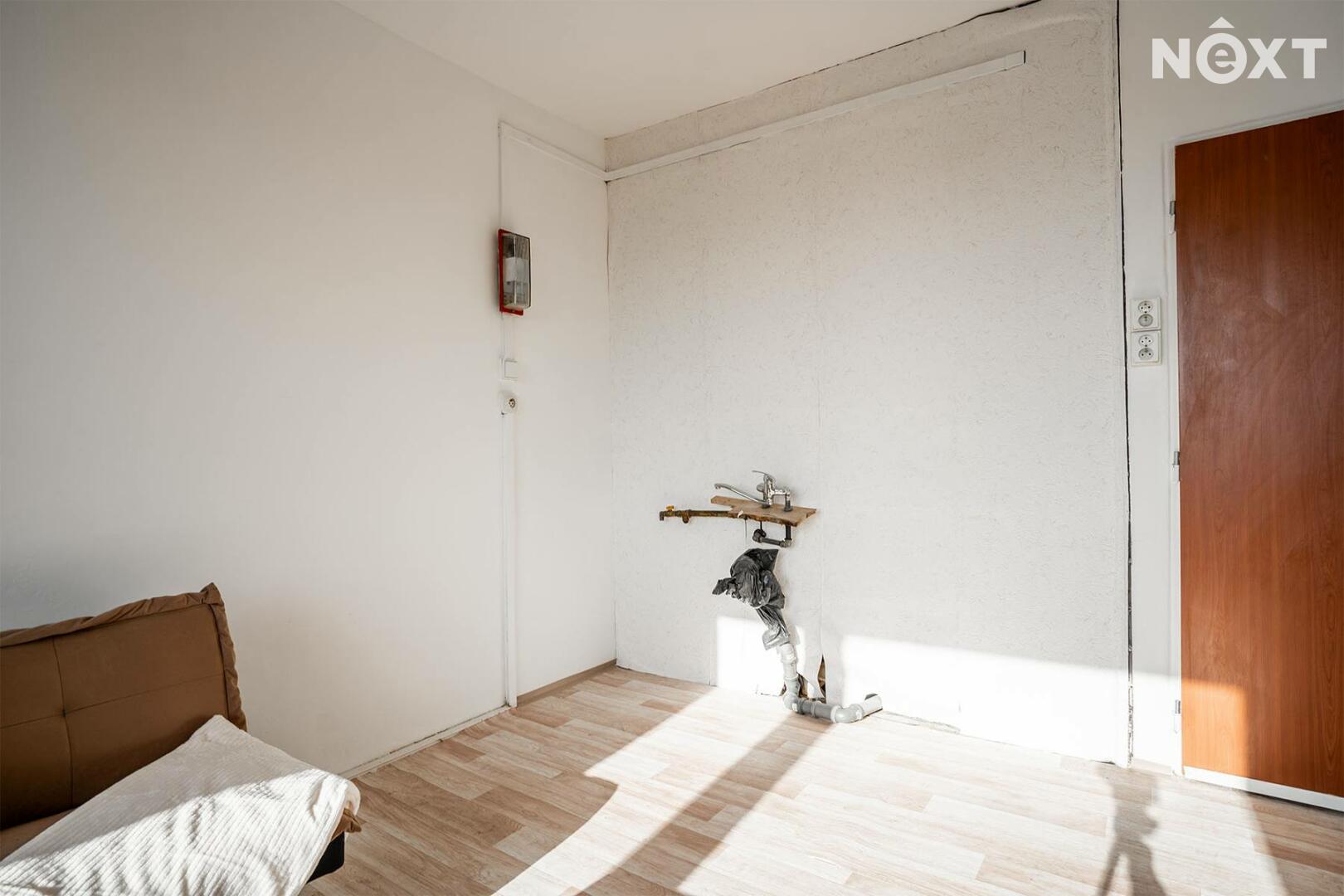 Dispozici tvoří obývací pokoj do kterého je plánovaný kuchyňský kout (momentálně na bytě kuchyň není zřízena), ložnice, předsíň, koupelna se sprchovým koutem a toaletou. Jádro je původní umakartové, kuchyňská linka chybí – nový majitel si tak může prostor upravit přesně podle sebe.