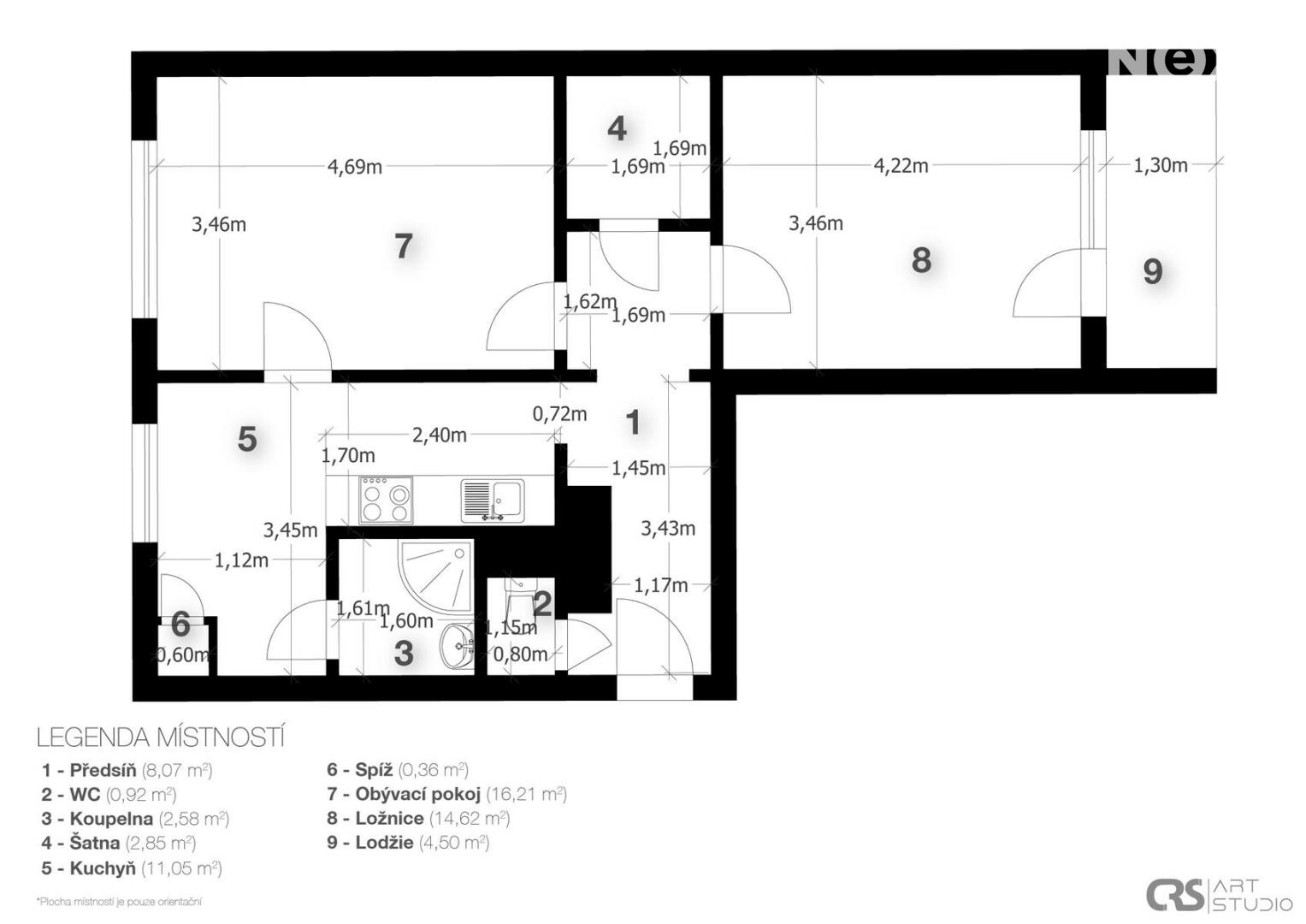 K bytu náleží také prostorná sklepní kóje. Bytový dům je situován v místě s výbornou občanskou vybaveností – v blízkosti se nachází základní a mateřská škola, obchody, venkovní a vnitřní sportoviště, dětská hřiště, bankomat i řeka Morava, ideální pro procházky či sport. Parkování je možné přímo u domu nebo na přilehlých parkovištích, bez parkovacích zón. Zastávka MHD se nachází v těsné blízkosti, vlakové i autobusové nádraží je vzdáleno pouze 5 minut chůze. Nájezd na dálnice D1 se nachází přibližně 5 minut jízdy od domu. Pokud hledáte nové pohodlné bydlení nebo zajímavou investiční příležitost, tento byt je pro vás ideální volbou. Pro komunikaci uvádějte evidenční číslo zakázky N114526.