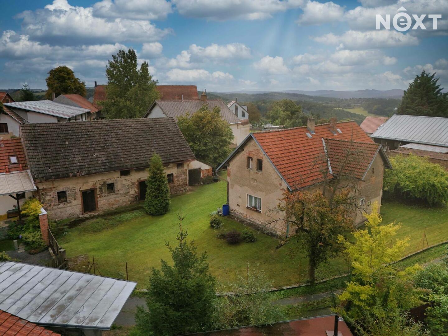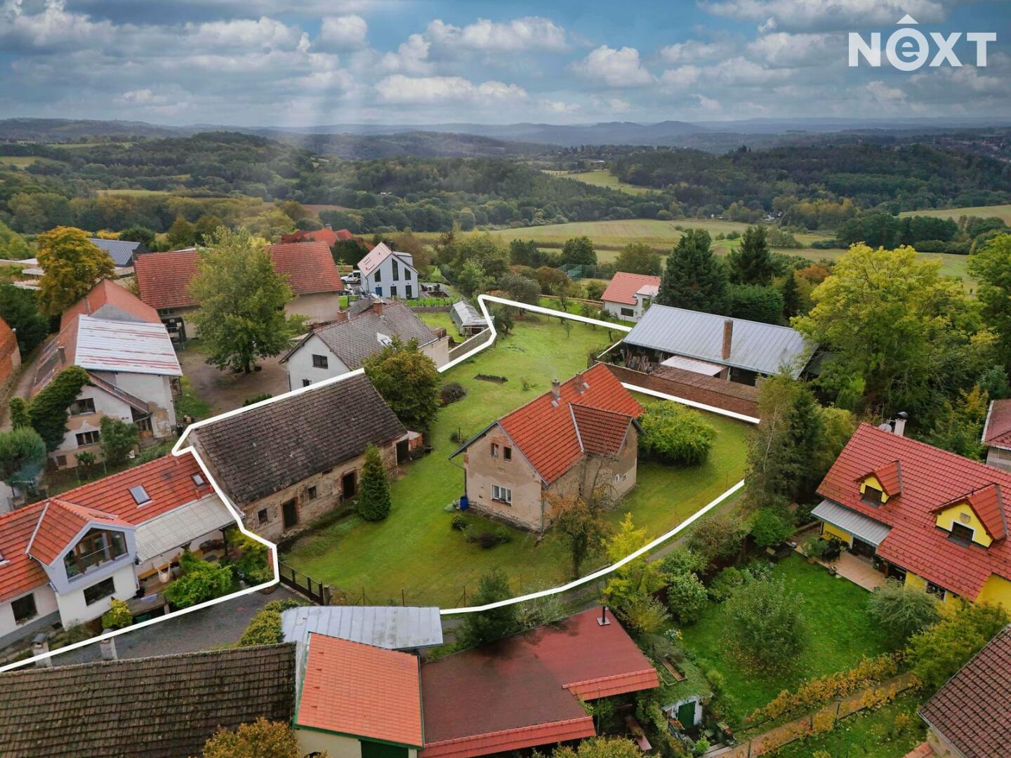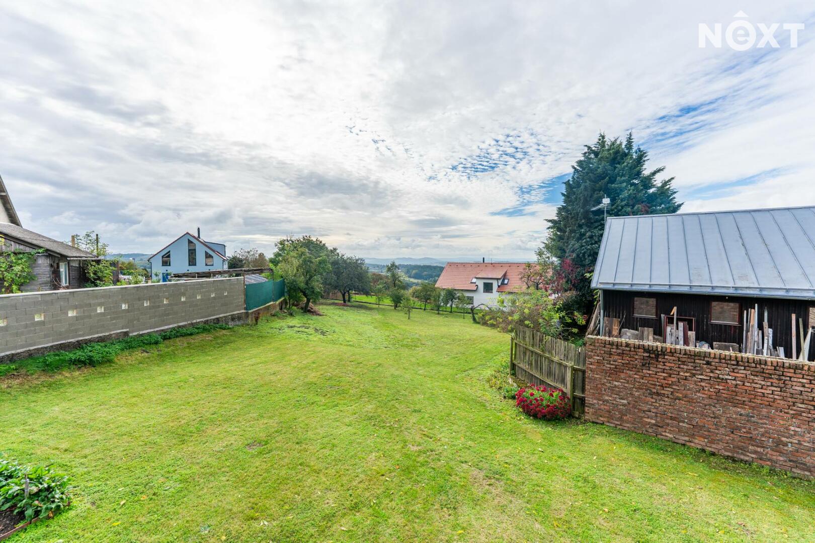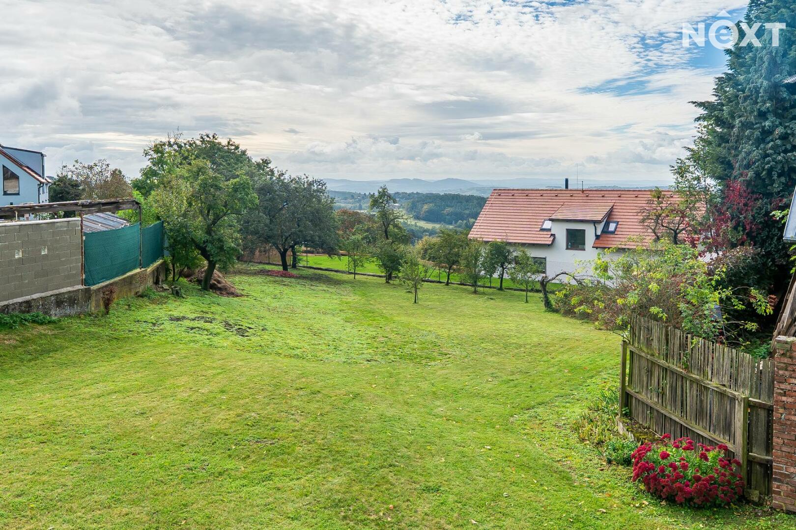 Pozemek je přirozeně členitý a pozvolna se svažuje do krajiny, což dodává místu kouzlo i soukromí. Velká zahradanabízí nádherný výhled a klid, který se dnes hledá jen těžko.