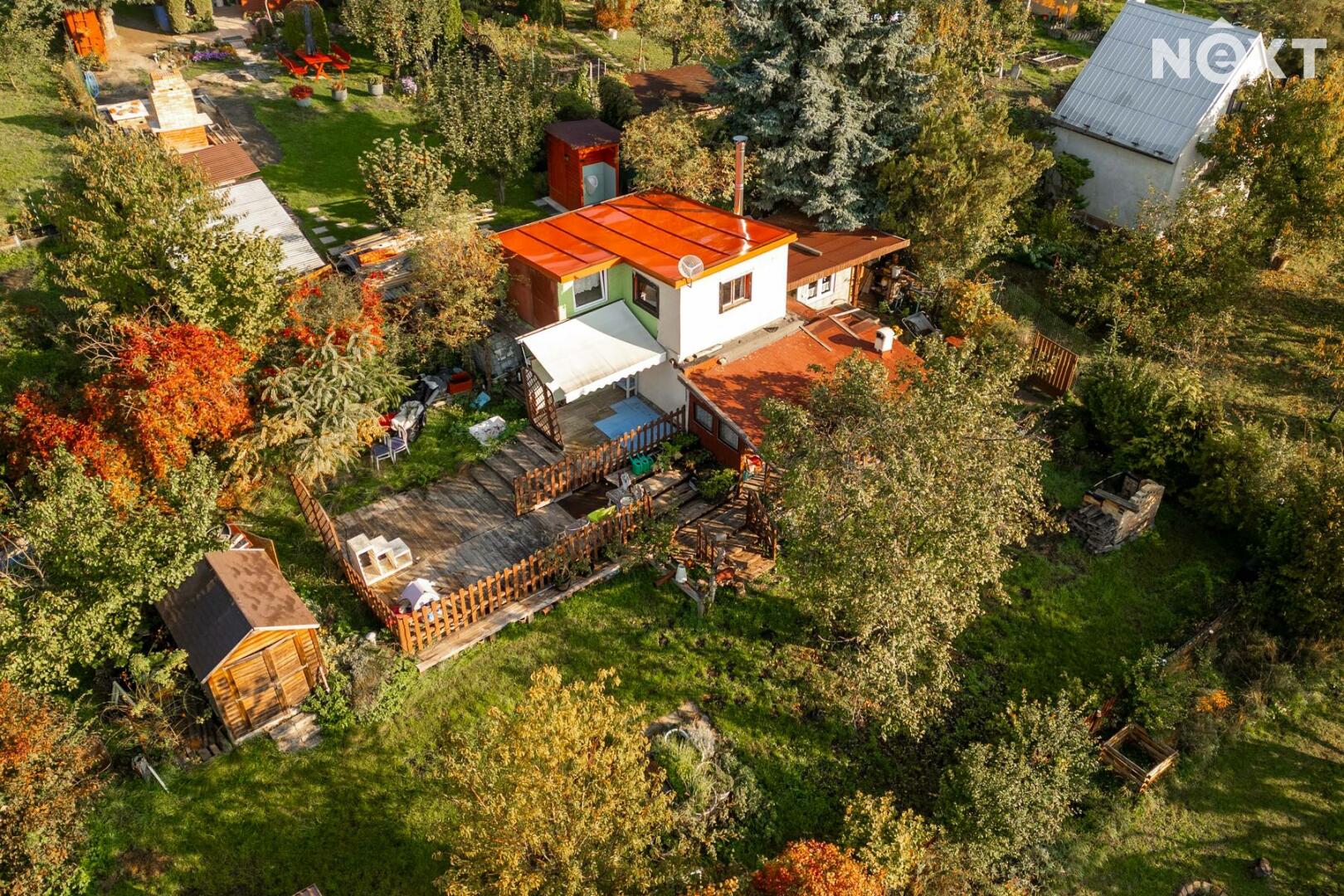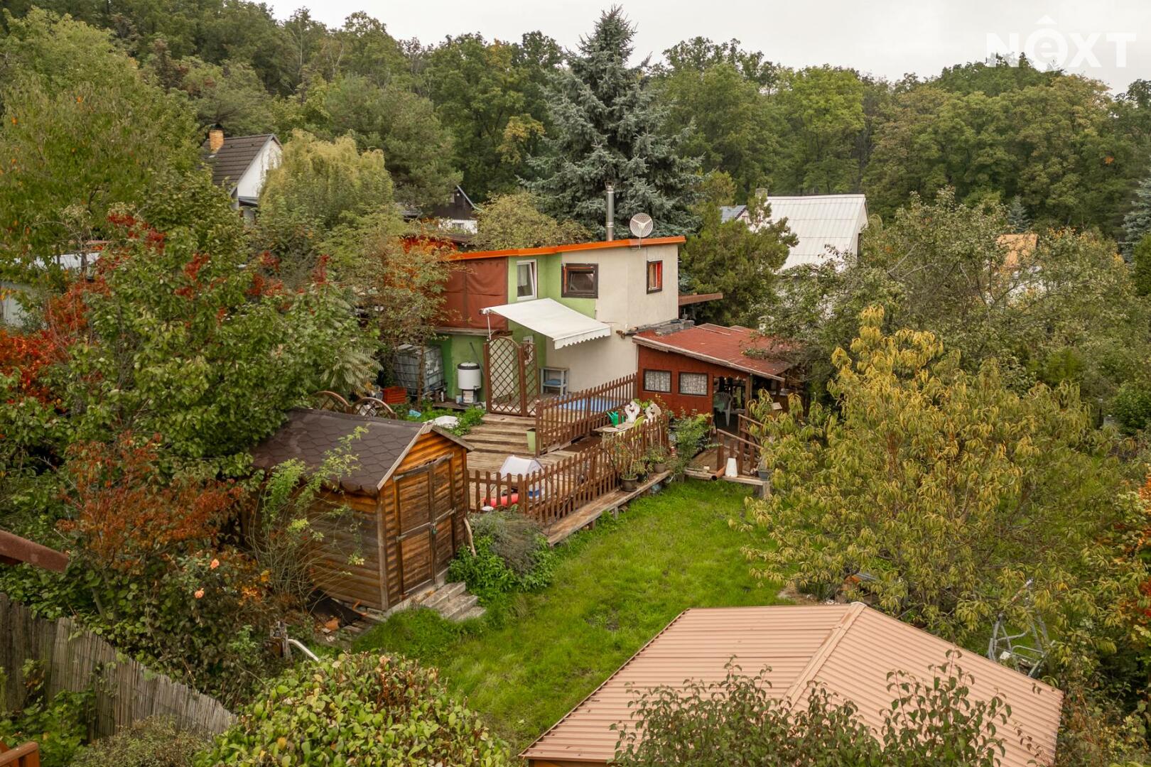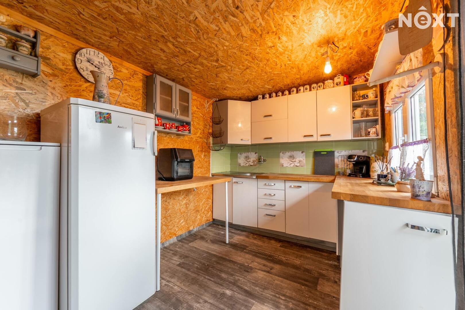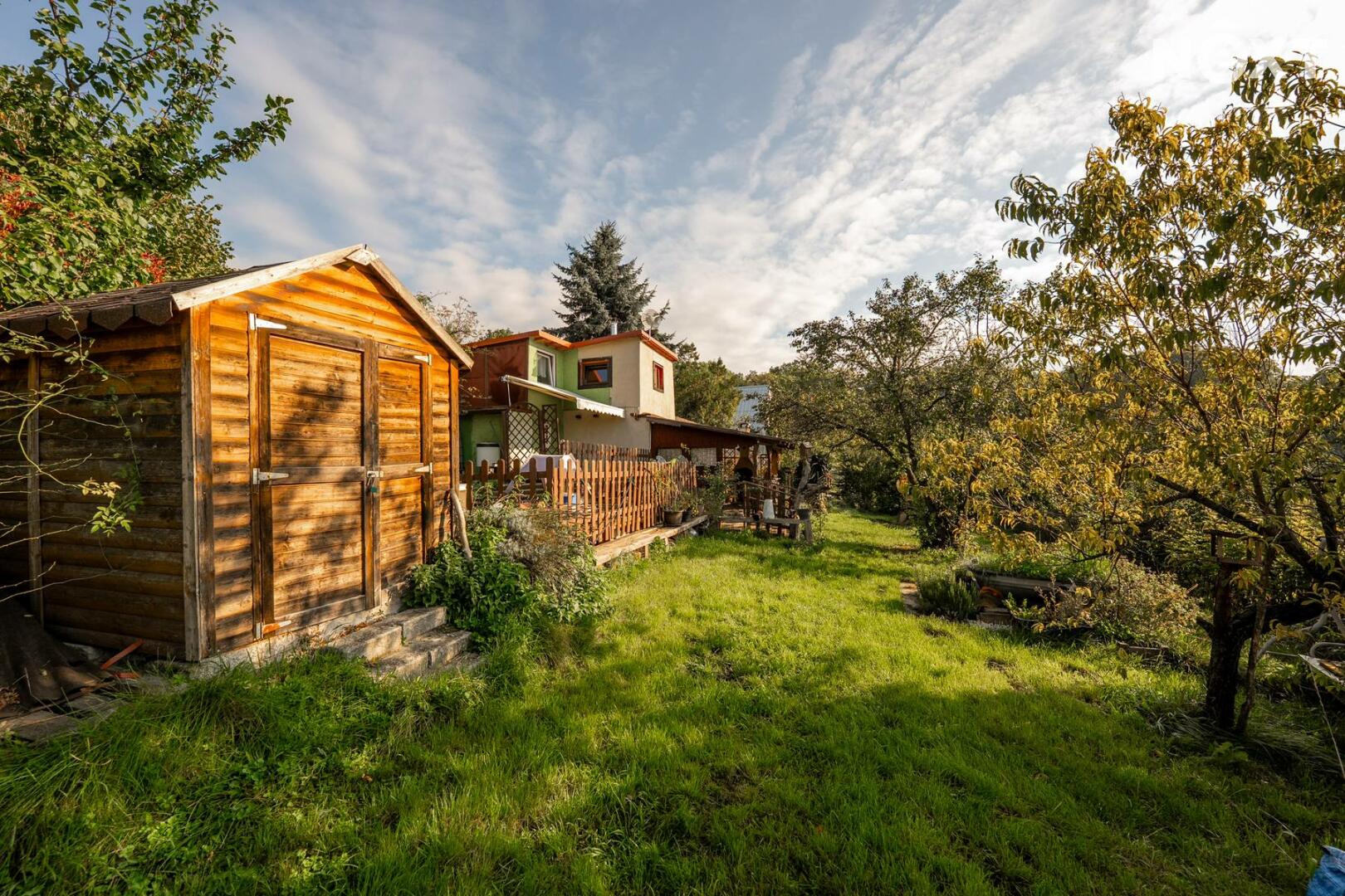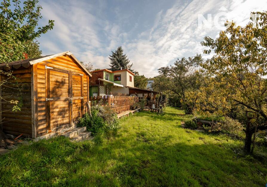 Představuji vám nabídku prodeje chaty v klidné lokalitě Kladno Dubí, osada Kateřina. Chata o zastavené ploše 34 m2, je postavena na pozemku o celkové výměře 376 m2. Je obklopena vzrostlou okrasnou zahradou, ale naleznete zde i místo pro pěstování domácích plodin. Vstup do chaty je z jižně orientované terasy, a to přímo do kuchyně, která je vybavena kuchyňskou sestavou. Z kuchyně se vchází do chodby se schodištěm, ze které je vstup do hlavní obytné místnosti, která je vybavena krbovými kamny a do koupelny, vybavenou sprchovým koutem, umyvadlem a toaletou. Po schodišti vystoupáme do druhého nadzemního podlaží, kde se nachází ložnice a pracovní kout. Na jižní straně chaty je vybudována pergola pro posezení s přáteli s otevřeným krbem a na ni navazují další terasovitě uspořádané terasy, kde je možné umístit vířivku, nebo lehátka pro letní odpočinek. Chata je napojena na elektřinu a sezónní vodovod. Parkování je možné před vstupem do chatové oblasti. Chata se nachází pouhých 10 minut jízdy od centra Kladna. V okolí je řada možností pro trávení volného času v přírodě – v dojezdové vzdálenosti do pěti minut se nachází kladenská cyklostezka a množství lesních stezek. Dobré spojení zajišťuje i MHD, autobusová zastávka je v docházkové vzdálenosti do 15 minut. Pro komunikaci uvádějte evidenční číslo zakázky N114529.