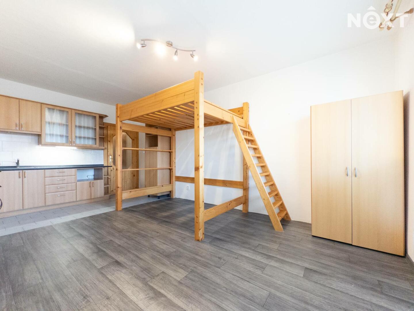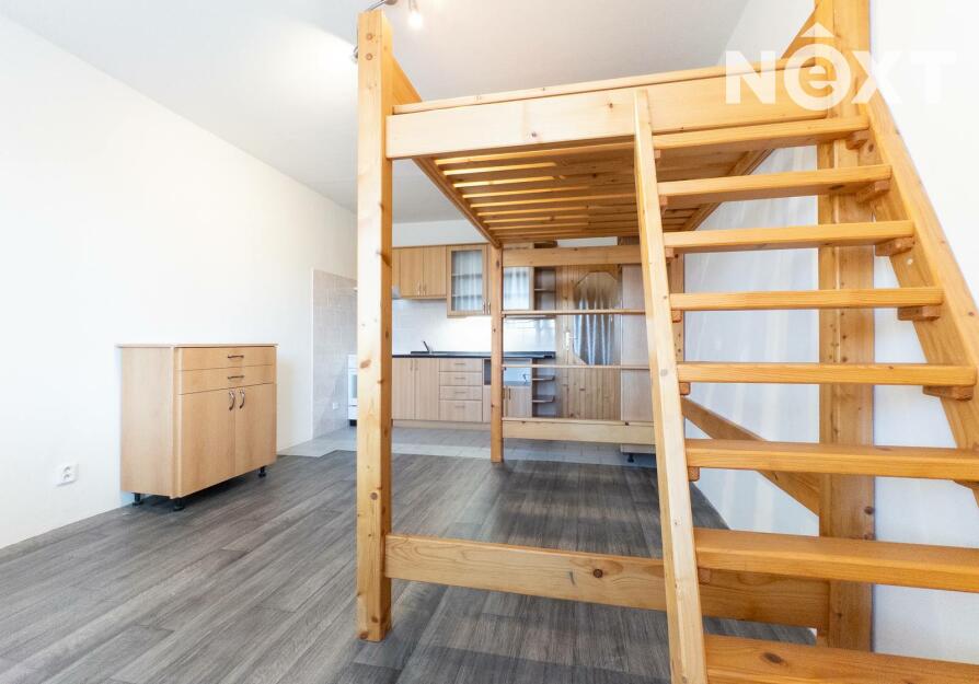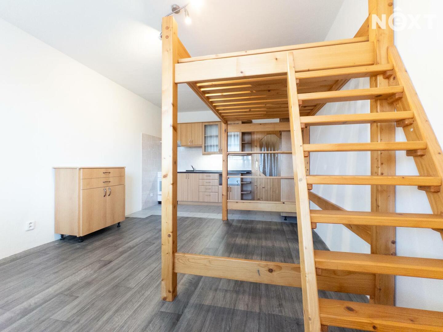 Byt je prakticky řešený a částečně vybavený – kuchyňská linka se základním vybavením, spaní v patře, koupelna se sprchovým koutem a v chodbě vestavěné skříně nabízející dostatek úložného prostoru.
