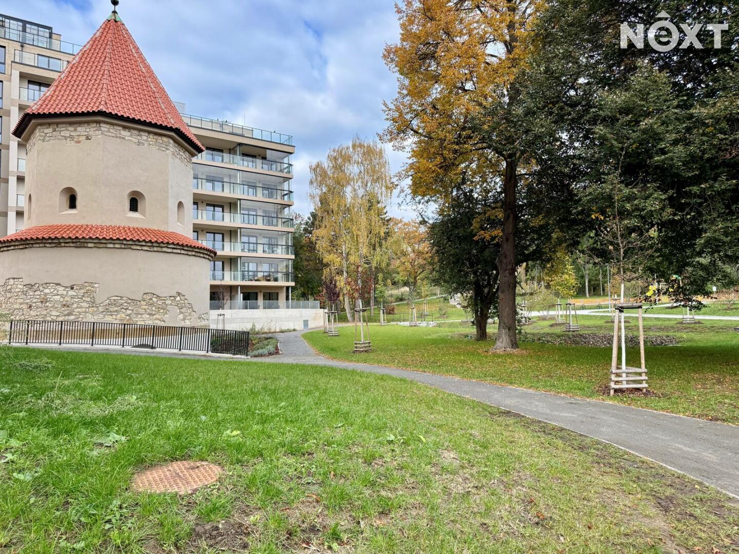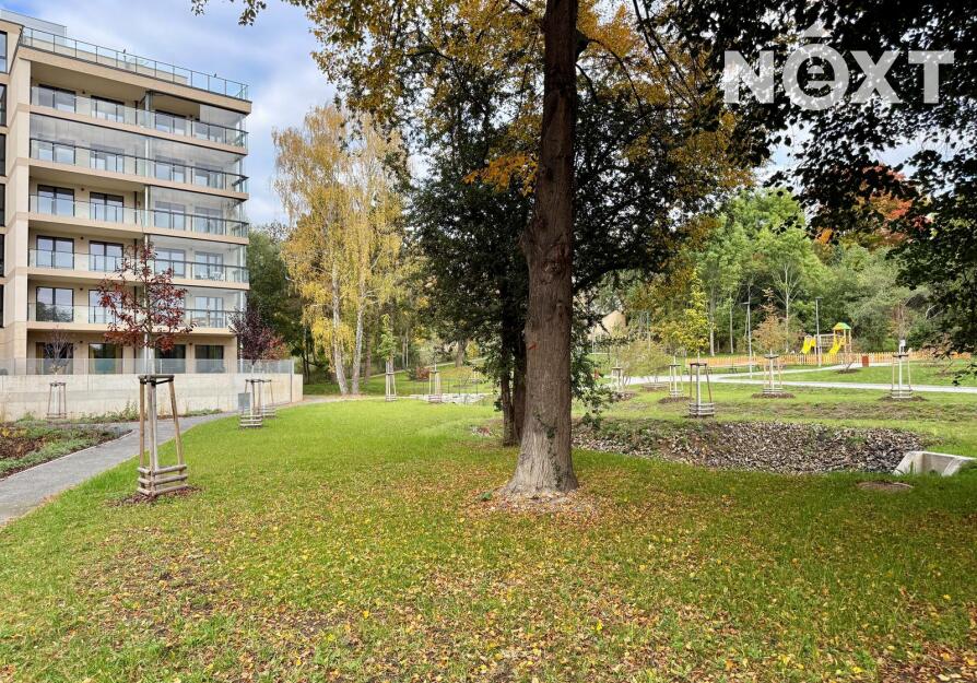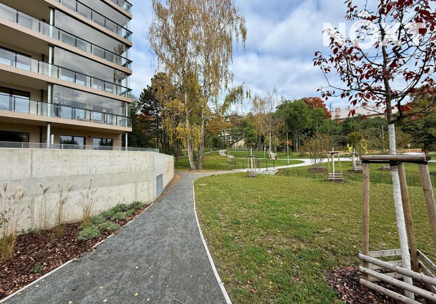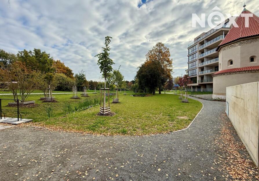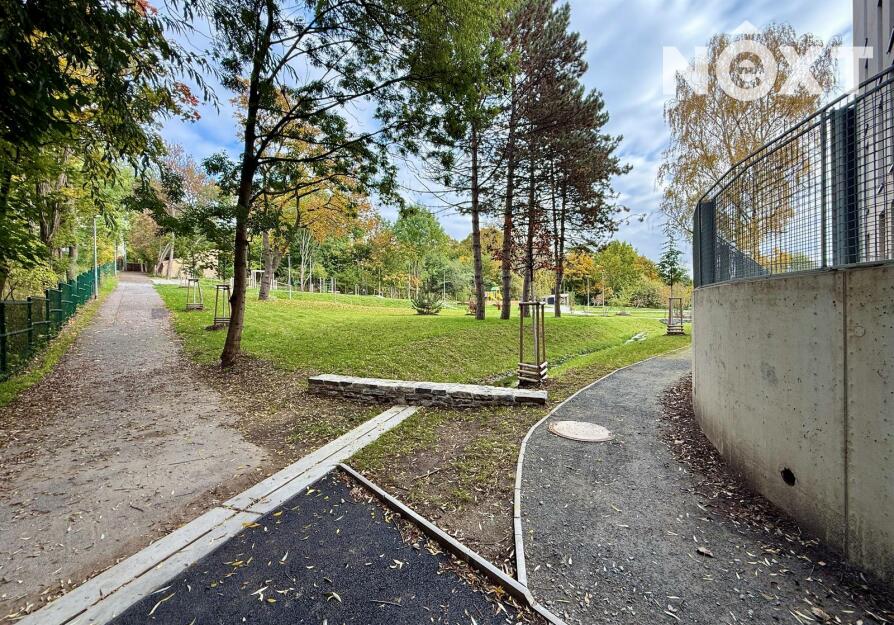 K bytu náleží prostorná terasa s výhledem do parku a opravdu velký sklep o rozměrech 2,2 x 2 m. Od ledna 2025 bude možné pronajmout si také garážové stání.