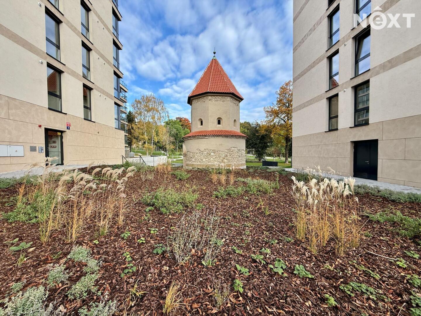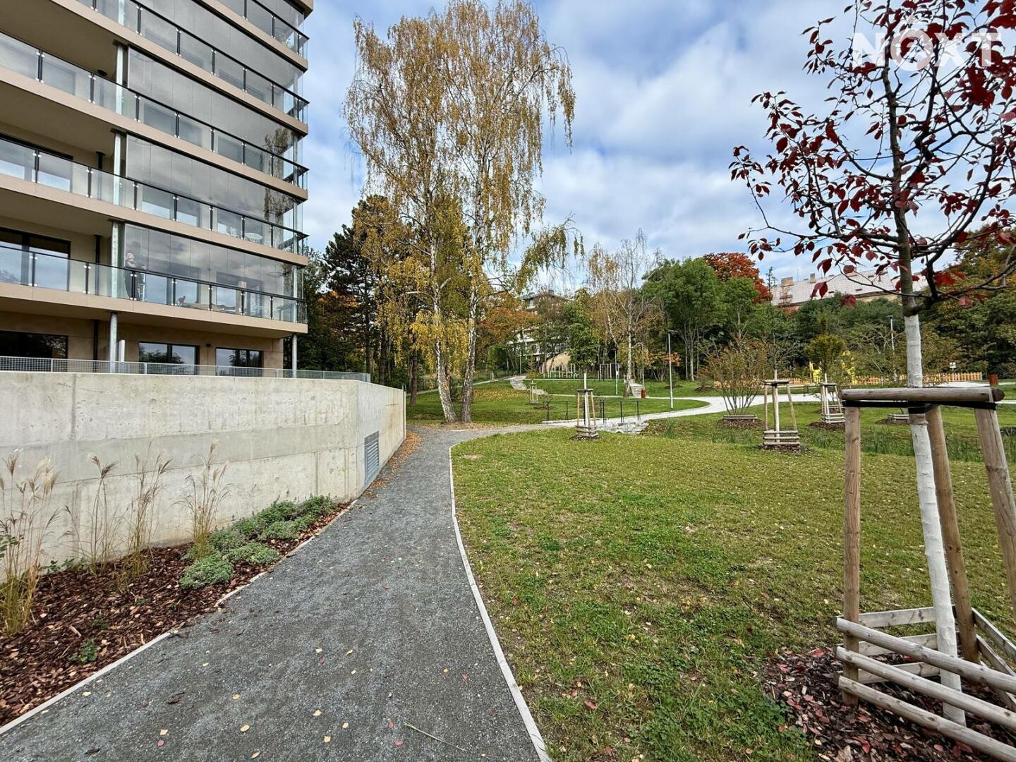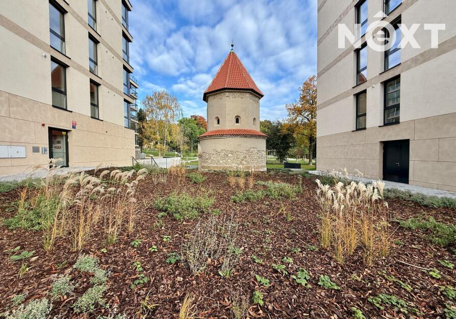 K bytu náleží prostorná terasa s výhledem do parku a opravdu velký sklep o rozměrech 2,2 x 2 m. Od ledna 2025 bude možné pronajmout si také garážové stání.