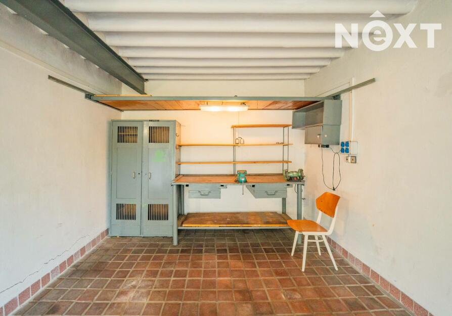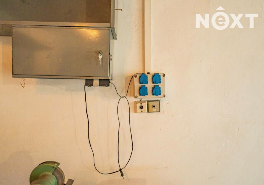 Vrata jsou dřevěná, vybavená dvěma bezpečnostními zámky. Na podlaze je dlažba, která nahrazuje klasický betonový povrch. Součástí vybavení je pracovní ponk se svěrákem a bruska.