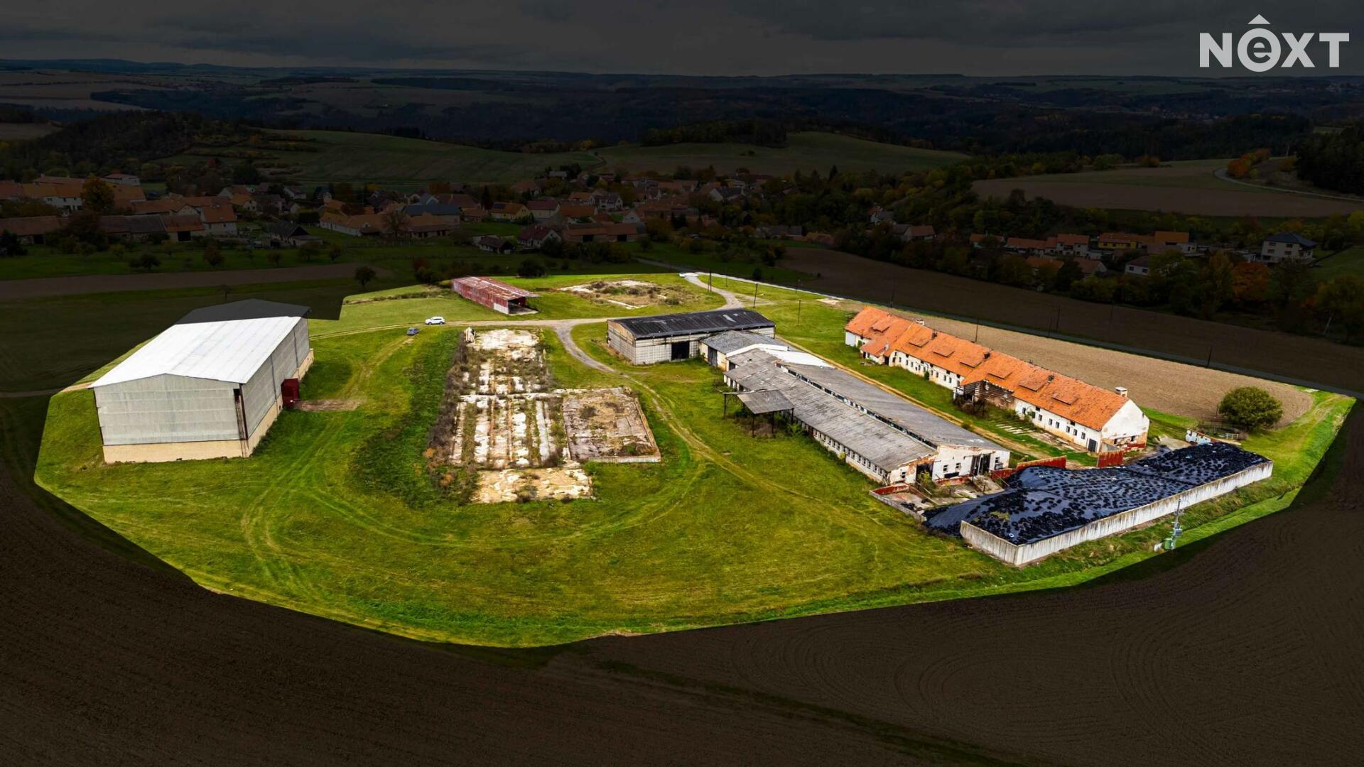 Areál tvoří několik budov původního zemědělského statku. Za zmínku stojí především prostorný seník (55 × 20 m), který je ve velmi dobrém technickém stavu a nabízí široké možnosti dalšího využití – například pro skladování, lehkou výrobu či zázemí při budoucí výstavbě.