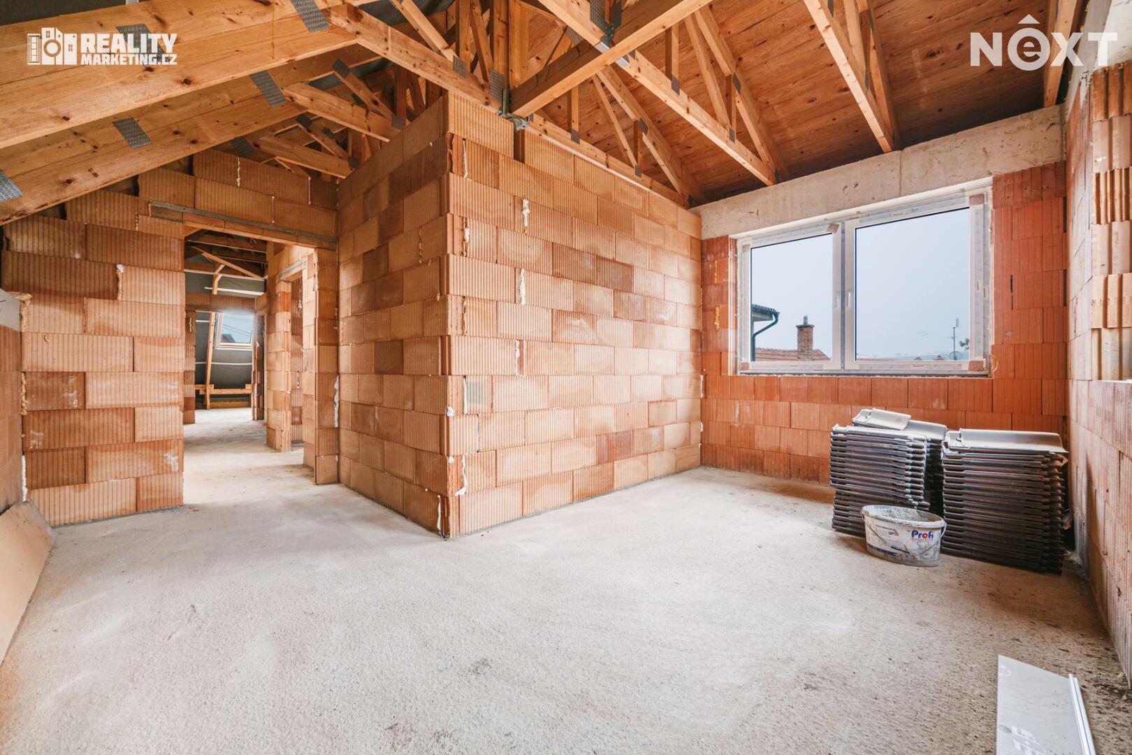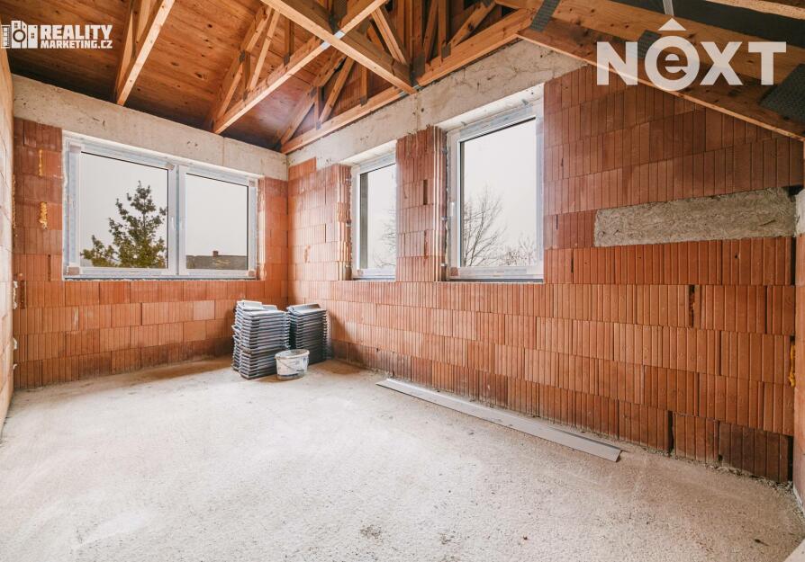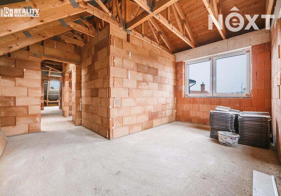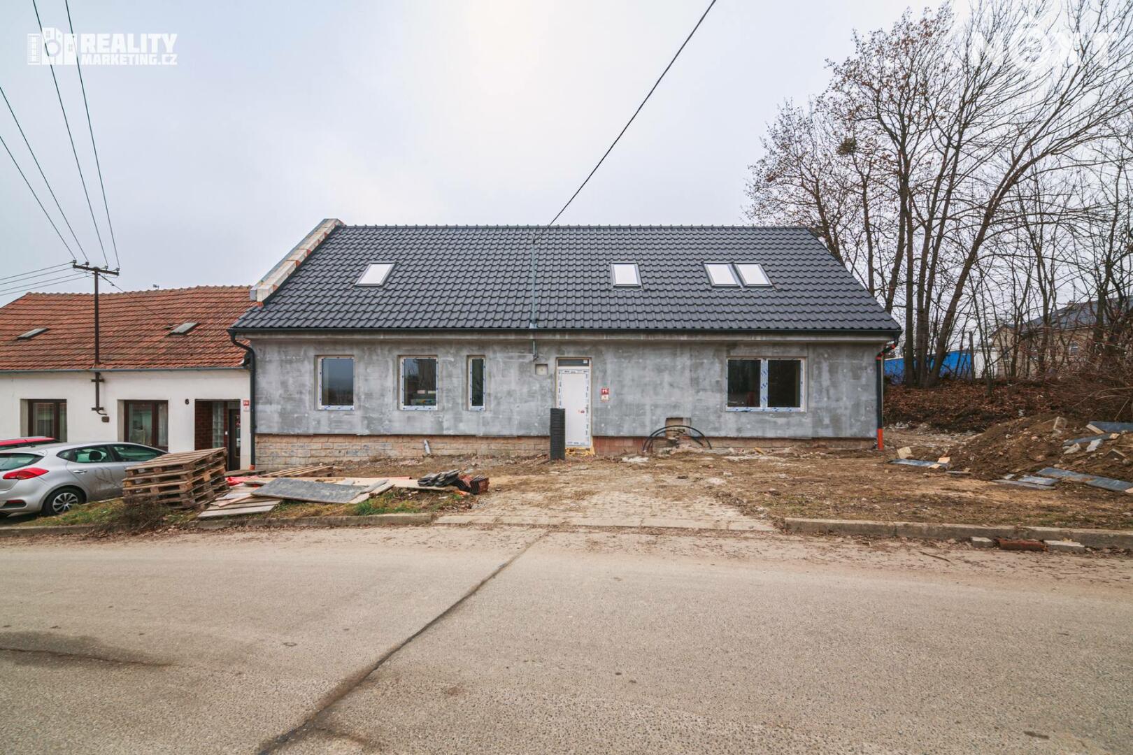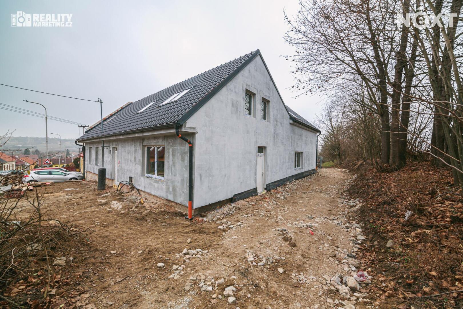 Nabízíme Vám ke koupi byt, který je v tříbytovém rodinném domě. INZEROVANÁ CENA JE ZA KOMPLETNĚ DOKONČENÝ BYT ( bez kuchyňské linky) CENA ZAHRNUJE PROVIZI RK I PRÁVNÍ SERVIS. Byt se nachází v atraktivní lokalitě města Rousínov, jen 20 minut jízdy autem od centra Brna a pouhých 10 minut od Vyškova. Veřejná doprava zajišťuje výborné spojení, díky čemuž je cesta do Brna otázkou 30 minut. Klidná lokalita s veškerou občanskou vybaveností. V ceně jsou dvě soukromá parkovací stání. Interiér bytu je navržen s důrazem na praktičnost a vzdušnost, což se odráží v promyšlené dispozici. Přízemí bytu Vás přivítá prostornou předsíní a elegantním schodištěm. Pod schodištěm se nachází technická místnost. Dále je v přízemí koupelna s WC a sprchovým koutem. Dominantou přízemí je otevřený obytný prostor s kuchyňským koutem. Tento otevřený prostor přes 30 m2 m² je ideální pro rodinné chvíle i setkávání s přáteli. Z obývacího pokoje je pak výstup na terasu 18m2 a privátní zahradu 108m2. Přízemí dále doplňuje pokoj, který můžete využít jako pracovnu nebo hostinský pokoj podle svých potřeb. Podkroví je určeno pro klid a soukromí celé rodiny. Najdete zde prostornou chodbu, která propojuje 3 samostatné neprůchozí pokoje a koupelnu s vanou a wc. Nejmenší pokoj má 12,9 m2 a největší má 16.6 m2. Byt bude dokončen v dubnu 2026, před dokončením se předpokládá personalizace podle kupujícího tzn. kupující si vybírá: podlahy,obklady,dlažby,zařizovací předměty, vnitřní dveře a výmalbu.Energetická náročnost budovy je vedena ve tříde C-úsporná. V ceně 8 490 000,- je již započteno dokončení bytu. Tento byt není jen místem k bydlení – je to domov, kde si můžete splnit své sny o ideálním životě. Kontaktujte nás a přijďte se přesvědčit na vlastní oči. Pro komunikaci uvádějte evidenční číslo zakázky N114639.