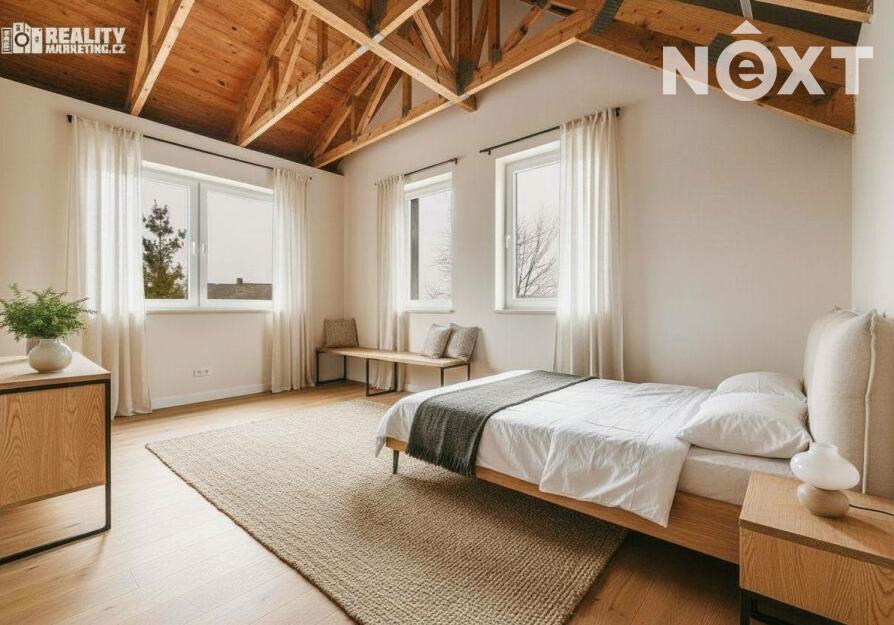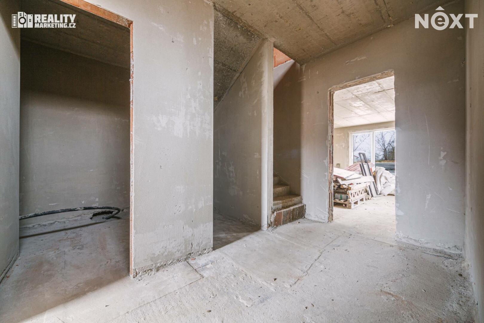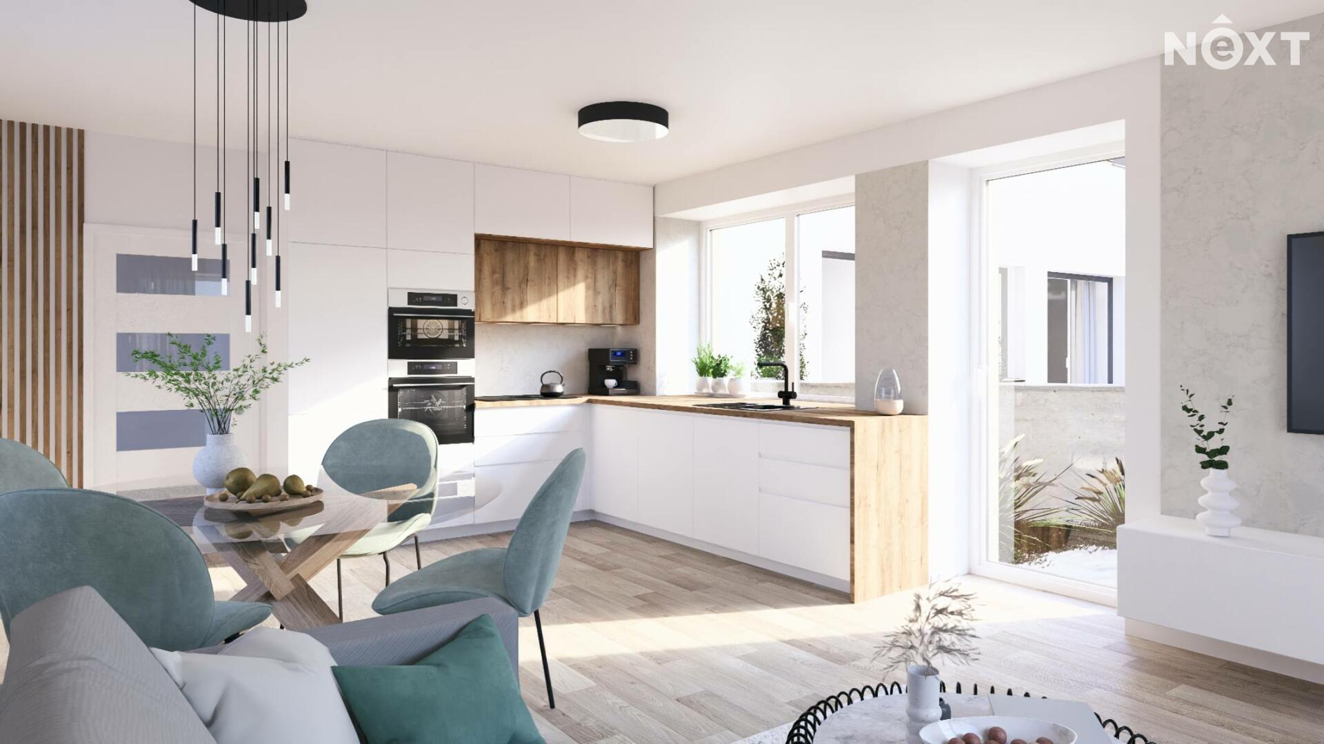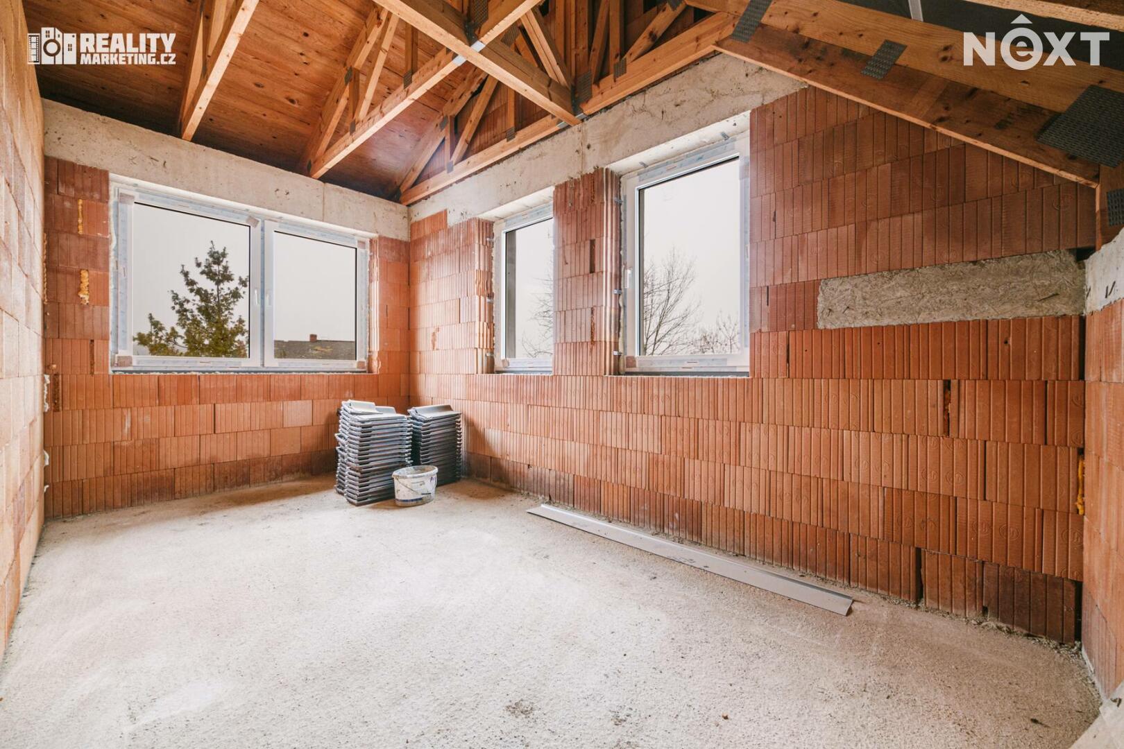 Nabízíme Vám ke koupi byt, který je v tříbytovém rodinném domě. INZEROVANÁ CENA JE ZA KOMPLETNĚ DOKONČENÝ BYT ( bez kuchyňské linky) CENA ZAHRNUJE PROVIZI RK I PRÁVNÍ SERVIS. Byt se nachází v atraktivní lokalitě města Rousínov, jen 20 minut jízdy autem od centra Brna a pouhých 10 minut od Vyškova. Veřejná doprava zajišťuje výborné spojení, díky čemuž je cesta do Brna otázkou 30 minut. Klidná lokalita s veškerou občanskou vybaveností. V ceně jsou dvě soukromá parkovací stání. Interiér bytu je navržen s důrazem na praktičnost a vzdušnost, což se odráží v promyšlené dispozici. Přízemí bytu Vás přivítá prostornou předsíní a elegantním schodištěm. Pod schodištěm se nachází technická místnost. Dále je v přízemí koupelna s WC a sprchovým koutem. Dominantou přízemí je otevřený obytný prostor s kuchyňským koutem. Tento otevřený prostor přes 30 m2 m² je ideální pro rodinné chvíle i setkávání s přáteli. Z obývacího pokoje je pak výstup na terasu 18m2 a privátní zahradu 108m2. Přízemí dále doplňuje pokoj, který můžete využít jako pracovnu nebo hostinský pokoj podle svých potřeb. Podkroví je určeno pro klid a soukromí celé rodiny. Najdete zde prostornou chodbu, která propojuje 3 samostatné neprůchozí pokoje a koupelnu s vanou a wc. Nejmenší pokoj má 12,9 m2 a největší má 16.6 m2. Byt bude dokončen v dubnu 2026, před dokončením se předpokládá personalizace podle kupujícího tzn. kupující si vybírá: podlahy,obklady,dlažby,zařizovací předměty, vnitřní dveře a výmalbu.Energetická náročnost budovy je vedena ve tříde C-úsporná. V ceně 8 490 000,- je již započteno dokončení bytu. Tento byt není jen místem k bydlení – je to domov, kde si můžete splnit své sny o ideálním životě. Kontaktujte nás a přijďte se přesvědčit na vlastní oči. Pro komunikaci uvádějte evidenční číslo zakázky N114639.