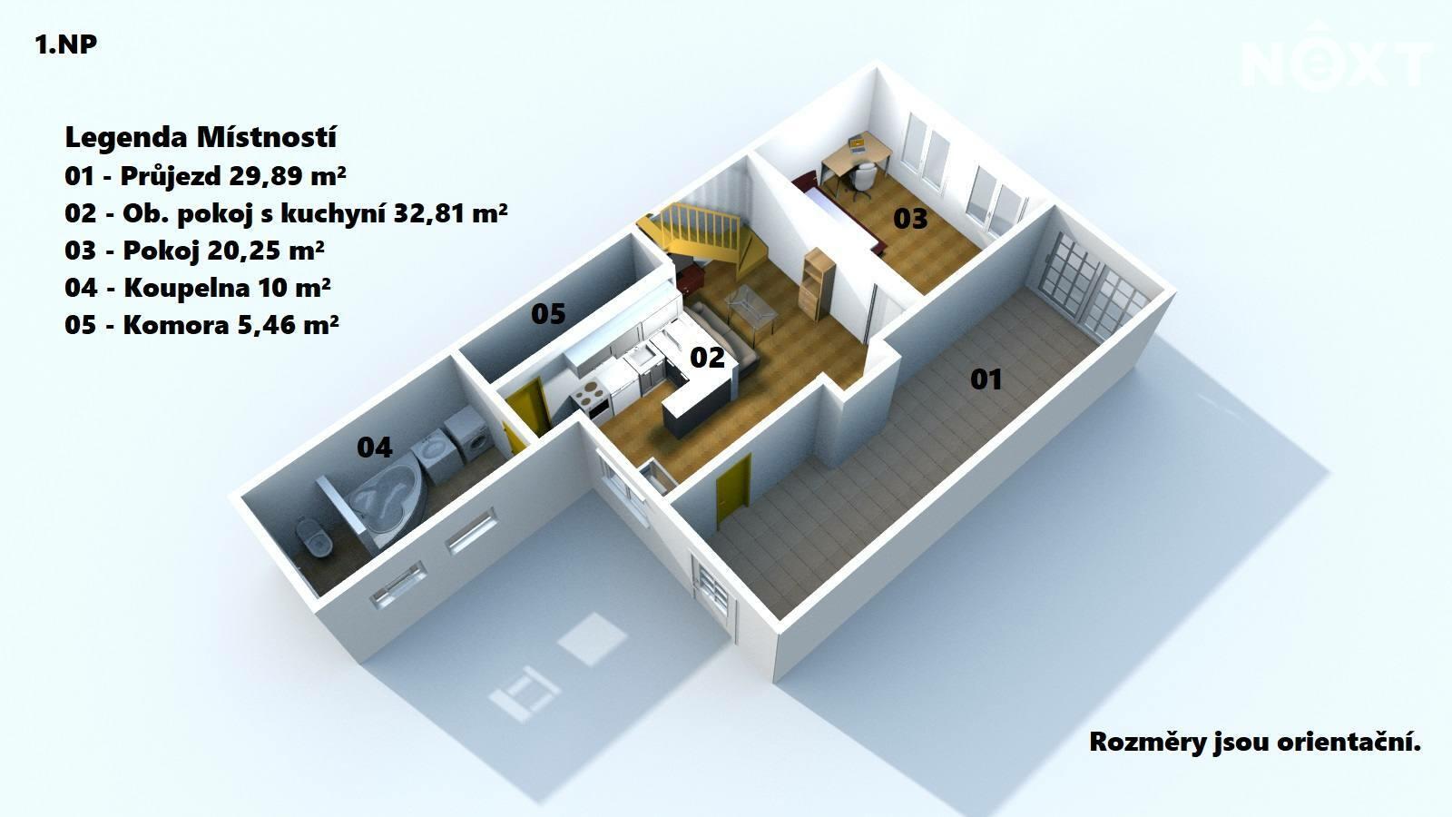 Všem, kteří hledají příjemné bydlení nedaleko od Brna, exkluzivně nabízíme ke koupi řadový rodinný dům v obci Telnice. Přízemní dům s částečně obytným podkrovím prošel v letech 2008 celkovou rekonstrukcí, která mimo jiné zahrnovala kompletní výměnu krovů a střešní krytiny. Vstup do domu je přes průjezd (29,89 m2), v přízemí najdete obývací pokoj s kuchyňským koutem (32,81 m2), neprůchozí pokoj (20,25 m2), komoru (5,46 m2) se vstupem do sklepa, prostornou koupelnu (10 m2) s vanou, umyvadlem, toaletou a přípravou na sprchovací kout. Po schodišti z obývacího pokoje je vstup do podkroví, kde se nachází samostatný pokoj (12,27 m2). Ostatní část podkroví je připravena pro případné vybudování dalších obytných prostor. Na dvoře Vás mile překvapí venkovní kuchyně s příjemným posezením a na ni navazující dílna. Ovšem největším bonusem je rovinatá, kompletně oplocená zahrada poskytující pohodu a dostatek soukromí. Ústřední vytápění zajišťuje kotel na zemní plyn, který obstarává i ohřev teplé užitkové vody. Další alternativou vytápění jsou nová výkonná krbová kamna na dřevo v obývacím pokoji. Parkování pro jedno auto se nachází přímo před domem. Do dvou roků by na této ulici měla být vybudována i další místa k parkování. Umístění obce nabízí nejen dobrou dostupnost do Brna, ale přímo v obci se nachází - obchody, lékaři, MŠ a ZŠ (1. stupeň). Průkaz energetické náročnosti nebyl dodán, z toho důvodu je uvedena třída G. Pouze u nás vám zajistíme moderní financování až na 30 let, bez ohledu na věk a prokazování příjmů, či nutnosti předkládat daňové přiznání (u podnikatelů). Zeptejte se nás a bydlete chytře! Při osobní prohlídce nejlépe posoudíte, zda je tento dům vhodný právě pro Vaše nové bydlení. Pro více informací nebo sjednání prohlídky kontaktujte realitního makléře.