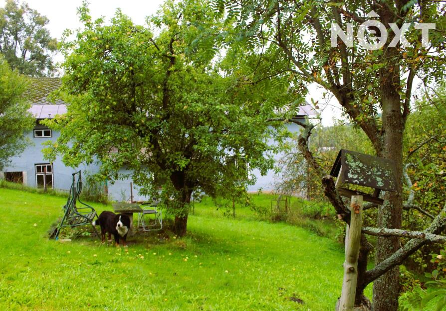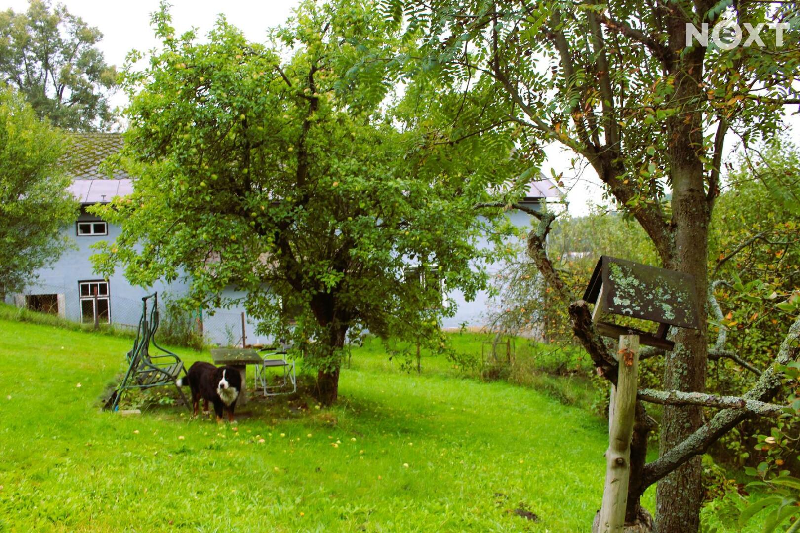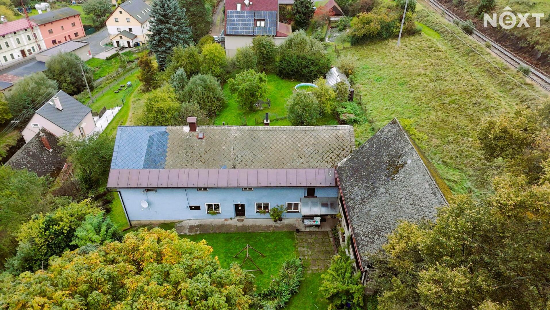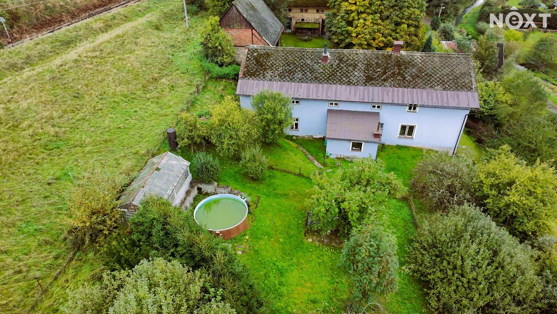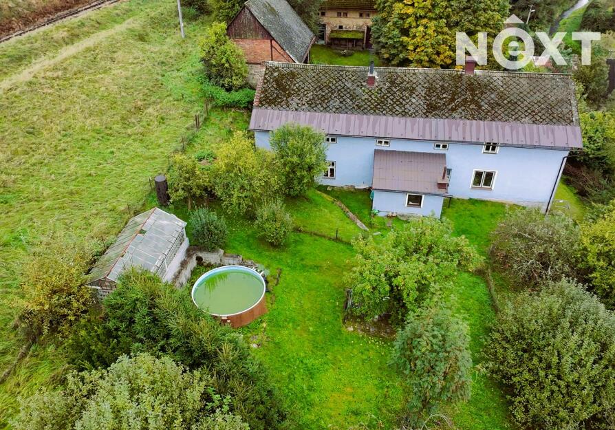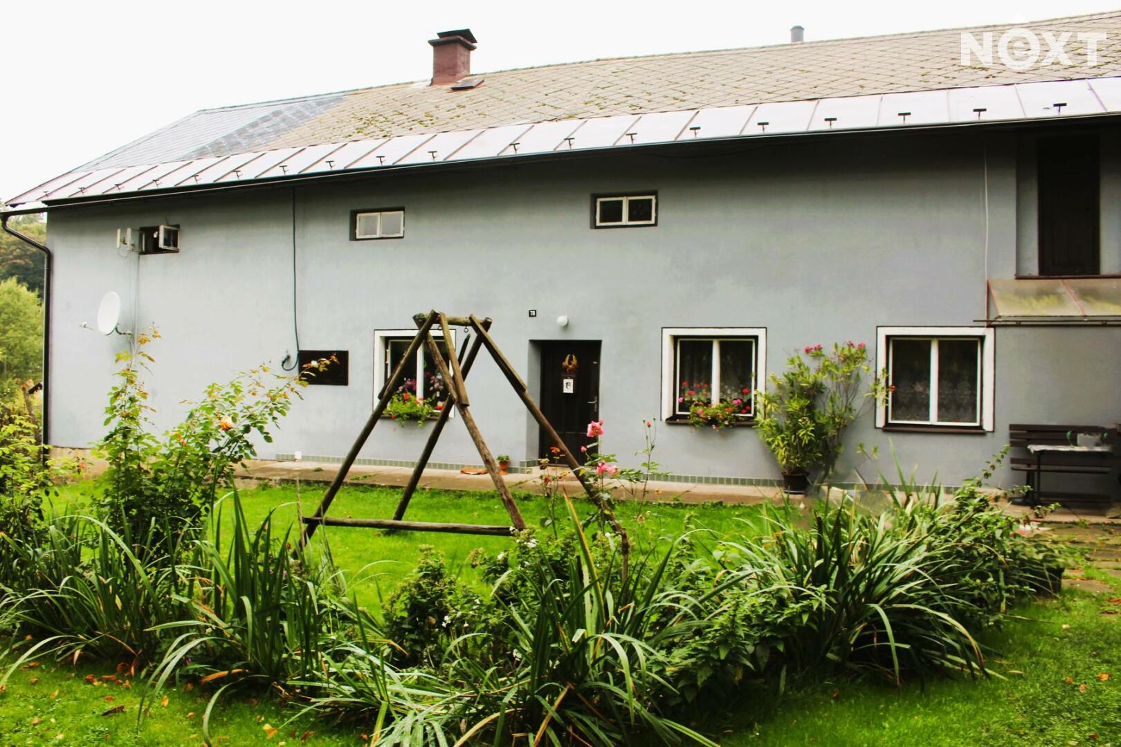 Dům má dvě nadzemní podlaží. Dům je dispozičně řešen jako dvě bytové jednotky. První je o velikosti 5+1 a druhá o velikosti 2+kk. V přízemí se nachází jedna místnost s WC. Pro každou jednotku je pak samostatná koupelnu s vanou. Rozvody vody byly v roce 2014 předělány do plastu. Sklep, který se nachází pod dřevníkem je umístěn ve skále, a tak udržuje stálou teplotu celoročně. Součástí nabídky prodeje nemovitosti je také velmi prostorná stodola, sloužící jako dílna a garáž. Za stodolou se nachází prostory, třeba pro chov drůbeže. Zahrada domu se rozléhá na 2 539 m2.