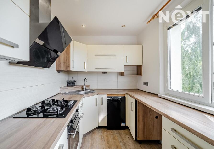 Byt nezařízen vyjma rozměrné vestavěné skříně v předsíni a dále v kuchyni kombinovanému sporáku spolu s myčkou. V kuchyni specielní prostor pro lednici.