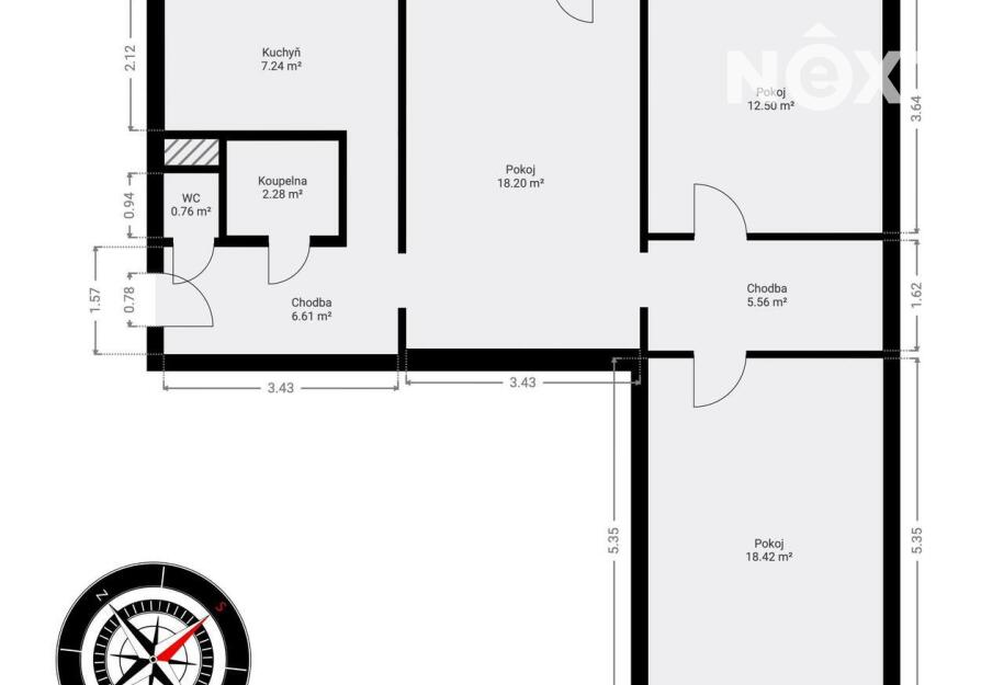 Pronájem pěkného bytu 3+1 s balkonem, o rozměru nyní 74 m2 obytné plochy v roce 2026 díky realizaci zvětšení balkonů 79 m2, v osobním vlastnictví, v ulici 17.listopadu, v městě Zábřeh.