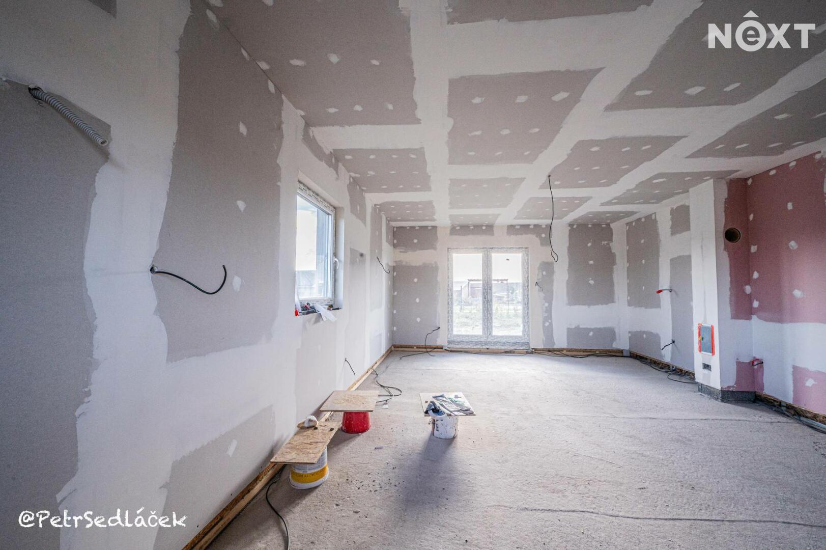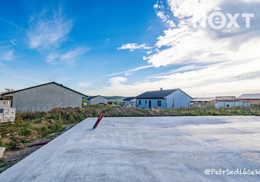Aktuálně na pozemku stojí základová deska a nosné konstrukce a profily samotného domu jsou nachystané na smontování, po podpisu kupní smlouvy na nákup pozemku s vámi developer podepíše smlouvu o dílo na dokončení nemovitosti, následné předání do 7 měsíců.