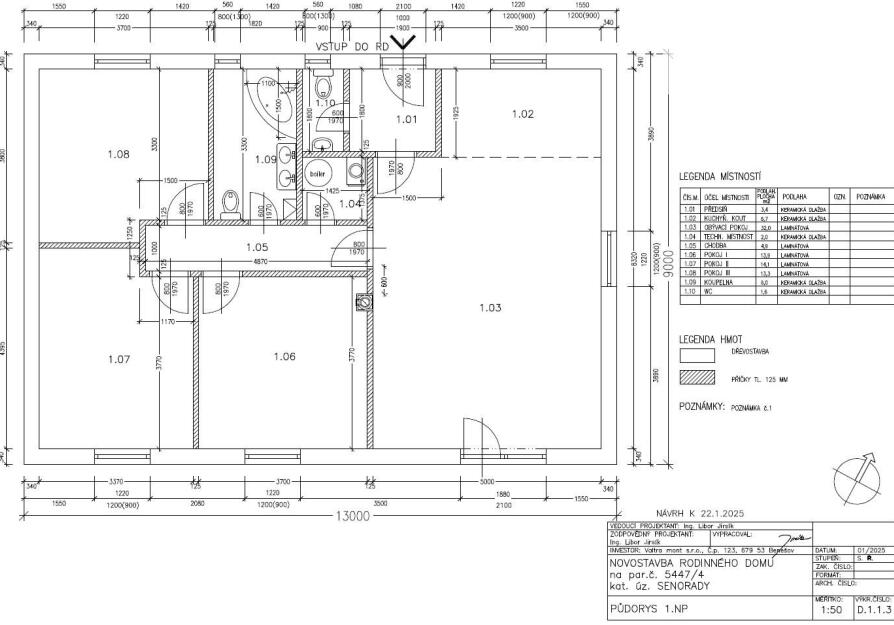 K dispozici máme typ domu BUNGALOV ve fázi stavba s venkovním dokončením. Bungalov 4+kk šatna, o velikosti 98 m2 poctivé užitné plochy. Zastavěná plocha 12,94 * 9 m 116,5 m2. Náklady na vytápění cca 20 000,- Kč/rok v dnešních cenách.
