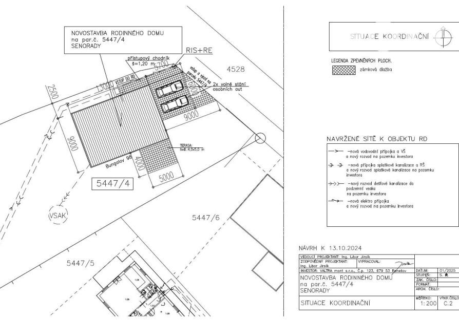 Domy budou napojeny na obecní splaškovou kanalizaci, vodovodní řád a elektřinu. Dešťová kanalizace bude řešena vsakem na pozemek. Předání staveb by mělo proběhnout do 6 měsíců od nákupu pozemku.