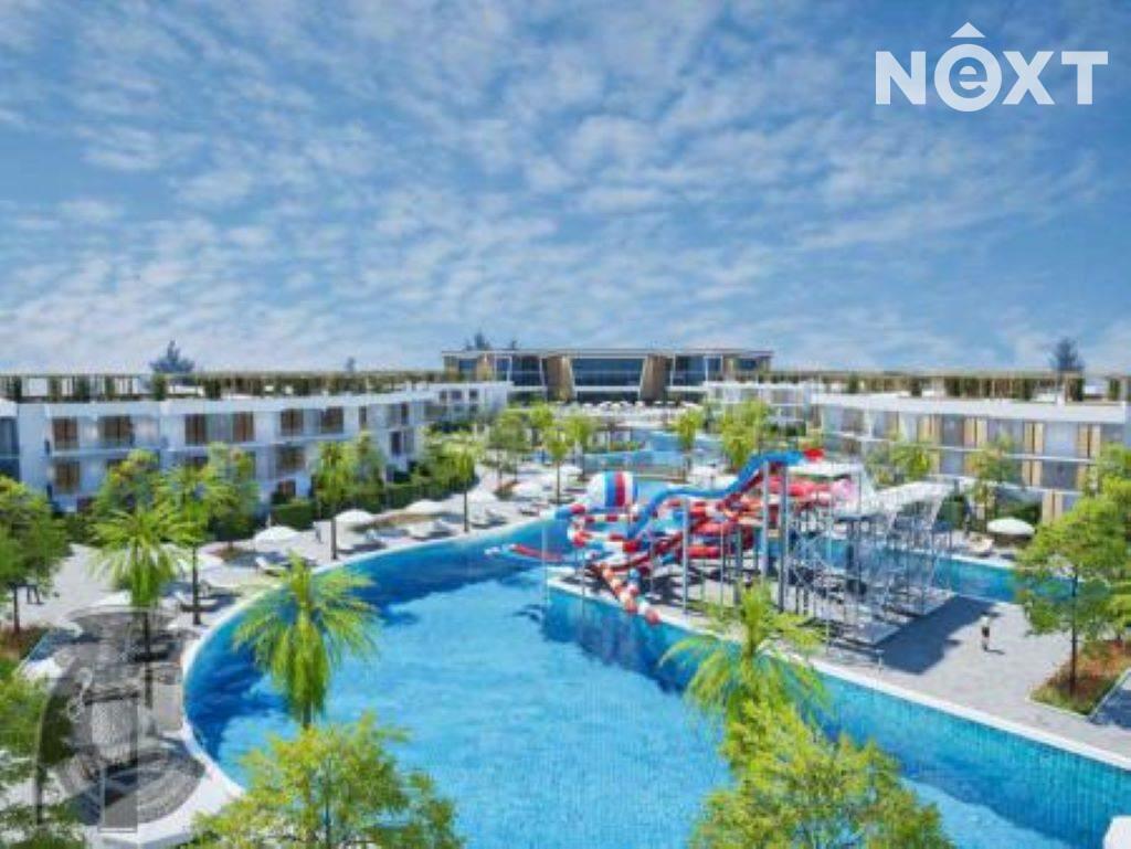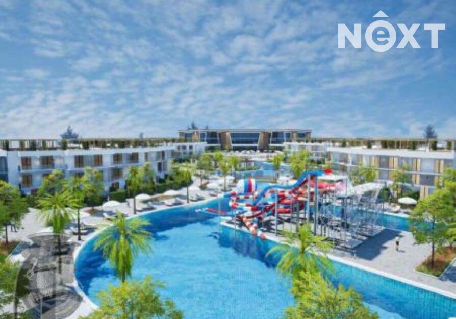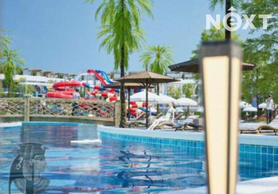 Moderní apartmánovýresort umístěný v zahradě s několika bazény, aqua parkem, moderně řešený interiér, bazénové bary, velké nákupní středisko s obchody a restauracemi.