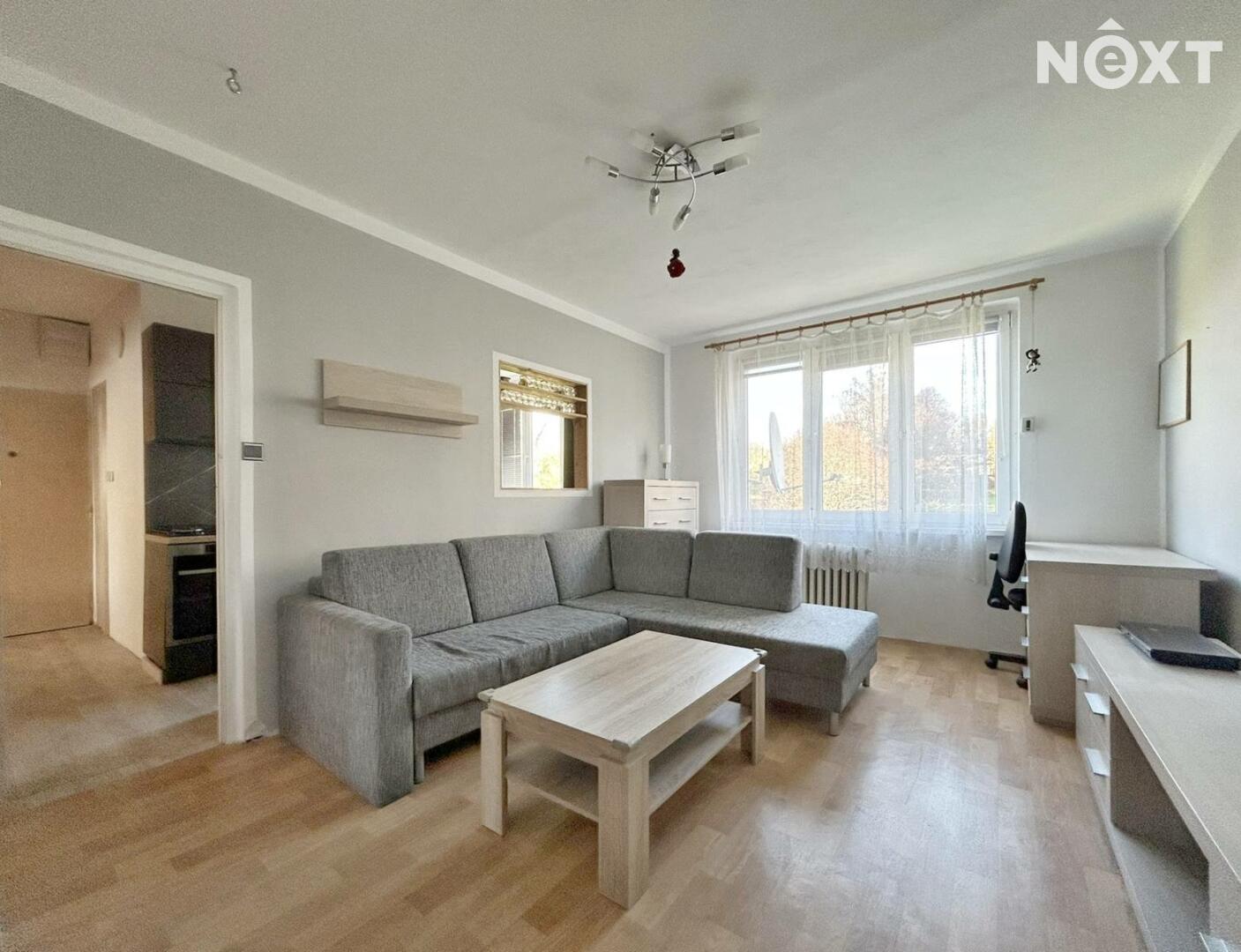 Byt prošel rekonstrukcí a k pronájmu jej nabízíme částečně zařízený (zůstanou veškeré elektrospotřebiče viz foto, nábytek v předsíni a kuchyni, nábytek v ložnici a gauč v obýváku), k nastěhování od 1.11.2025. K bytu náleží sklep. V domě kamerový systém.