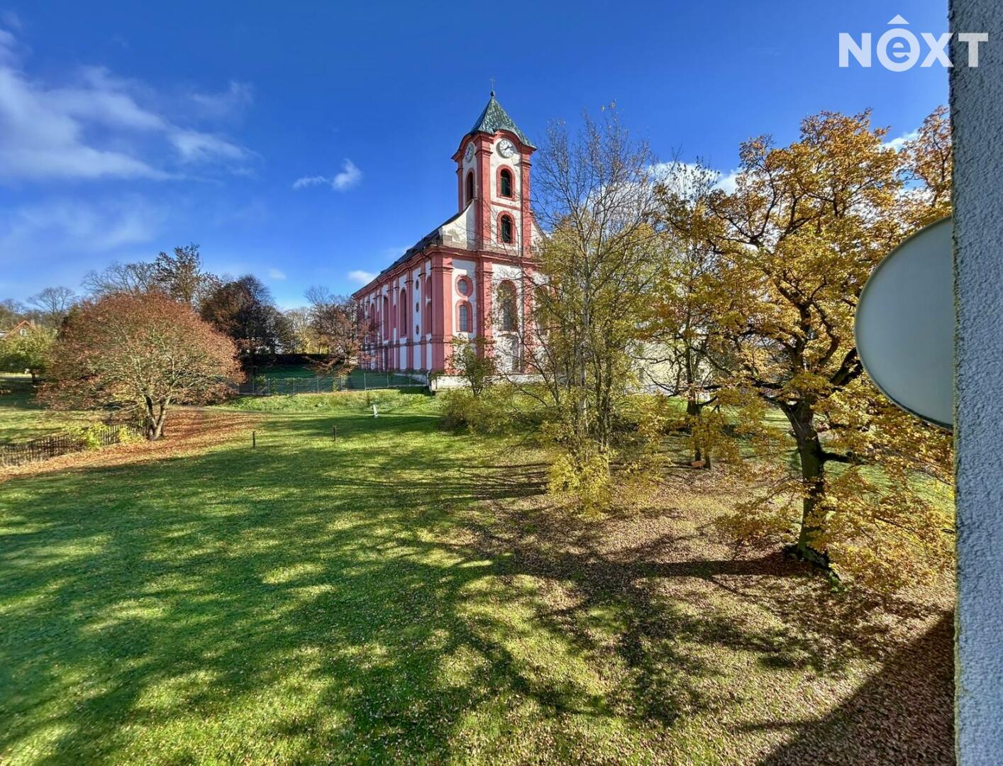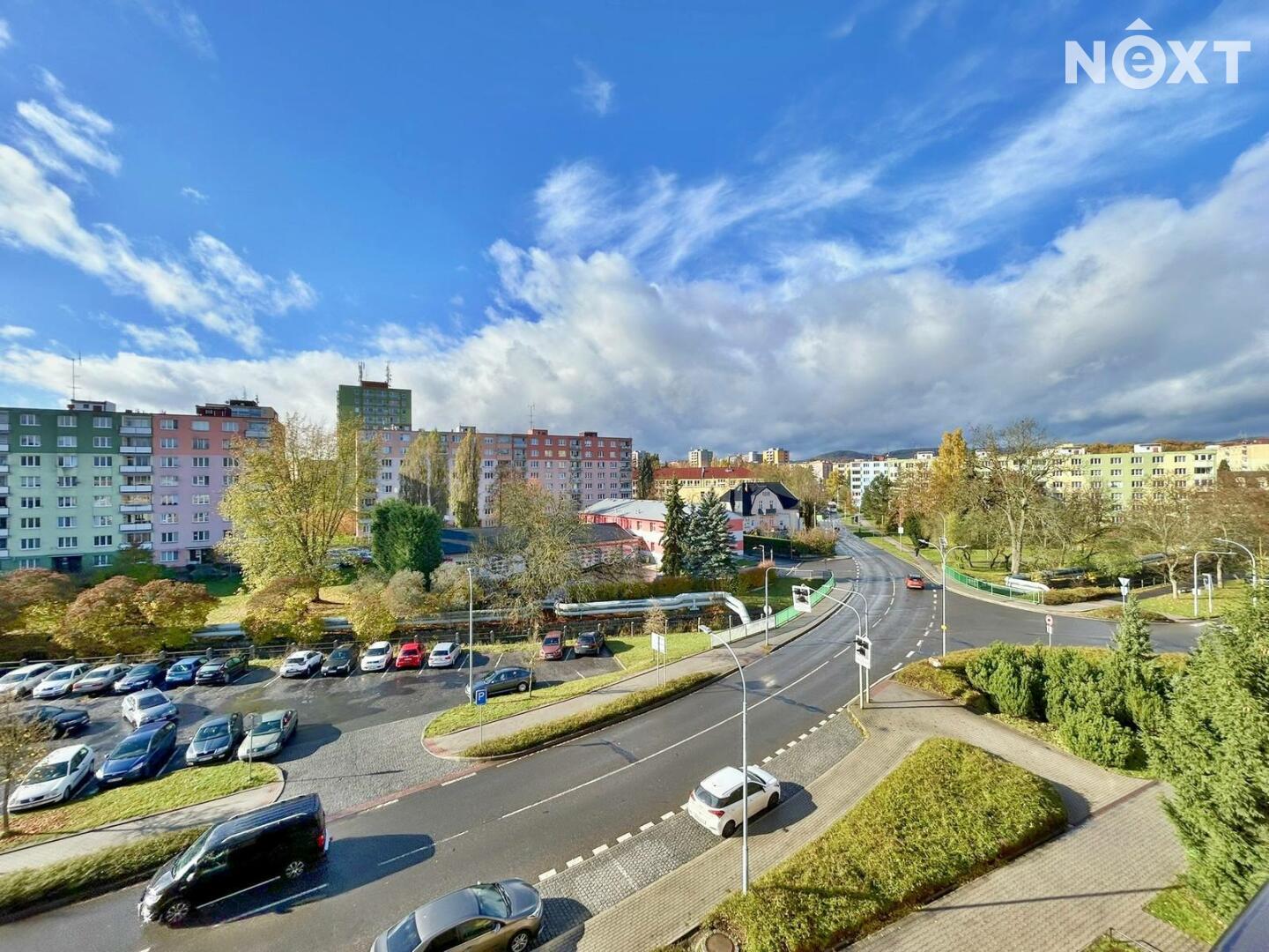 Parkování možné před domem a na blízkém parkovišti, veškerá občanská vybavenost v pěším dosahu v okolí domu. Z bytu je krásný výhled jak na východ - ke kostelu, tak na západ s výhledem na město.